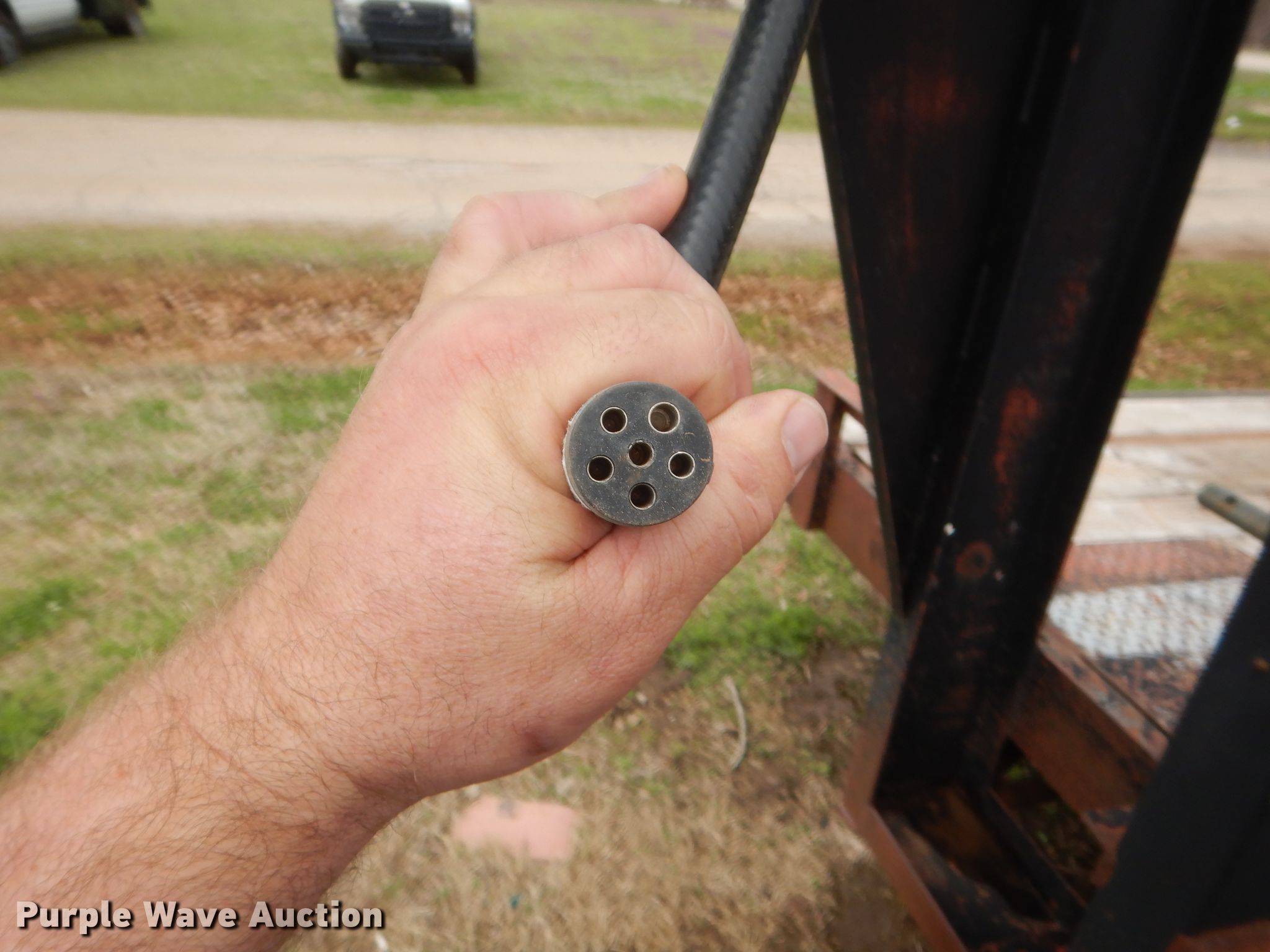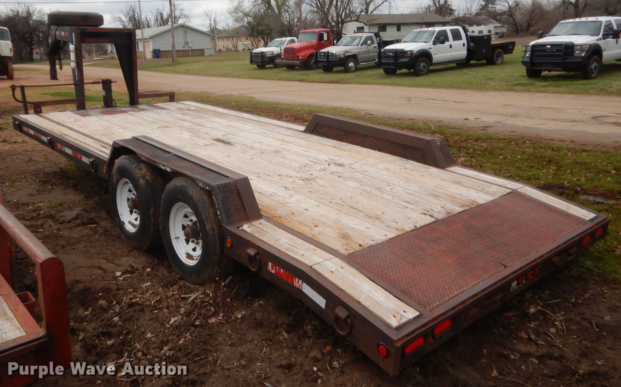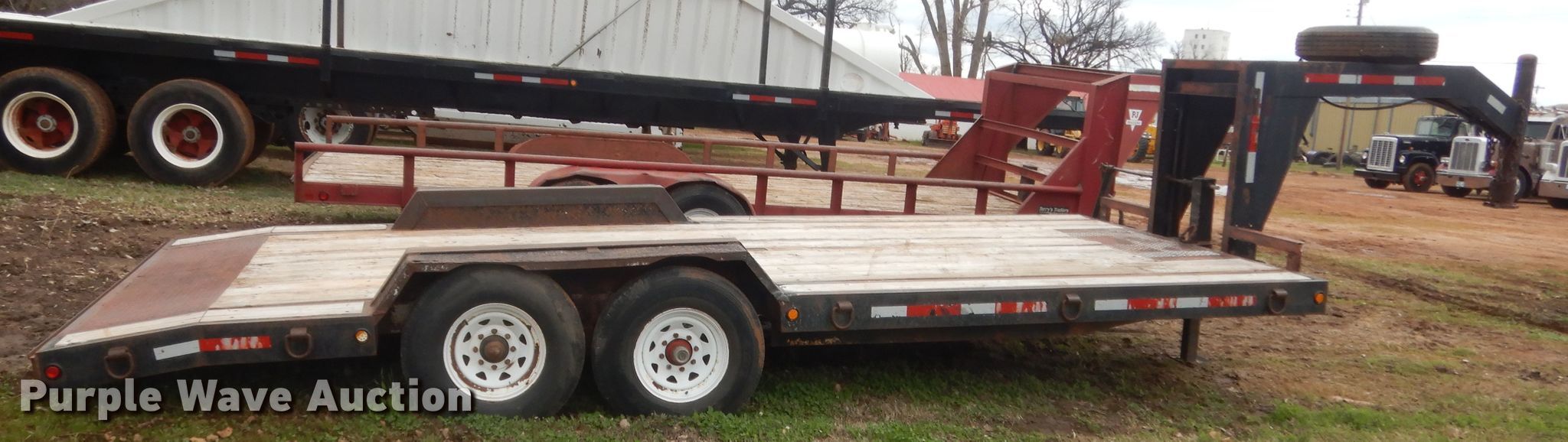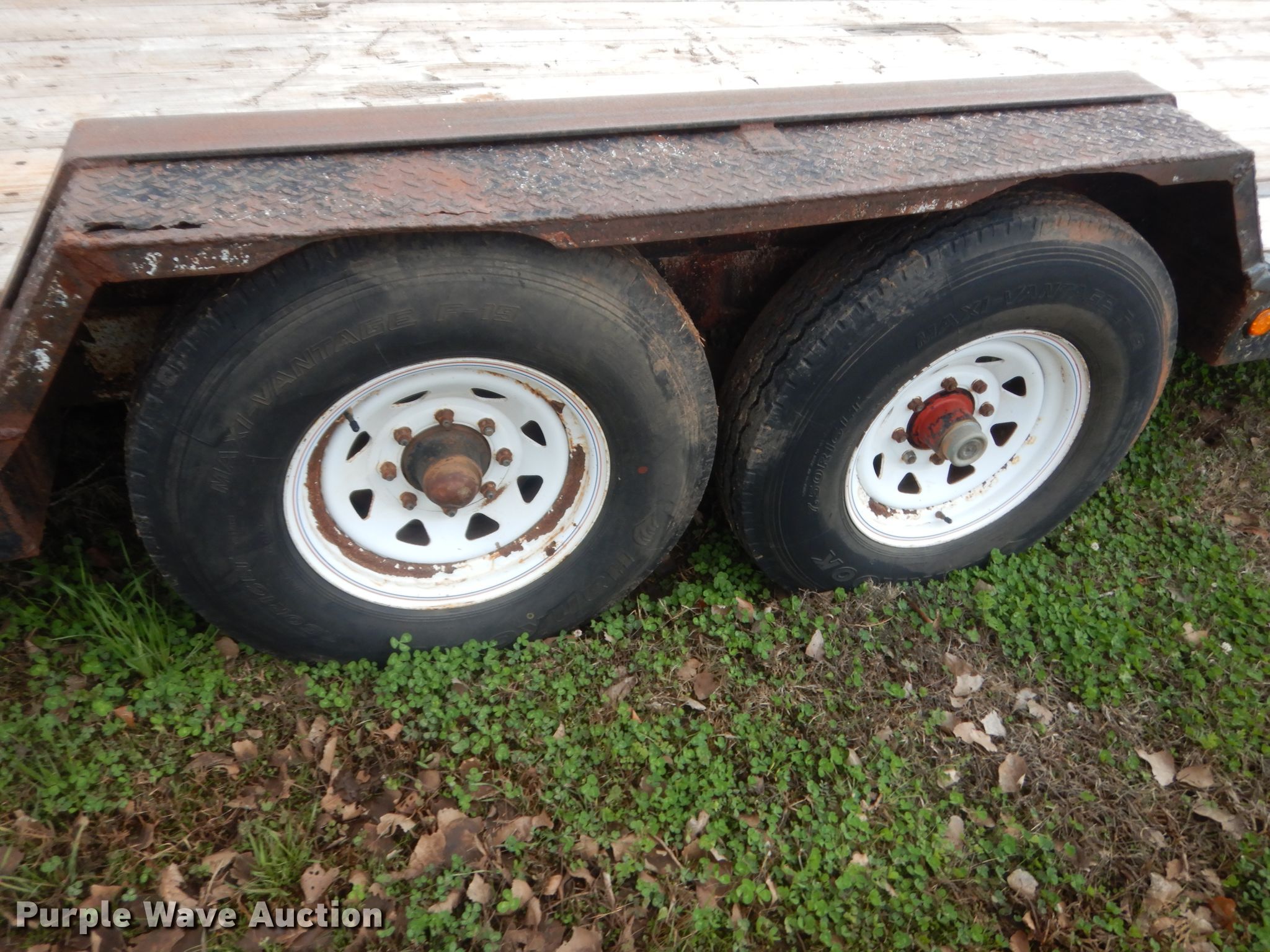 Purple Wave is selling a used Equip. Trailer in Oklahoma. This item is a Shop built equipment trailer with the following: 28'L x 102"W overall, 20'L x 80"W deck, Hitch: Gooseneck, Single leg landing gear, Spring suspension, Electric brakes, Tandem axle, 7.50R16LT tires