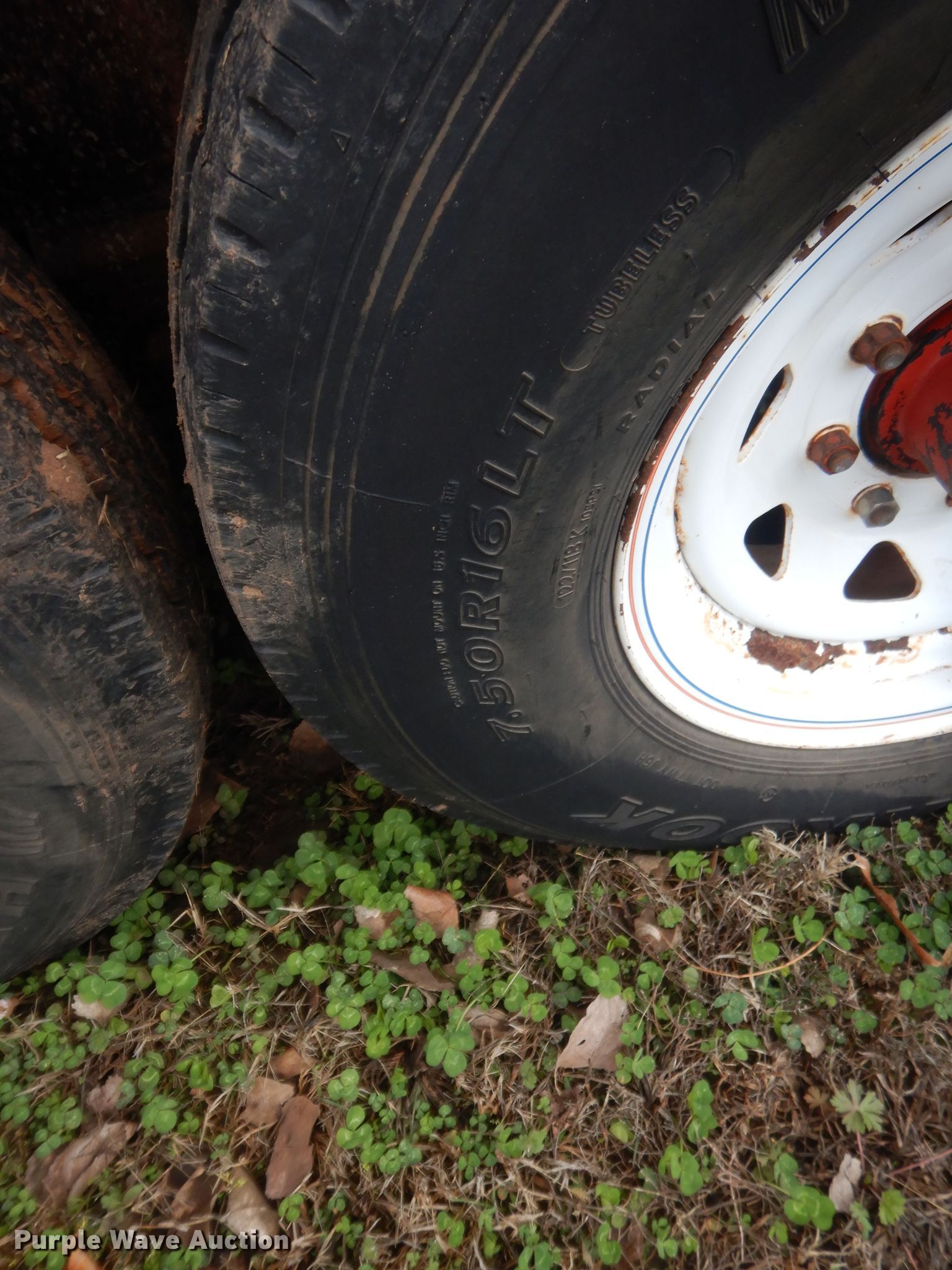 Shop built equipment trailer. 28'L x 102"W overall, 20'L x 80"W deck, Hitch: Gooseneck, Single leg landing gear, Spring suspension, Electric brakes, Tandem axle, 7.50R16LT tires. Transfer of ownership documentation will be a bill of sale. GN20LB16100. Canadian Valley Trucking Retirement Sale. Crescent, OK 73028