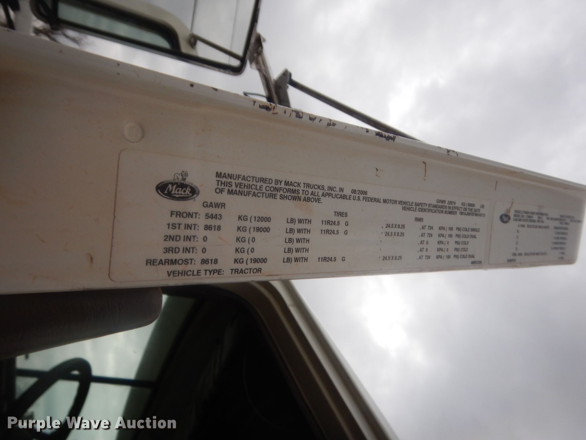 Purple Wave is selling a used Truck Tractor in Oklahoma. This item is a 2007 Mack CHN613 semi truck with the following: Unknown miles on odometer