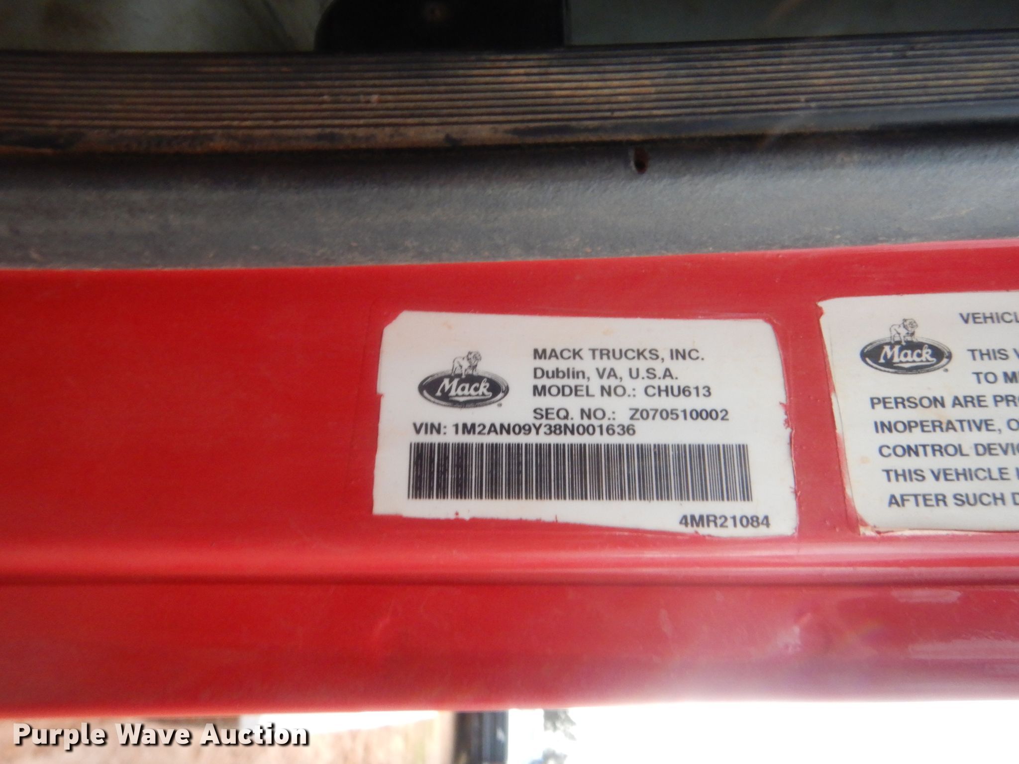 Purple Wave is selling a used Truck Tractor in Oklahoma. This item is a 2008 Mack CHU613 semi truck with the following: 188,459 miles on odometer