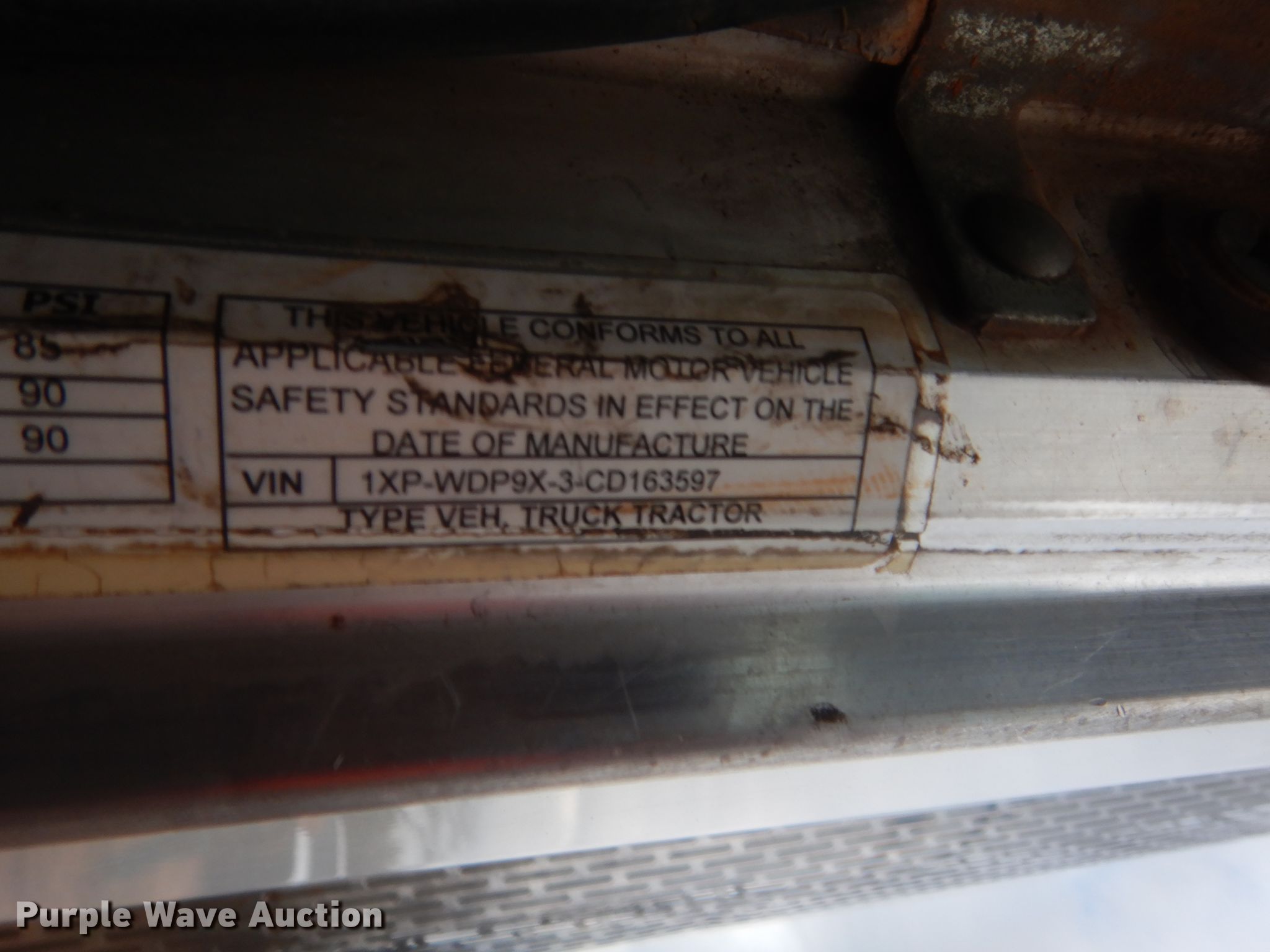 2012 Peterbilt 388 semi truck. 476,010 miles on odometer, Engine hours: 17,998. Engine Displacement: 12.9L, Cylinders: 6, Fuel type: Diesel. Transmission Eaton Fuller, Manual, Speed: 10. Chassis Axles: Tandem, Differential lock: Inter-axle, Suspension: Air Dump valves, Brakes: Air, GVWR: 53,200 lbs. Interior AC, Heat, Power windows, Power locks, Cruise control. Operational Fifth wheel type: Fixed, Fuel tank: Dual. Tires Size: 11R24.5. Notes Dash warning indicator: Check engine. Oklahoma title. Title distribution may be delayed up to 30 days from verification of funds. 1XPWDP9X3CD163597. Canadian Valley Trucking Retirement Sale. Crescent, OK 73028
