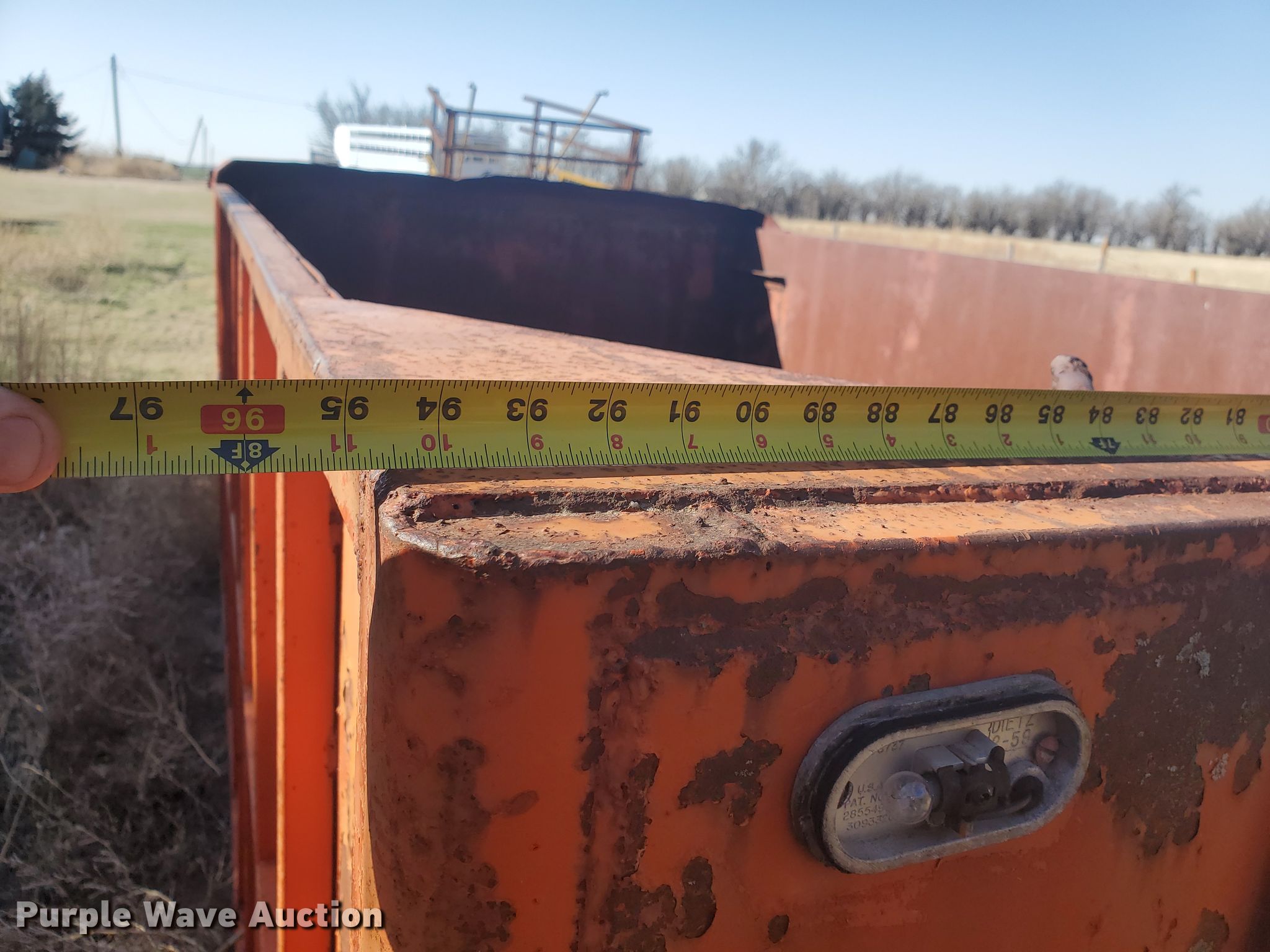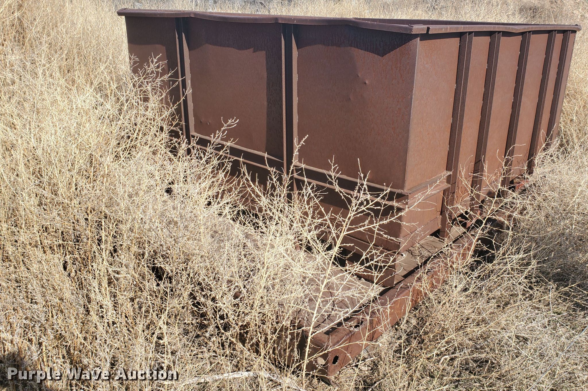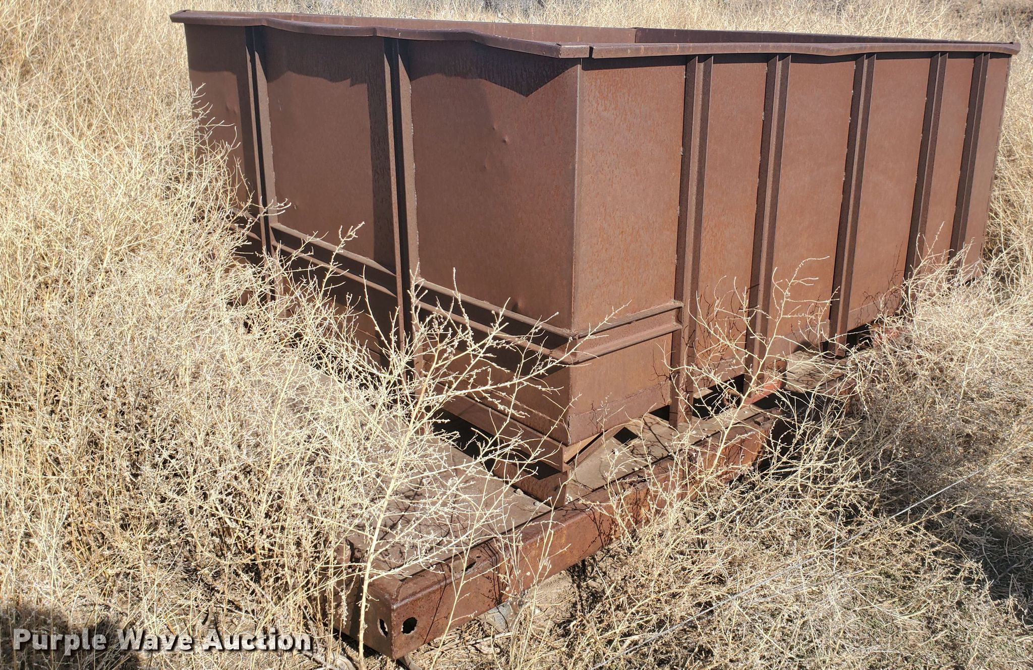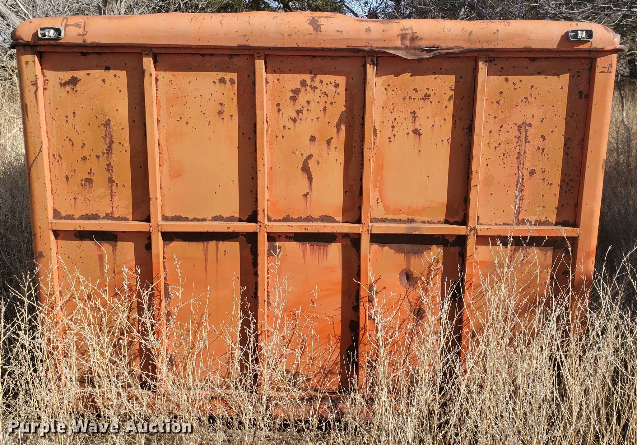 (3) truck beds. Wichita Body steel bed 14'L x 8'W, 65" side height, Manual end gate, 15.5'L x 8'W roll-off bed, 14'L x 8'W roll-off bed, 9' x 8' steel hopper. 10666 Ave A. Dodge City, KS 67801