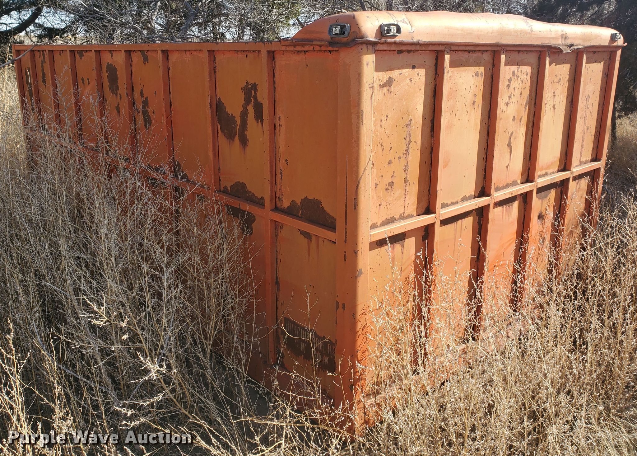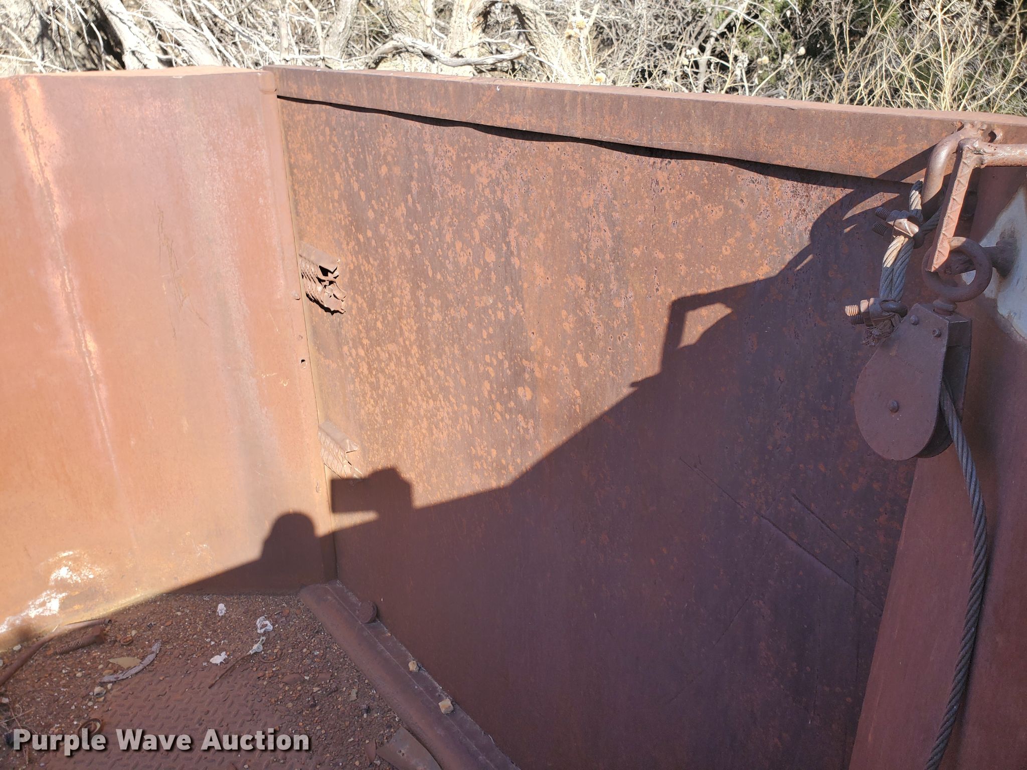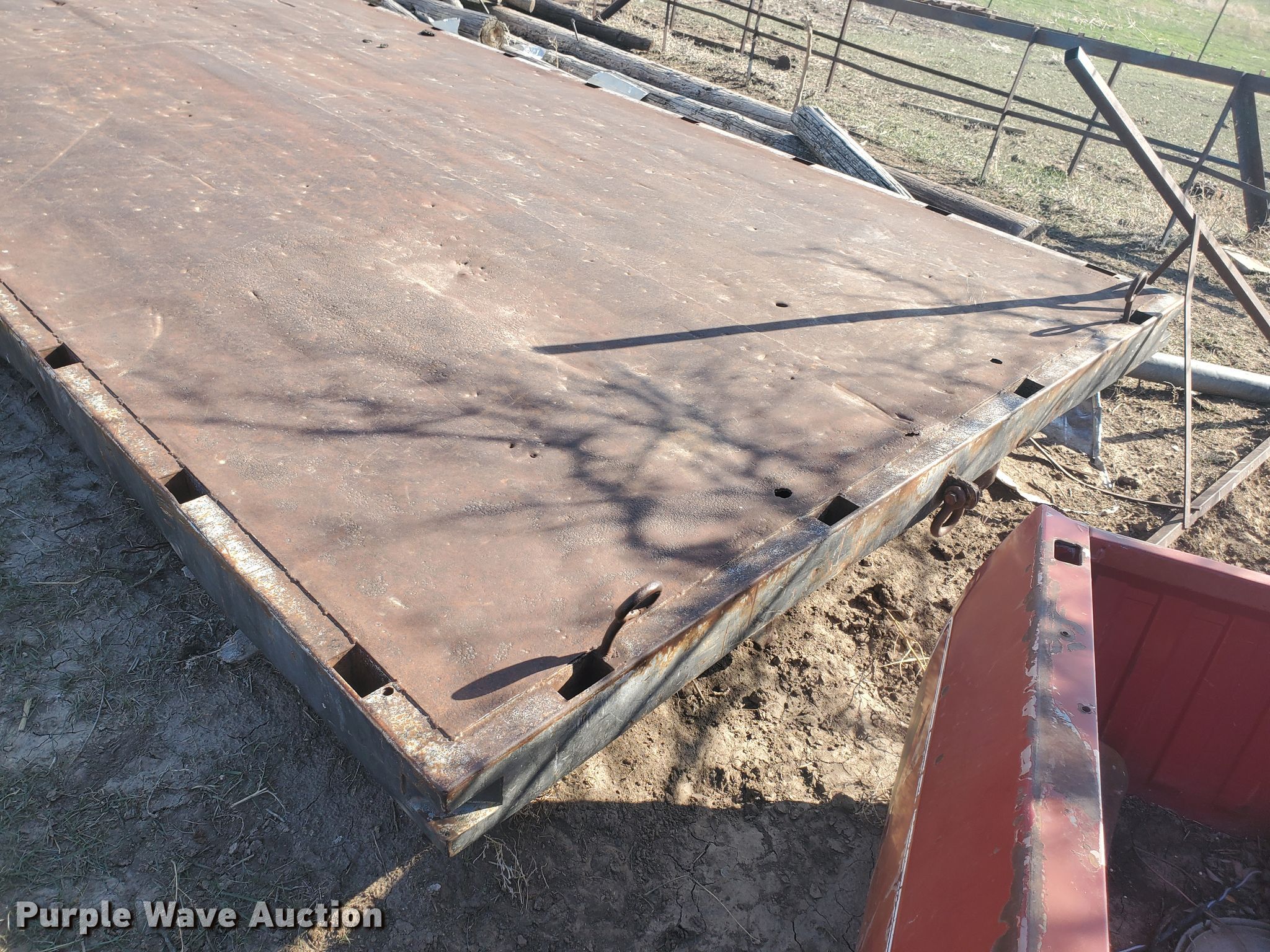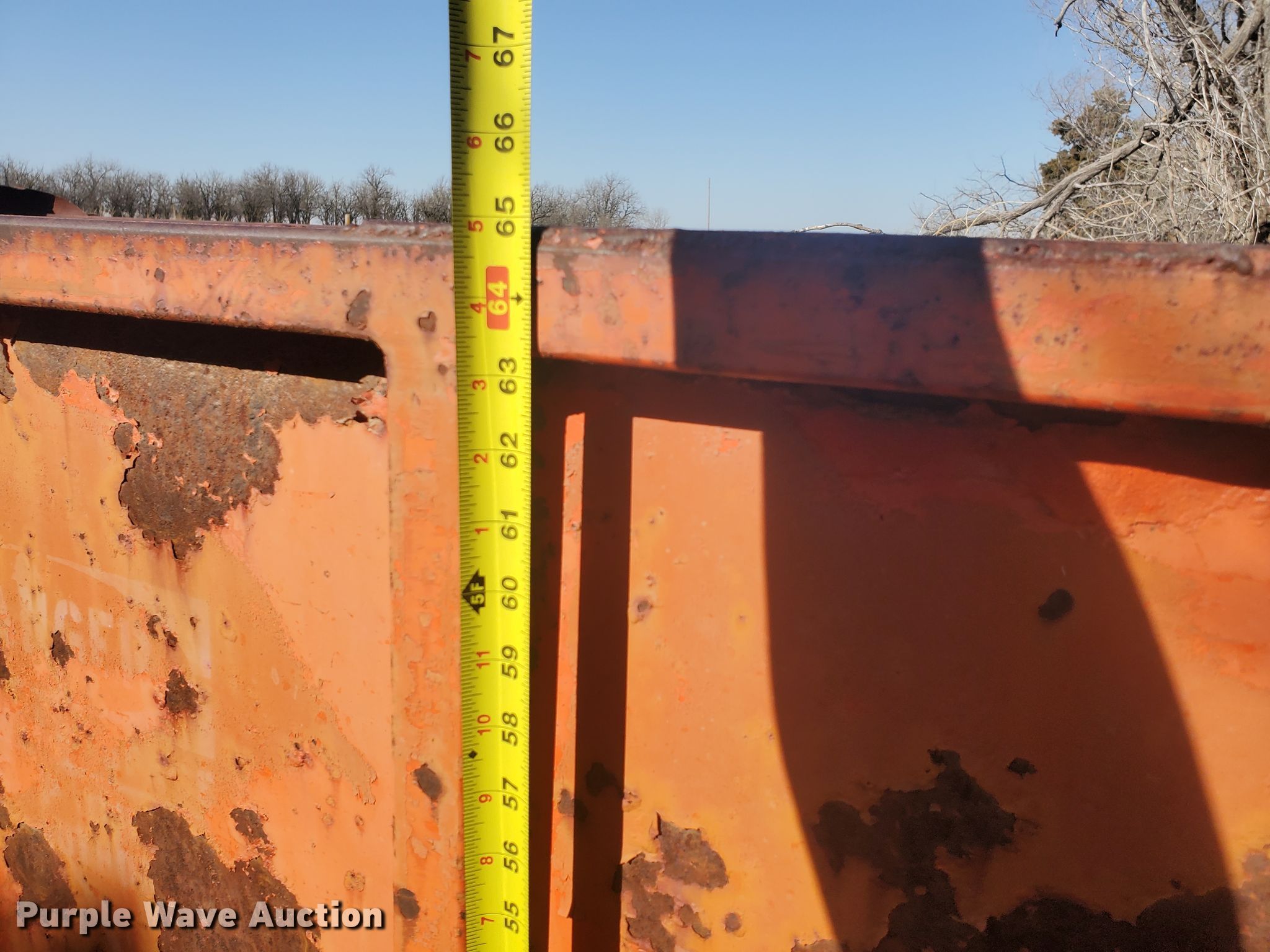 (3) truck beds. Wichita Body steel bed 14'L x 8'W, 65" side height, Manual end gate, 15.5'L x 8'W roll-off bed, 14'L x 8'W roll-off bed, 9' x 8' steel hopper. 10666 Ave A. Dodge City, KS 67801