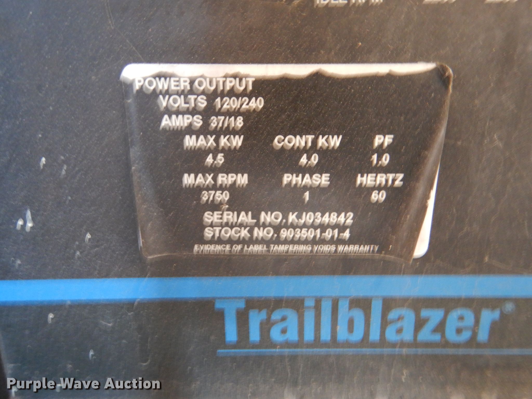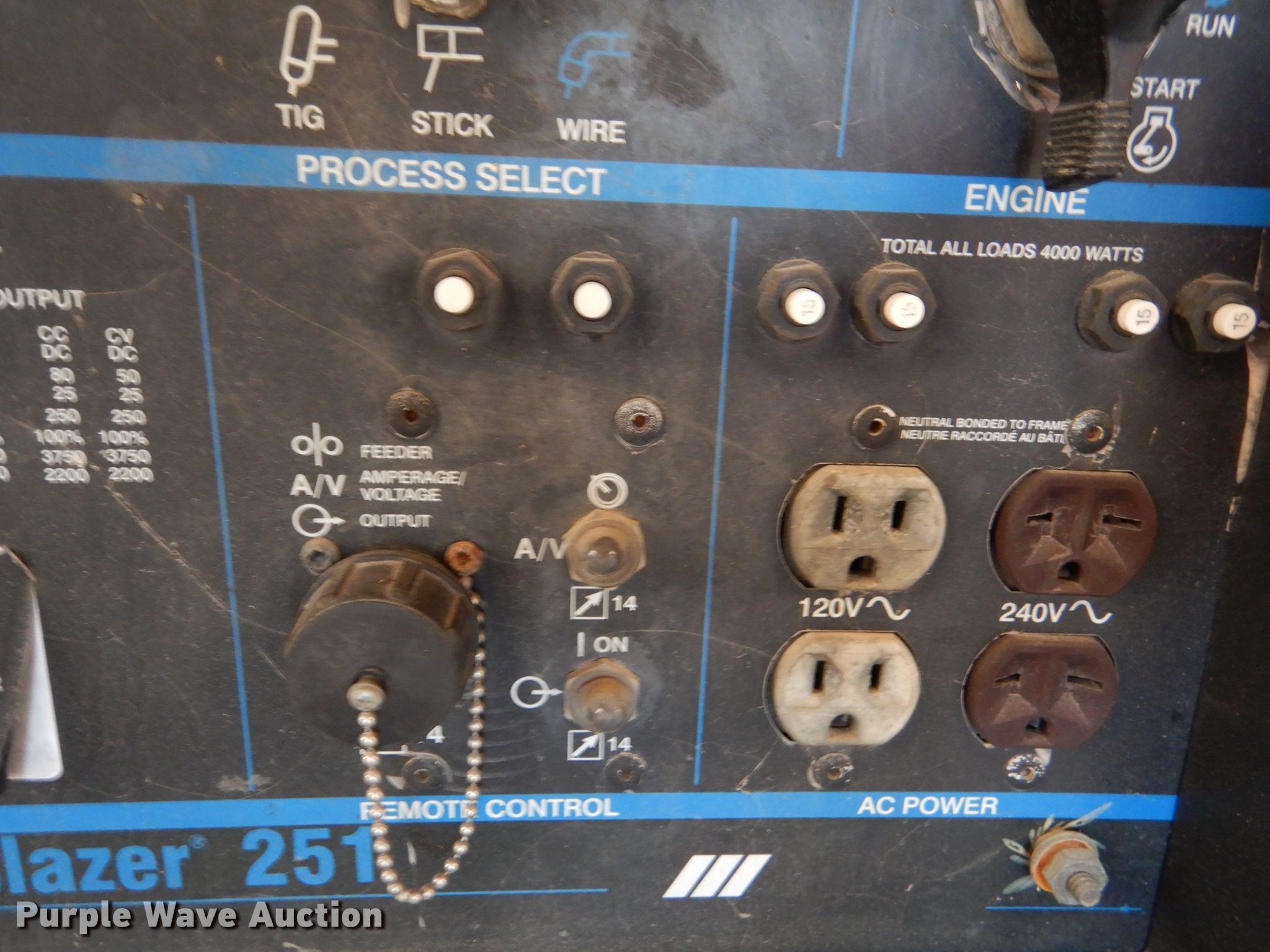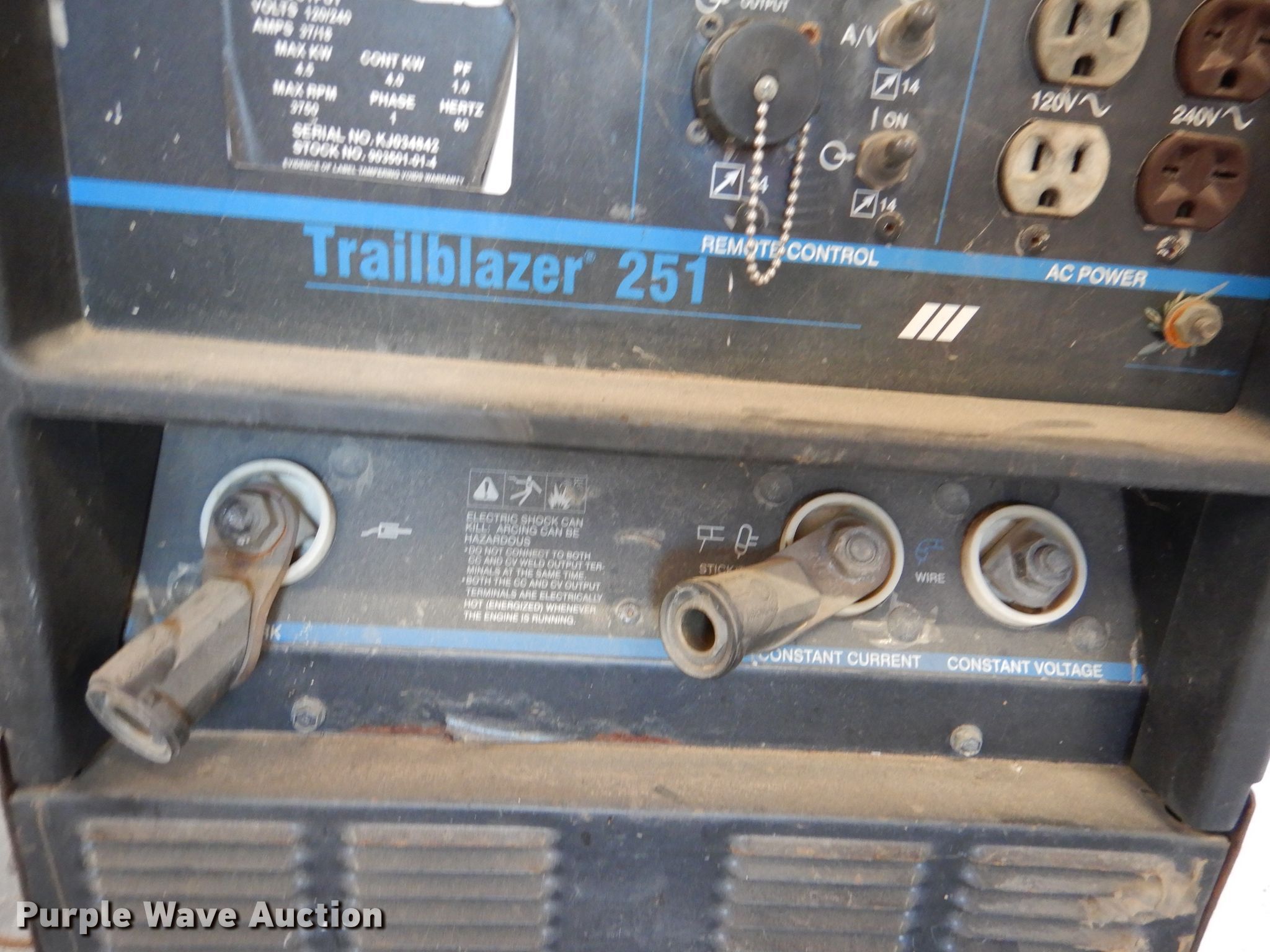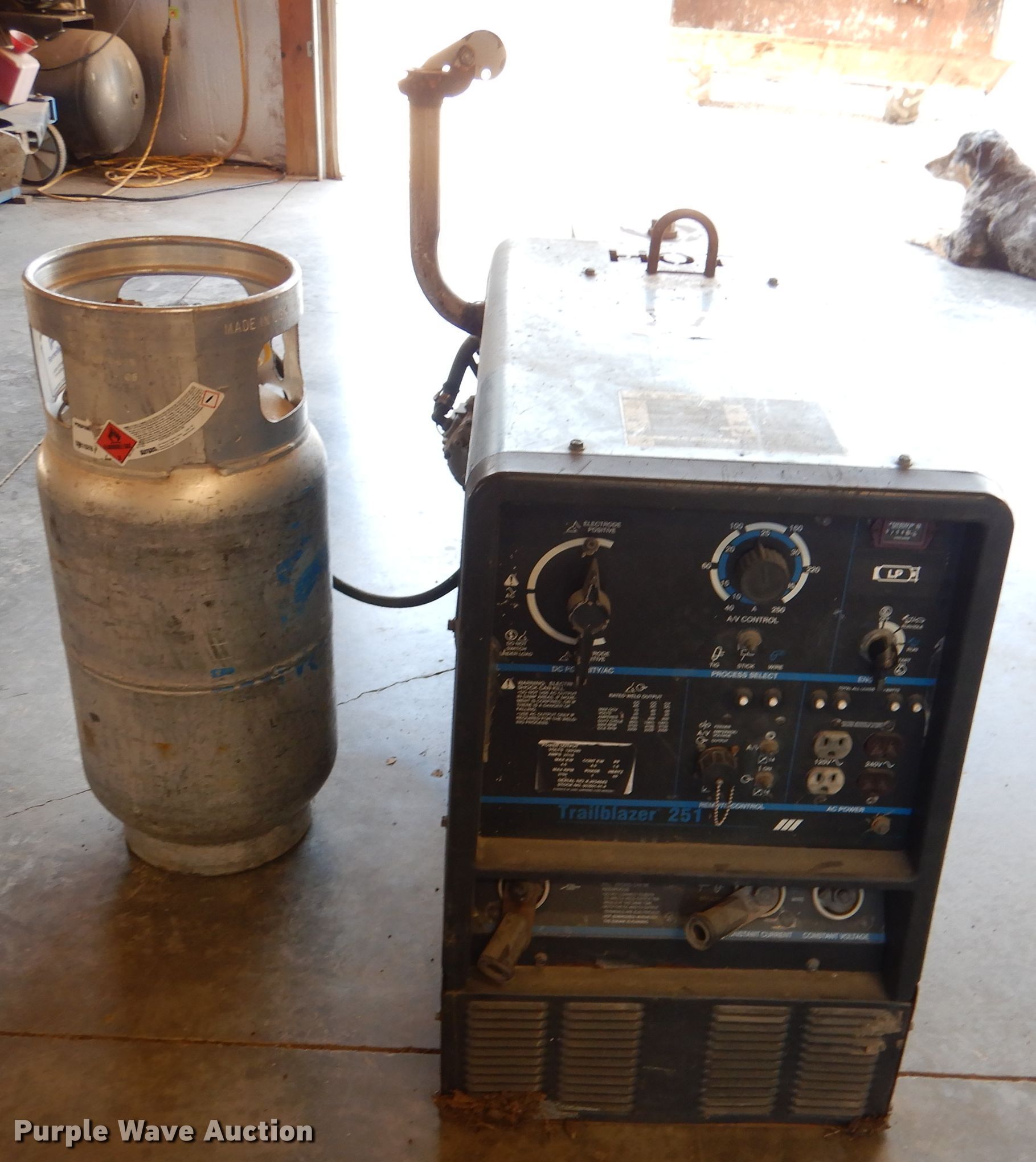 Purple Wave is selling a used Welder (Manual) in Kansas. This item is a Miller Trailblazer 251 welder with the following: 756 hours on meter, Onan Performer 20 782cc LPG engine, Model P220G-L/11552H, Serial G973711031, Weak battery, Serial 903501-01-4