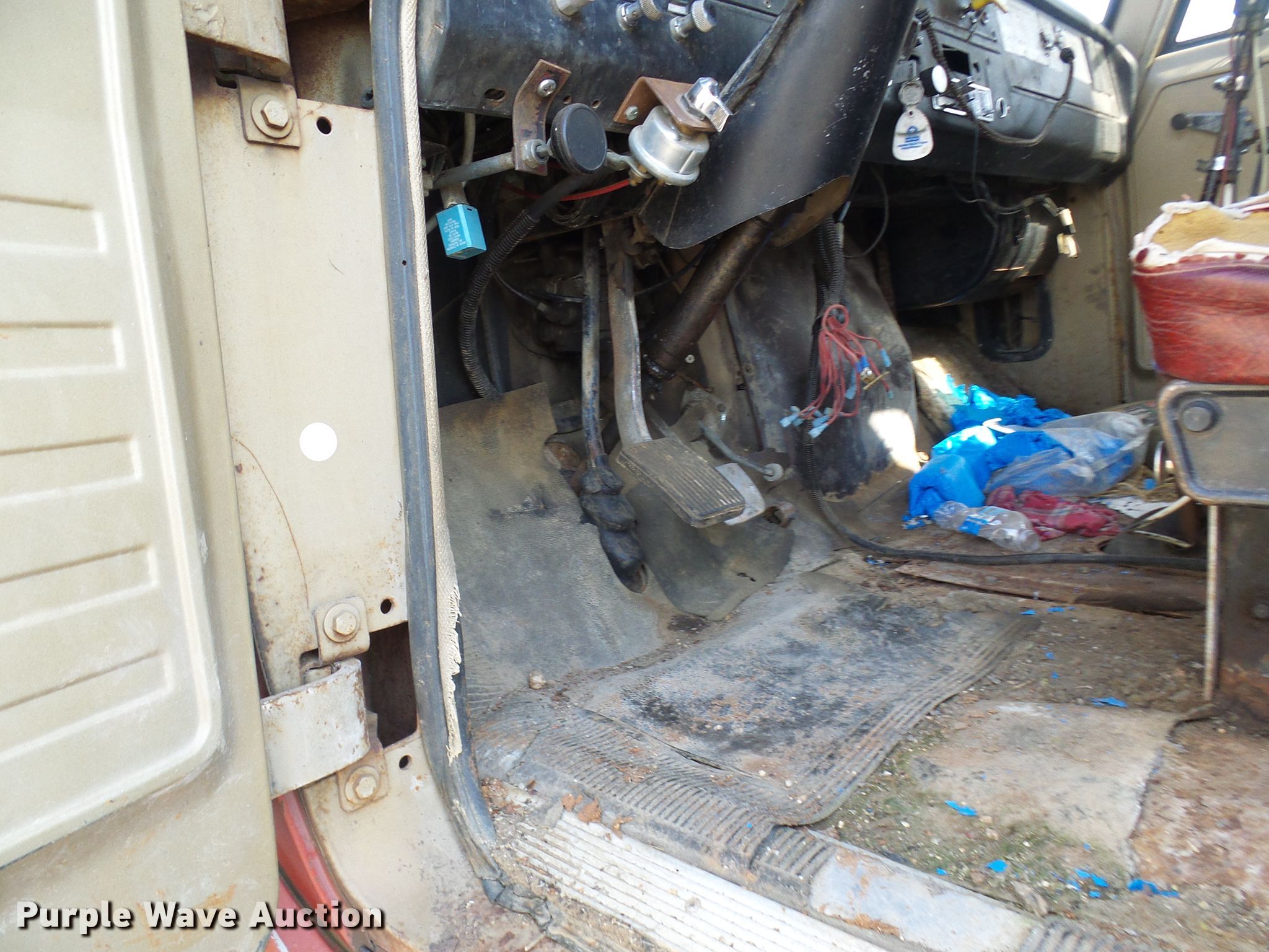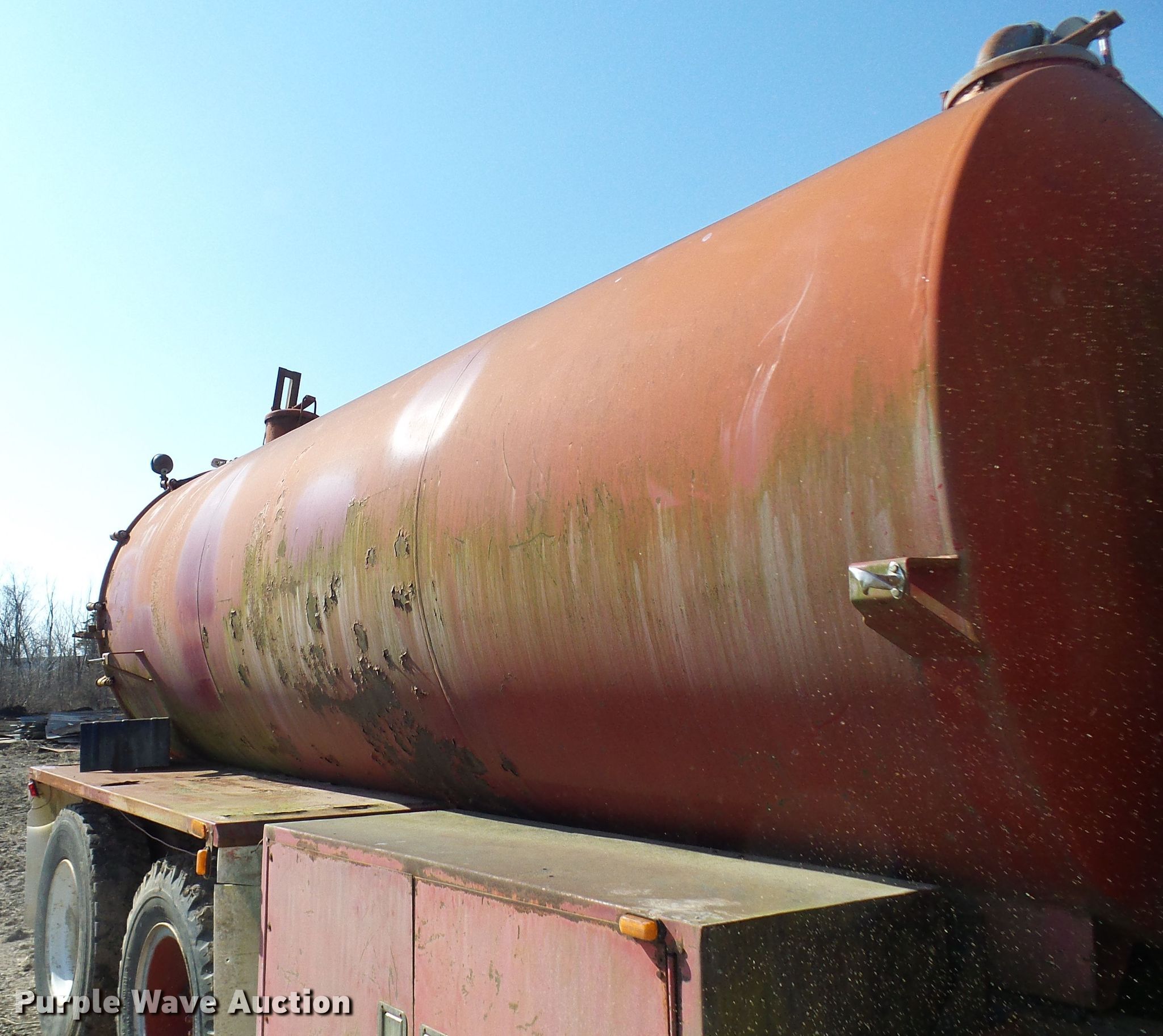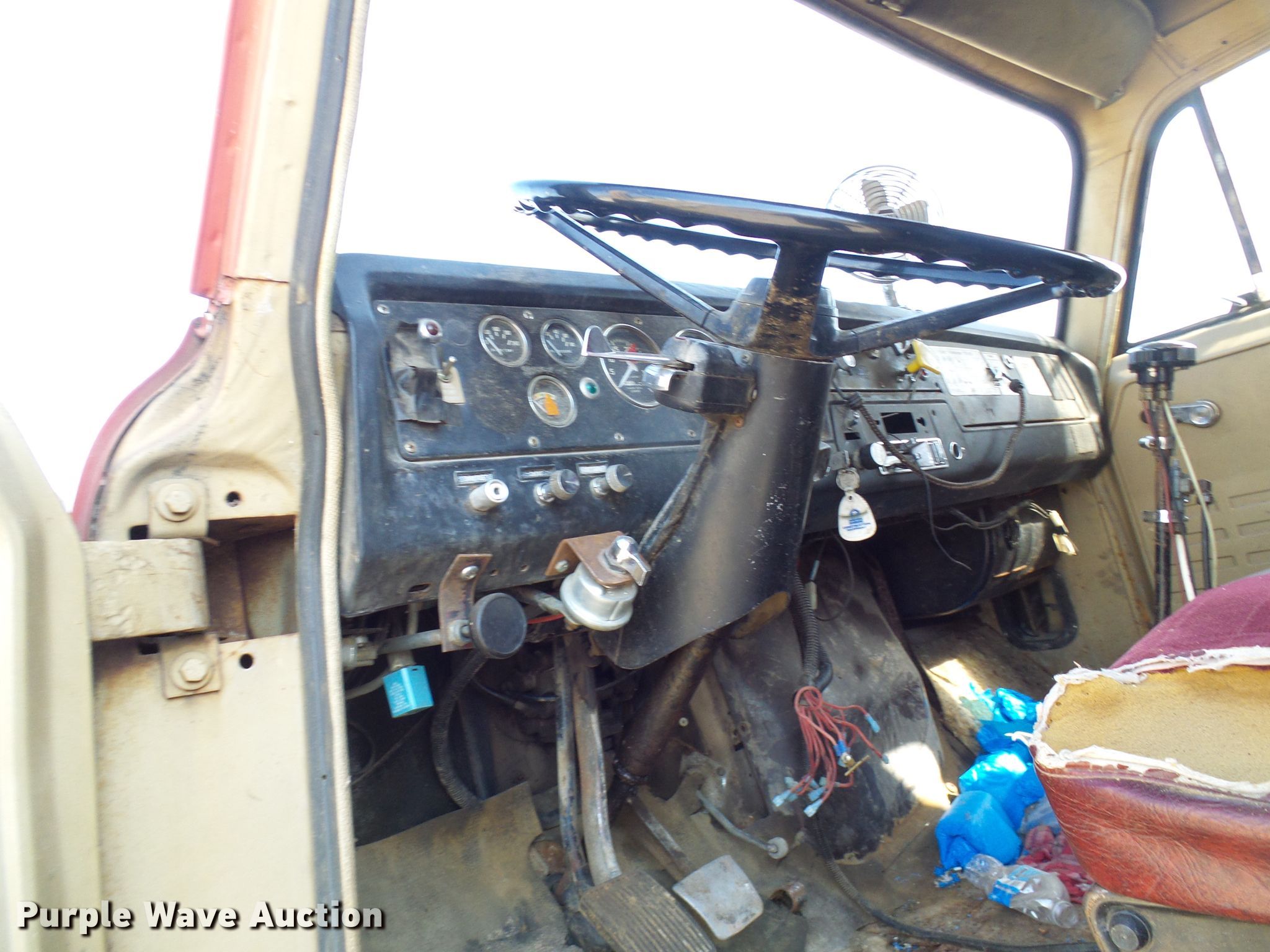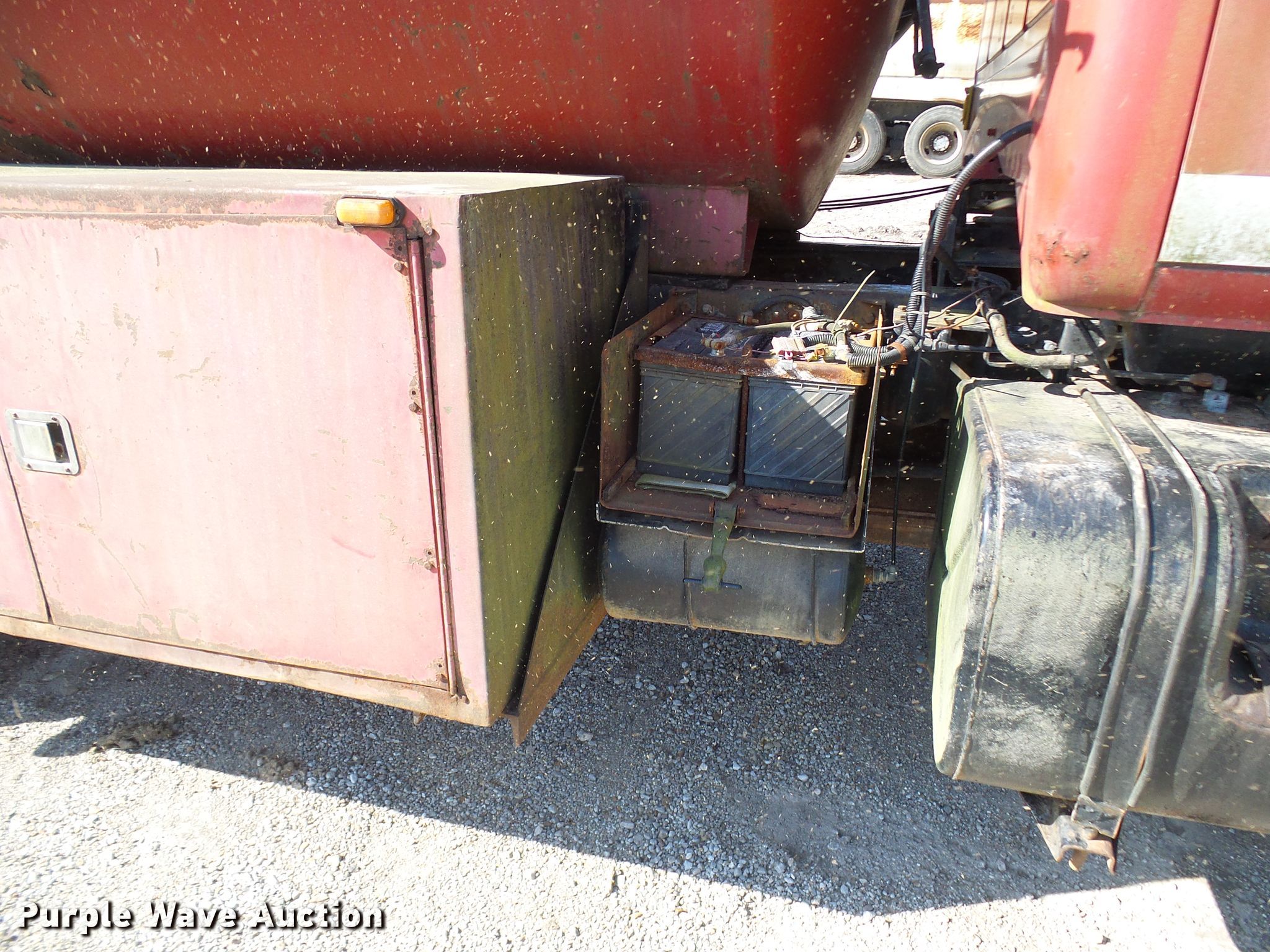 1975 International Fleetstar 2010 tank truck. 94,038 miles on odometer, Engine hours: 6,216. Engine Cylinders: 8, Fuel type: Gas. Transmission Eaton Fuller RT613, Manual, Speed: 13. Chassis Axles: Tandem, Suspension: Spring, Brakes: Air, PTO. Interior Heat. Operational Bed / tank Length: 16'. Tires Front: 315/80R22.5 , Rear: 10x20. Wisconsin title. D1322EGB18882. Lake Area Concrete Construction, LLC. 631 E 5th St. Eldon, MO 65026