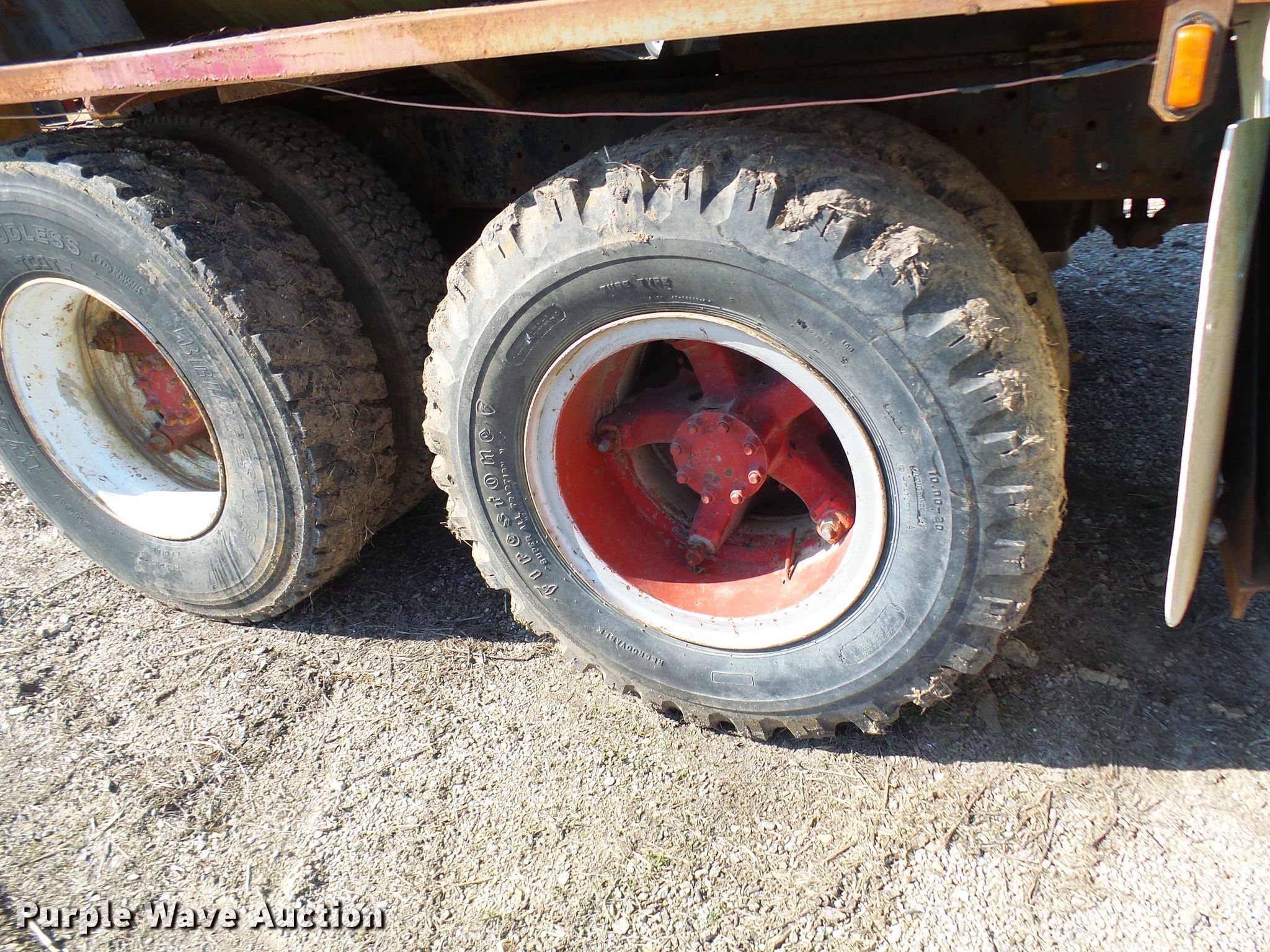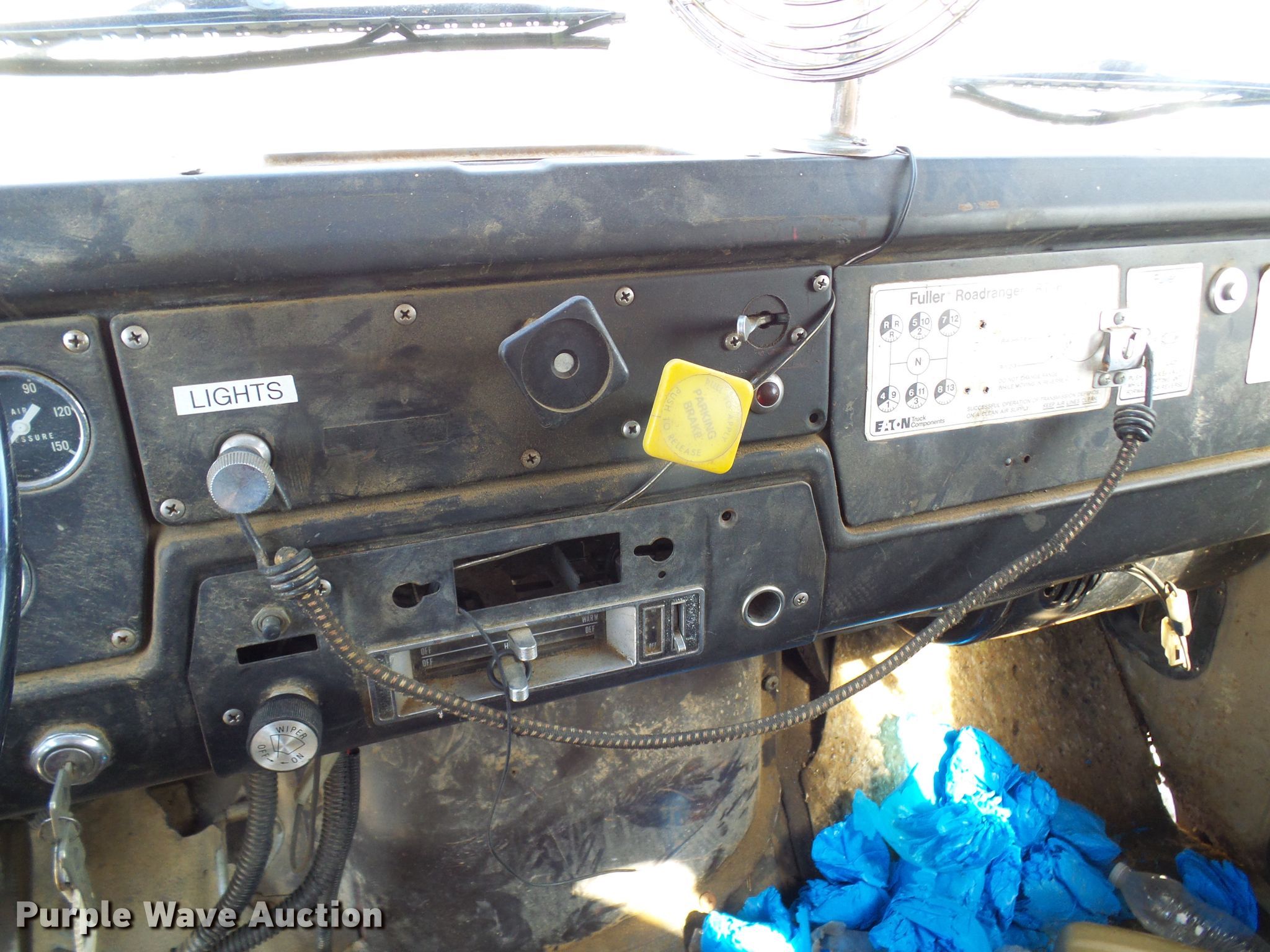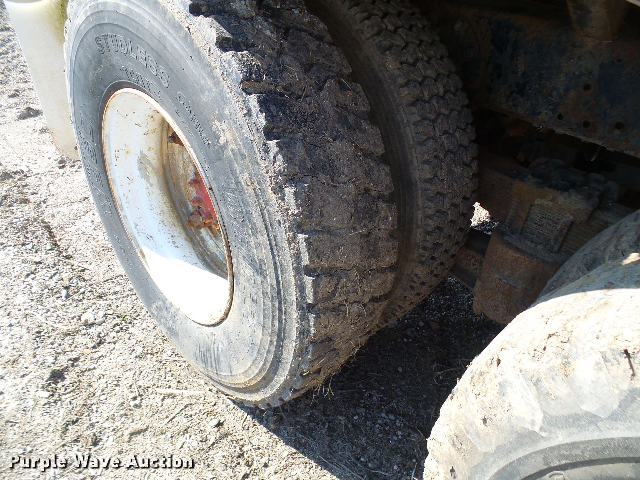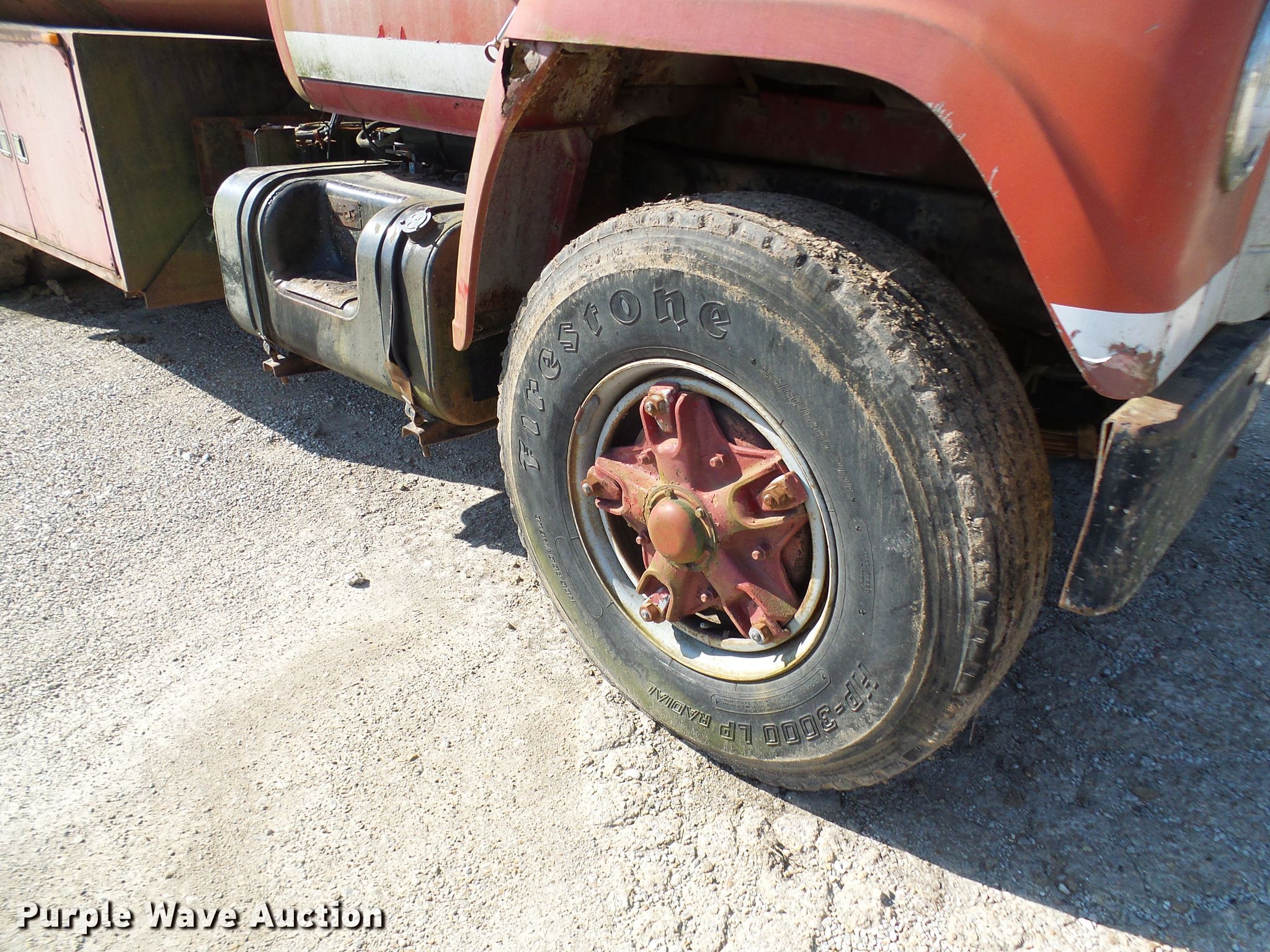1975 International Fleetstar 2010 tank truck. 94,038 miles on odometer, Engine hours: 6,216. Engine Cylinders: 8, Fuel type: Gas. Transmission Eaton Fuller RT613, Manual, Speed: 13. Chassis Axles: Tandem, Suspension: Spring, Brakes: Air, PTO. Interior Heat. Operational Bed / tank Length: 16'. Tires Front: 315/80R22.5 , Rear: 10x20. Wisconsin title. D1322EGB18882. Lake Area Concrete Construction, LLC. 631 E 5th St. Eldon, MO 65026