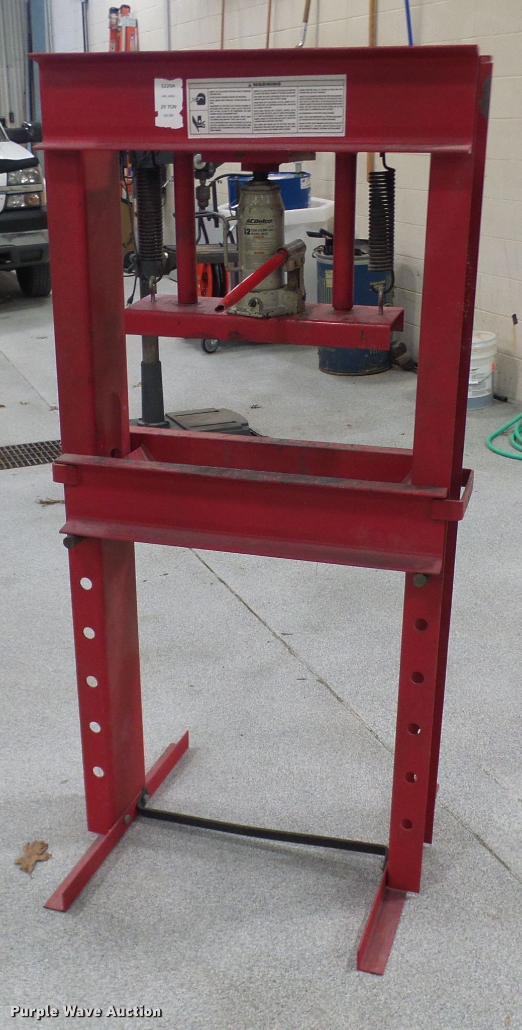 Purple Wave is selling a used Machine Shop Tools and Equip. in Missouri. This item is a 20 ton press with the following: AC Delco bottle jack, 12 ton capacity