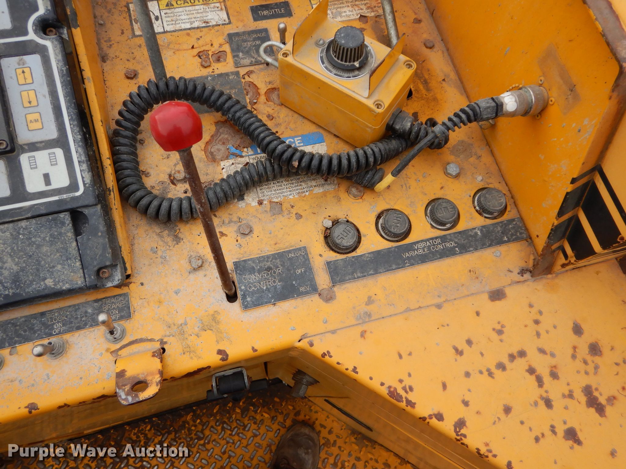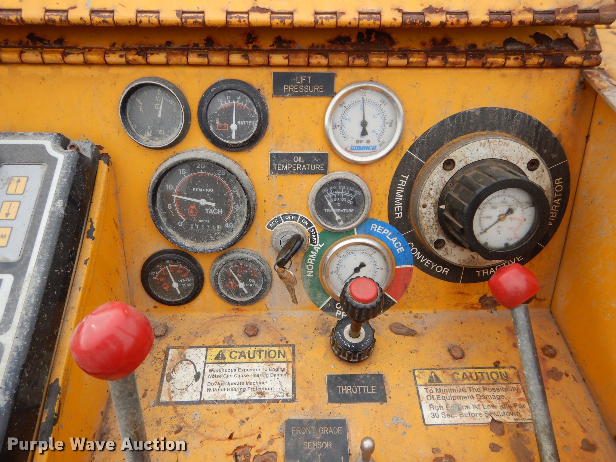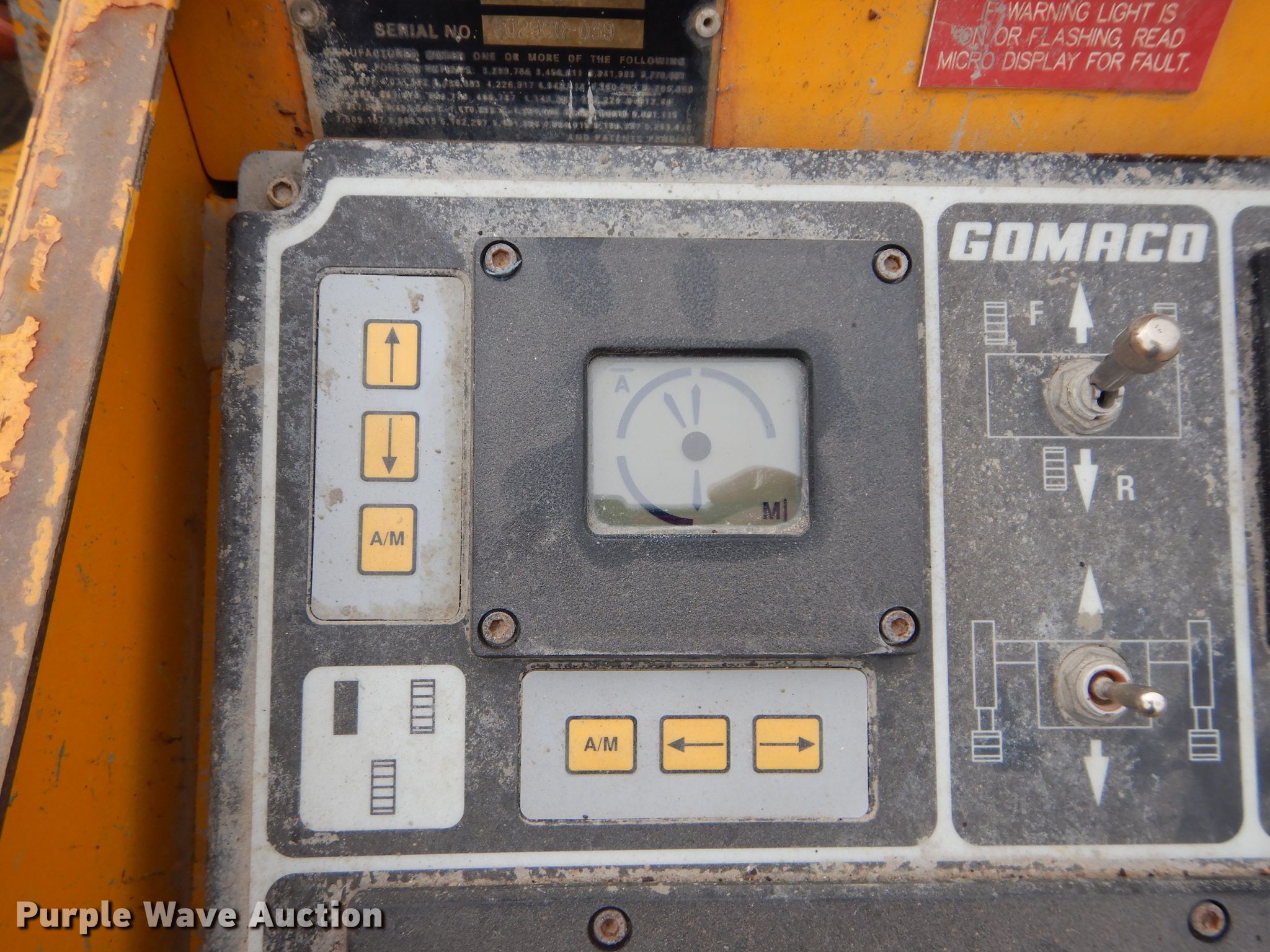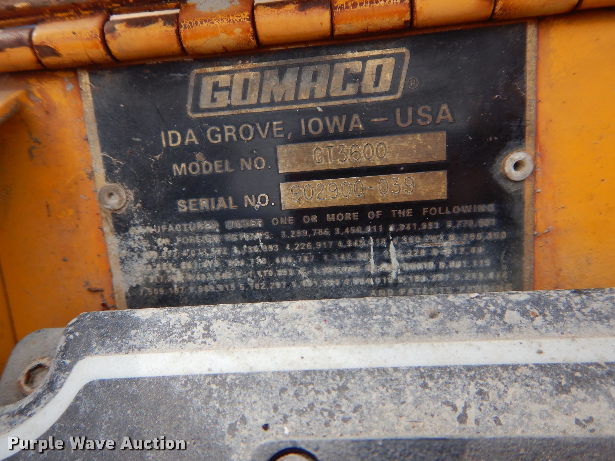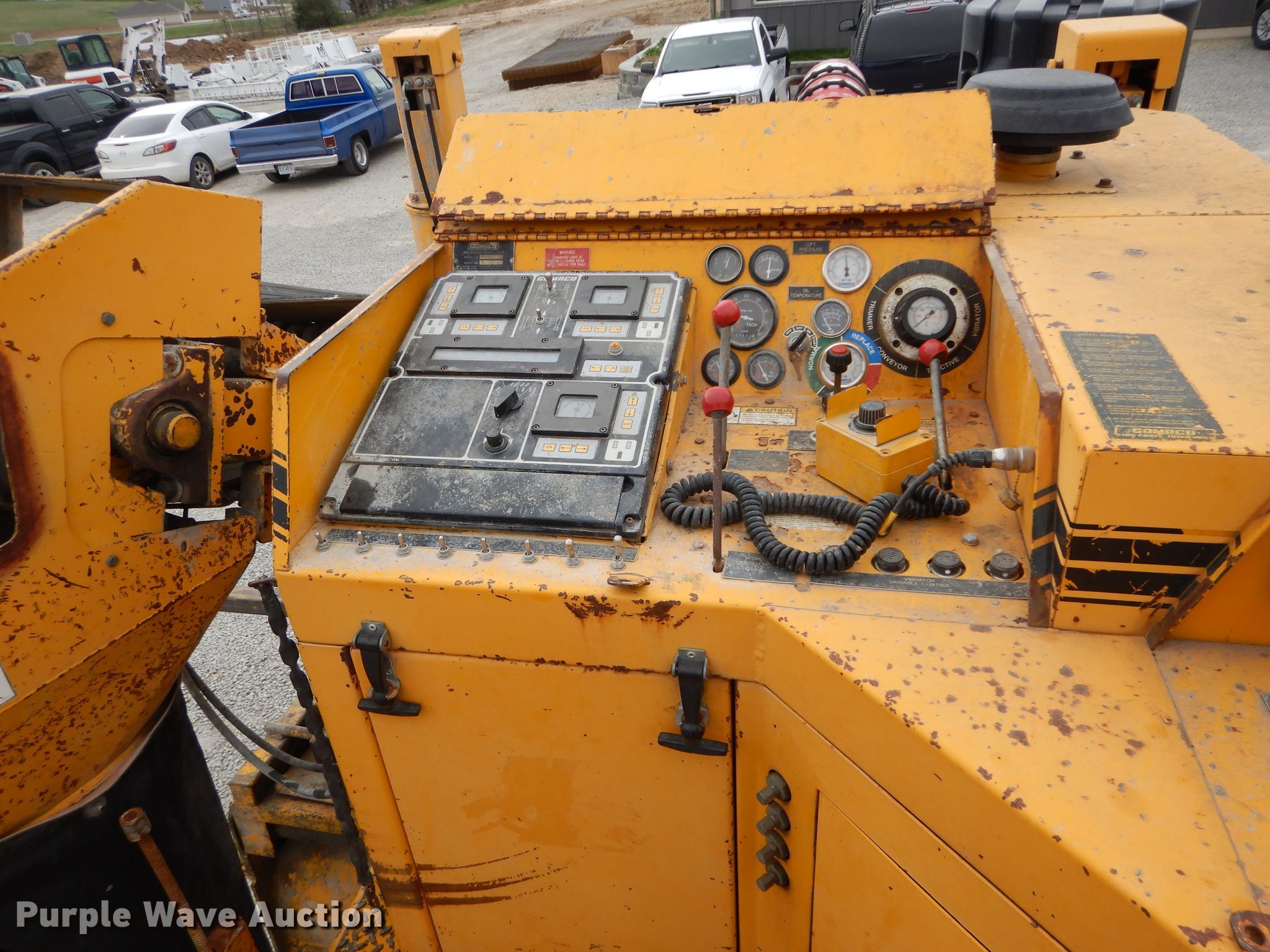 Purple Wave is selling a used Concrete Paver or Curb Machine in Missouri. This item is a 1996 Gomaco GT3600 curb machine with the following: 7,374 hours on meter, 42" trimmer, Cummins four cylinder diesel engine, Hydrostatic transmission, 15' x 20" conveyor, CTCP 12570 curb mold, Pressure washer, 12" tracks, Rubber, Serial 902900-039