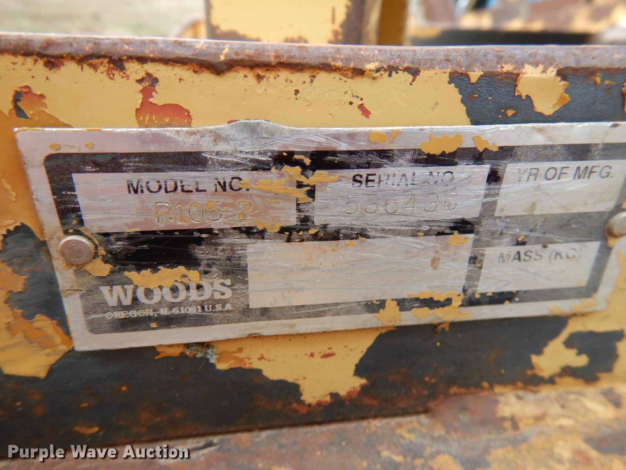 Purple Wave is selling a used Skid Steer Attach. in Wisconsin. This item is a Woods R105-2 62"W skid steer rotary mower with the following: Unknown operating condition, Serial 536436
