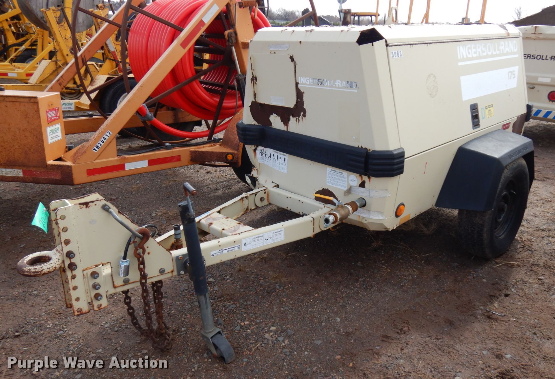 Purple Wave is selling a used Air Compressor in Wisconsin. This item is a 1999 Ingersoll Rand P175 air compressor with the following: 158 hours on meter, Serial: 296272ULI218, Unit #: 5063