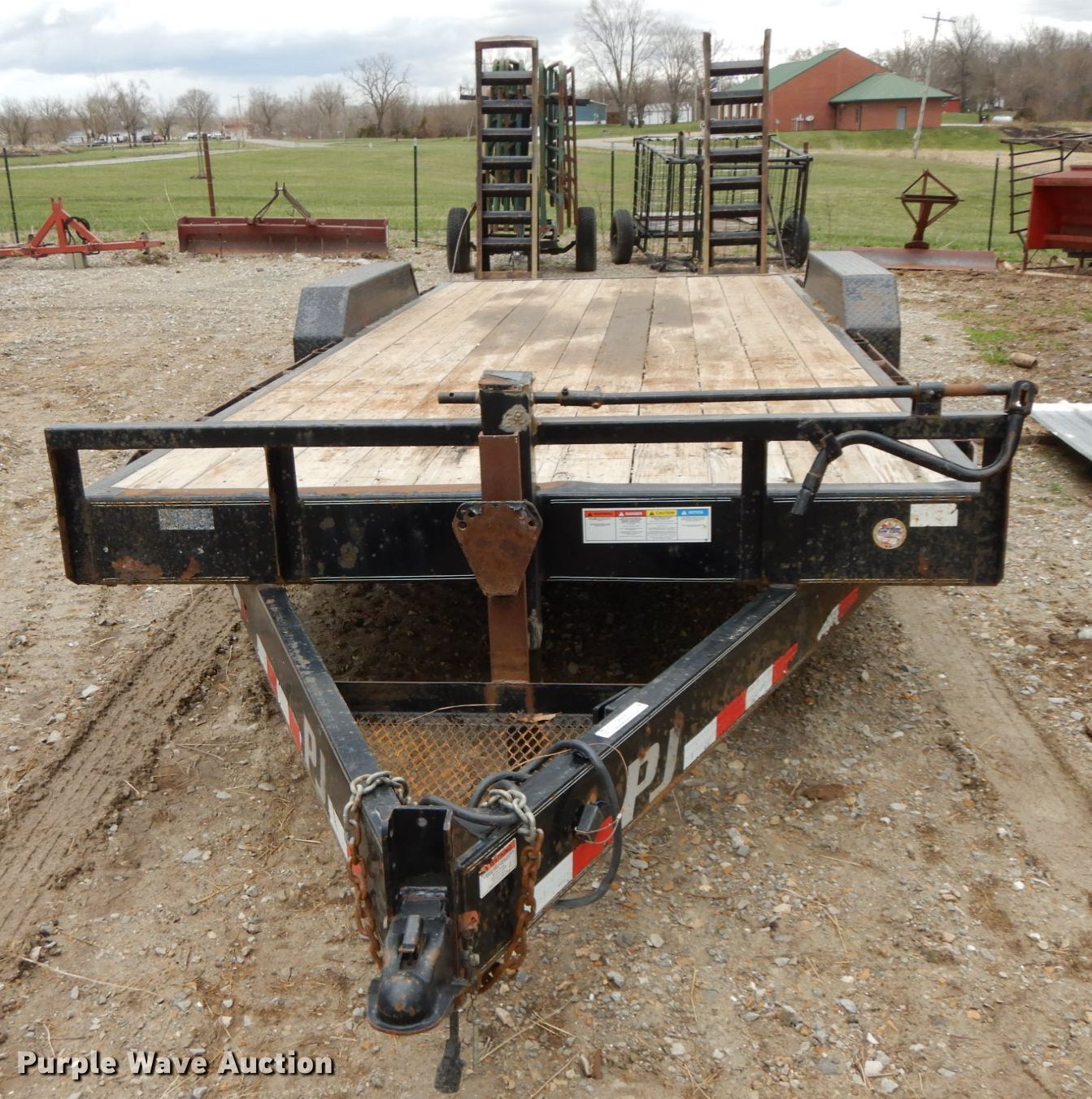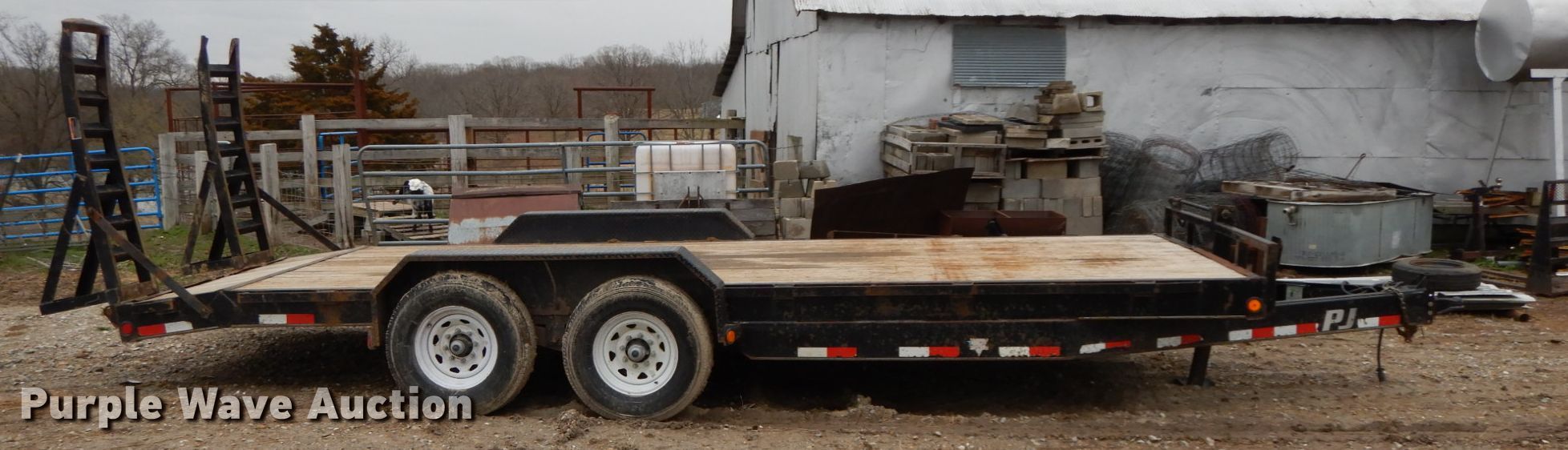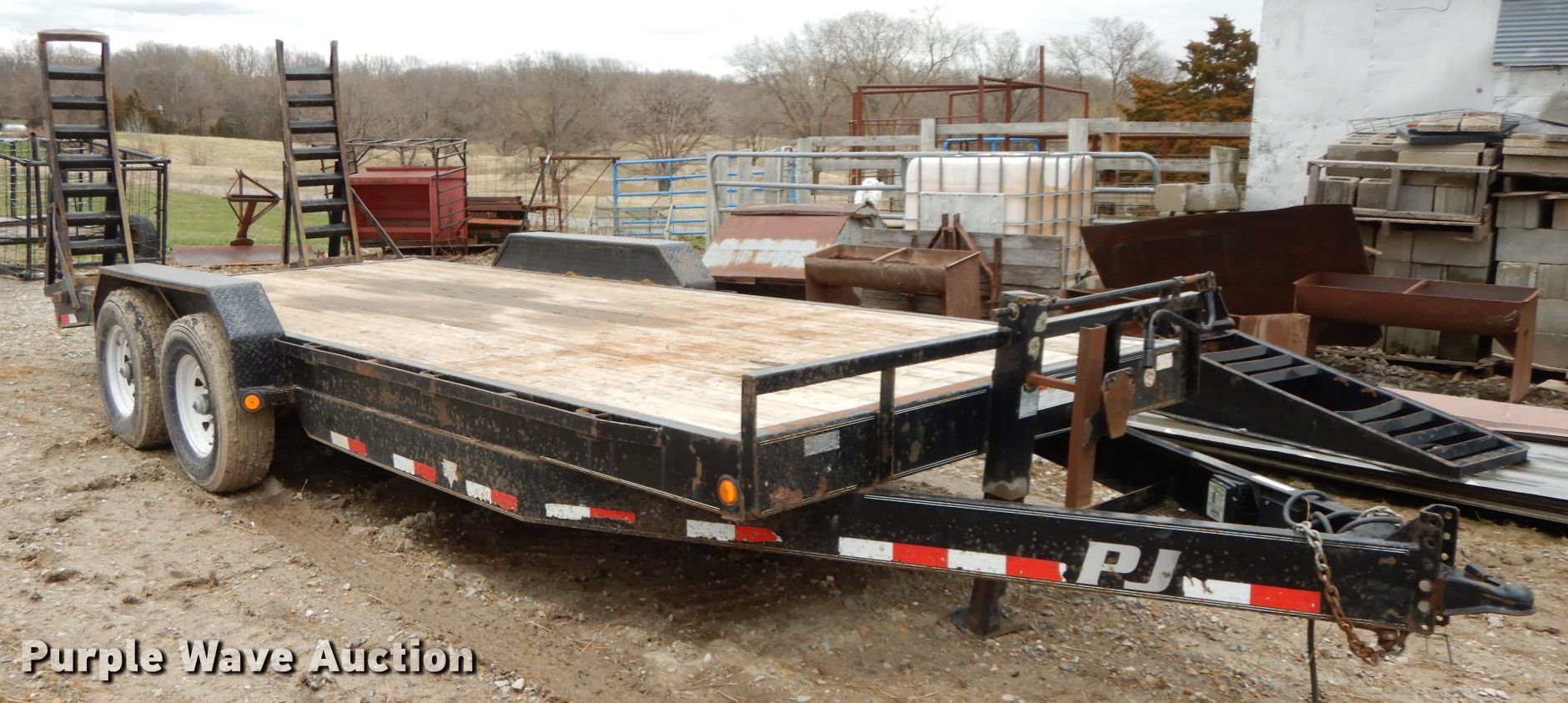 Purple Wave is selling a used Equip. Trailer in Missouri. This item is a 2014 PJ Trailer equipment trailer with the following: 24'8"L overall, 18'L x 86"W deck, 2' tail length, 5'L ramps, Wood deck, Ball hitch: 2 5/16", Single leg landing gear, Spring suspension, Electric brakes, Tandem axle, Steel wheels, ST235/85R16 tires, GVWR 14,000 lbs, GAWR 7,000 lbs