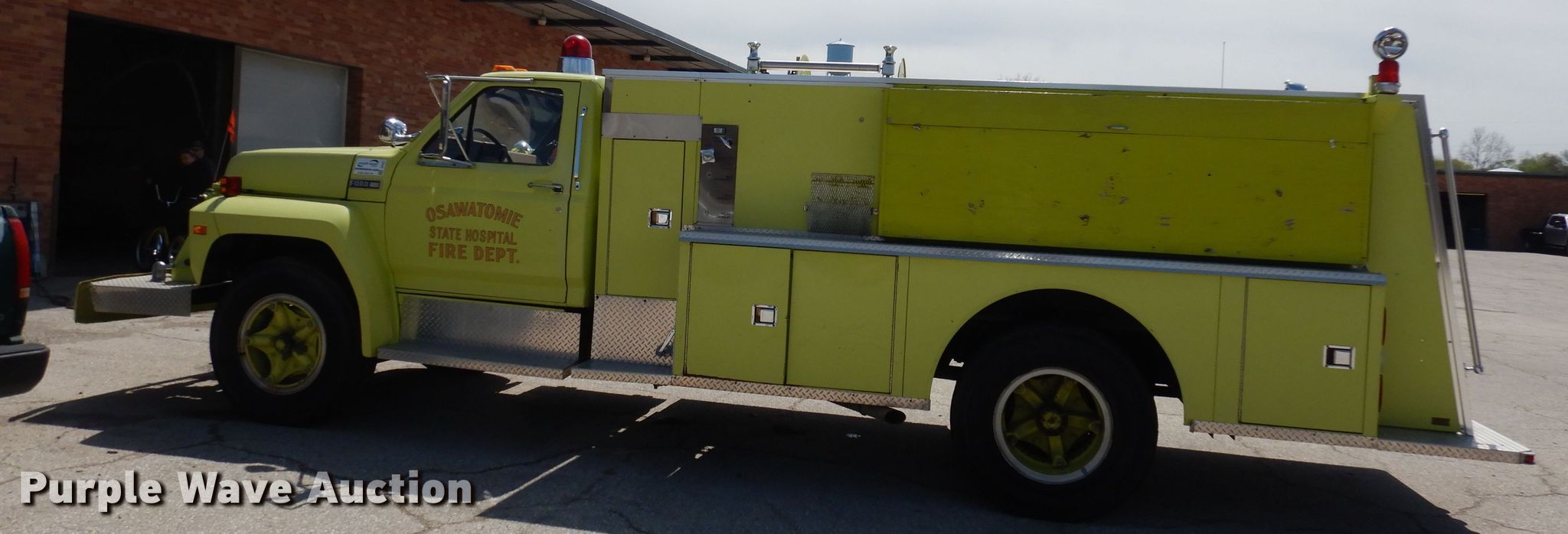 Purple Wave is selling a used Fire Truck or Emergency Vehicle in Kansas. This item is a 1980 Ford F700 pumper fire truck with the following: 6,603 miles on odometer, Actual mileage unknown