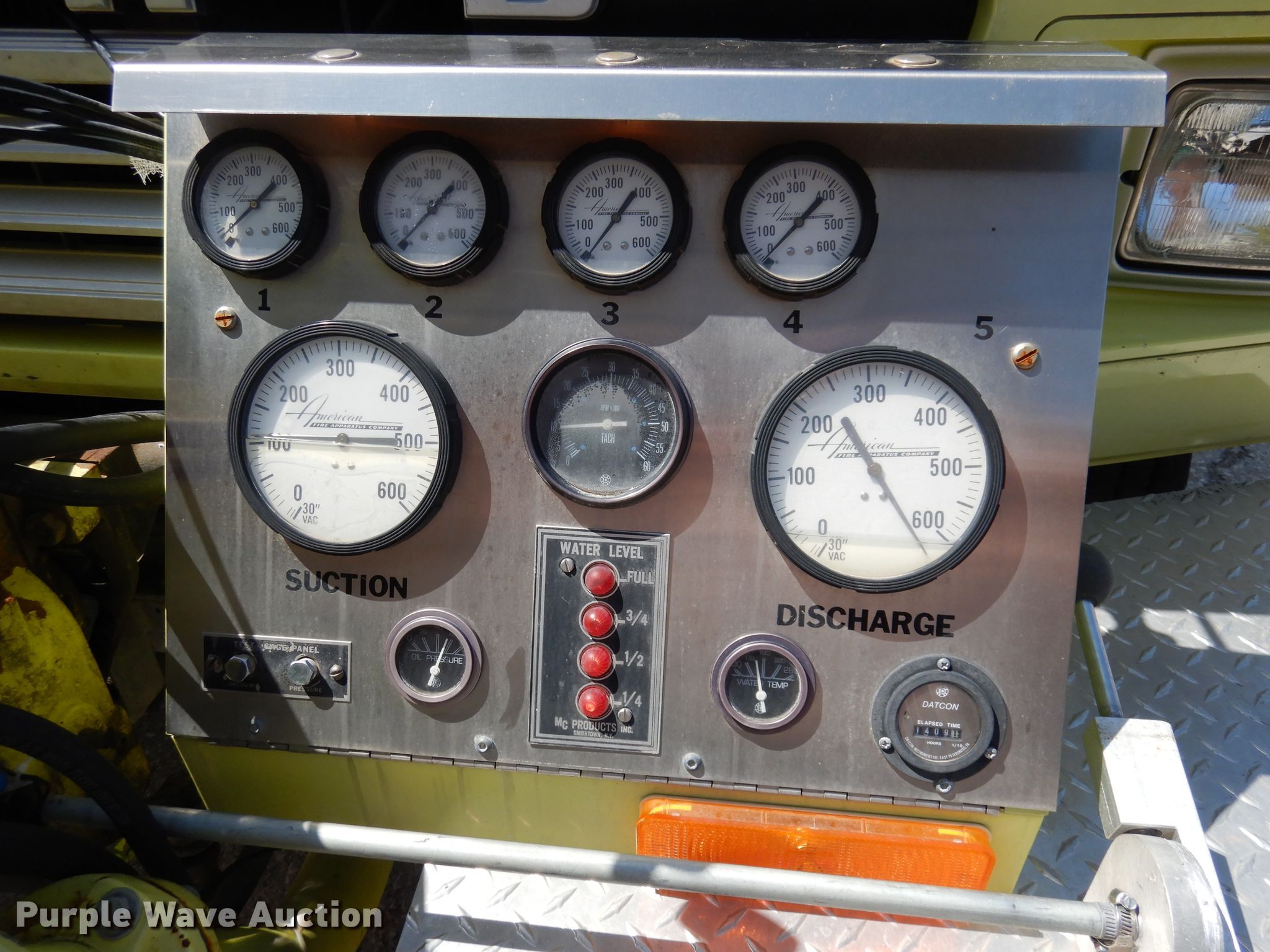 1980 Ford F700 pumper fire truck. 6,603 miles on odometer Actual mileage unknown. Engine Fuel type: Gas. Transmission Manual, Speed: 5. Chassis Axles: Single, Suspension: Spring, Brakes: Hydraulic, GVWR: 25,000 lbs, Wheelbase: 176". Interior Heat. Operational Fire truck Pump 750 gpm.. Tires Size: 9.00R20, Brand: Goodyear. Notes Non-operational front water pump, froze up. Kansas title. Mileage has not been verified. Exempt will be written in the odometer disclosure on the title. F70KVHJ7631. Osawatomie, KS 66064