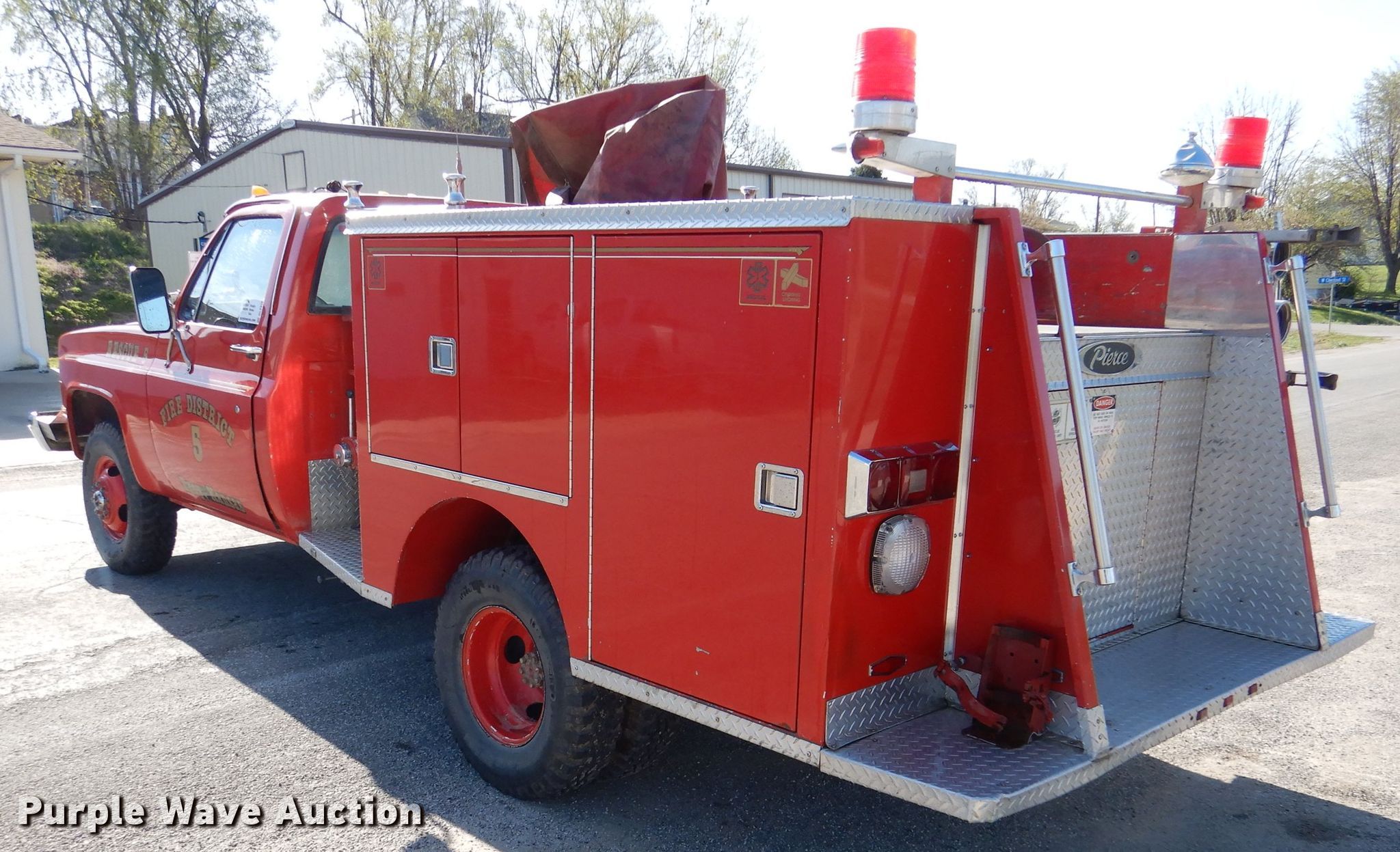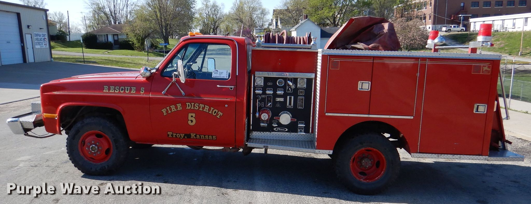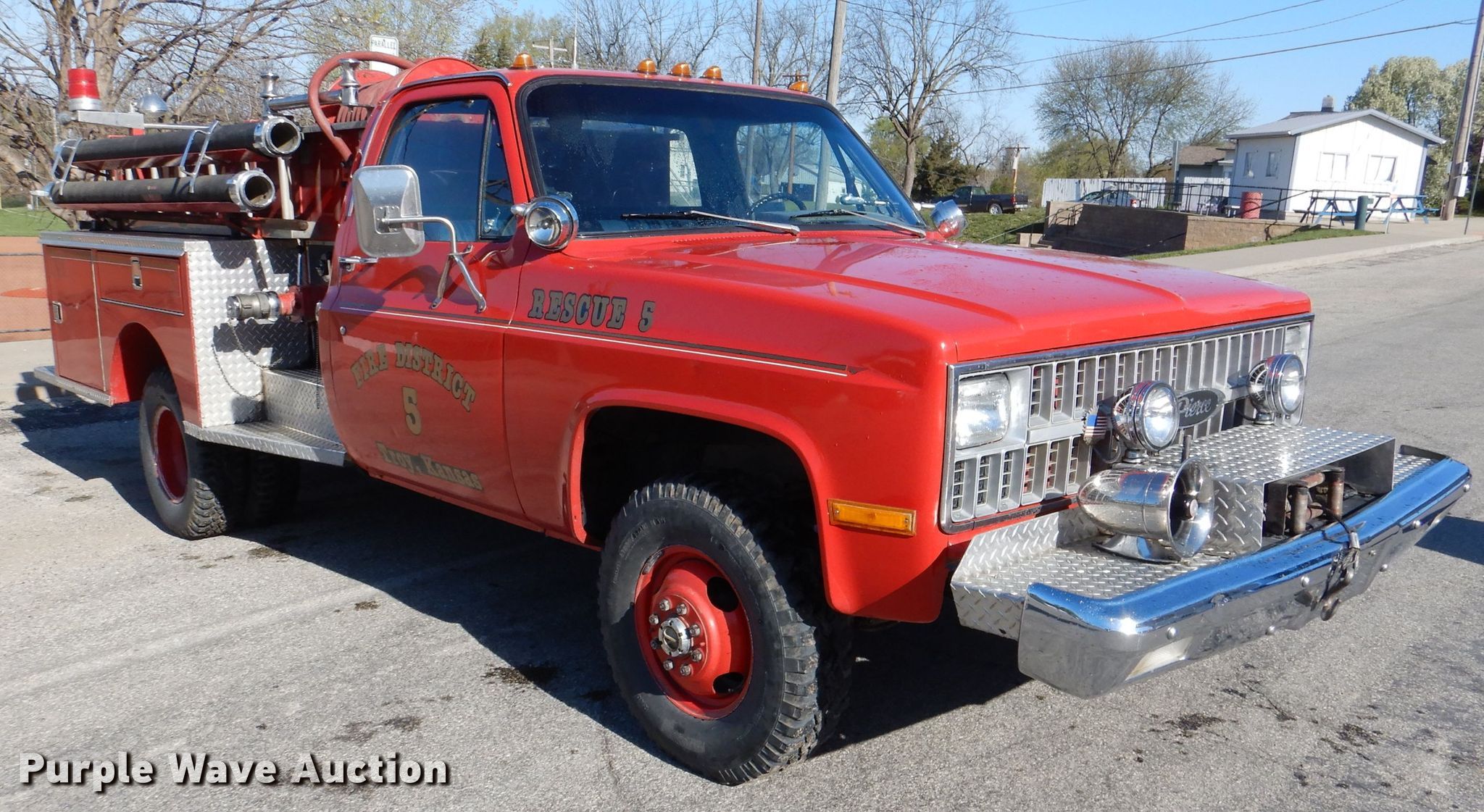 Purple Wave is selling a used Fire Truck or Emergency Vehicle in Kansas. This item is a 1981 Chevrolet K30 fire truck with the following: 1,263 miles on odometer