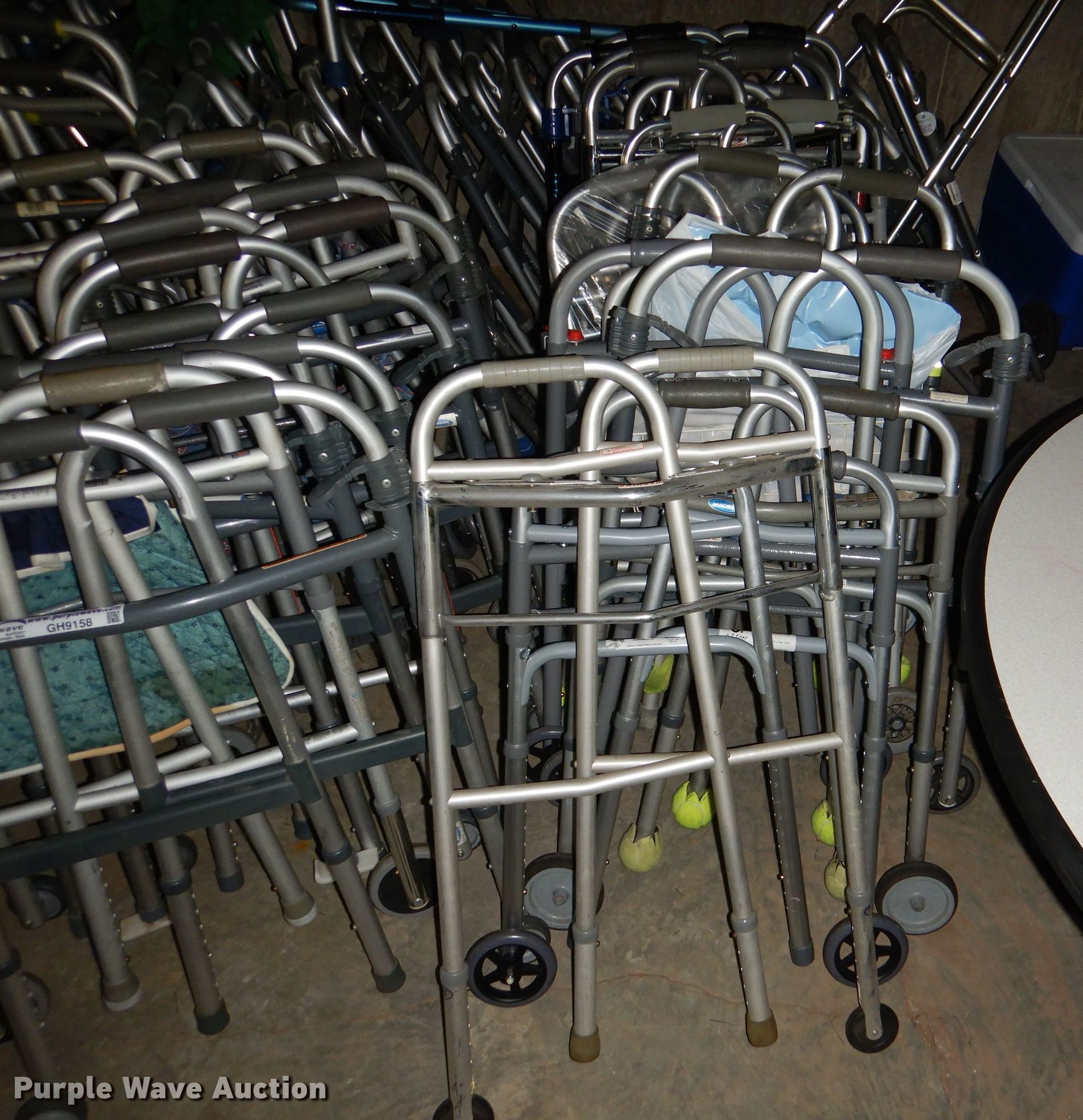 Purple Wave is selling a used Medical Equip. in Kansas. This item is a Medical equipment with the following: Approx. 50 walkers, (2) sets of crutches, Canes
