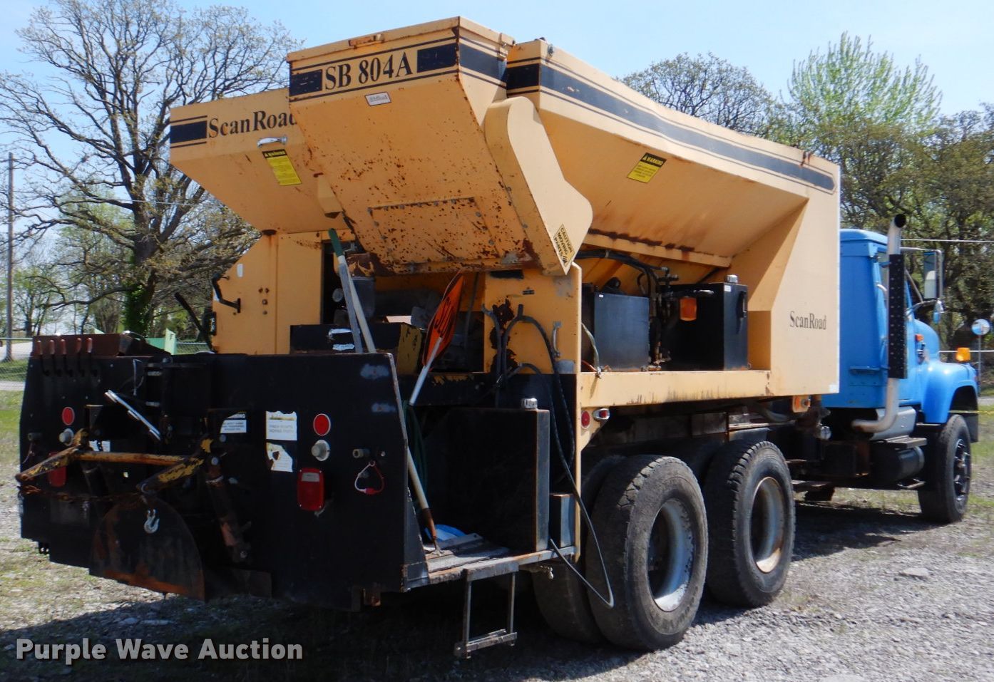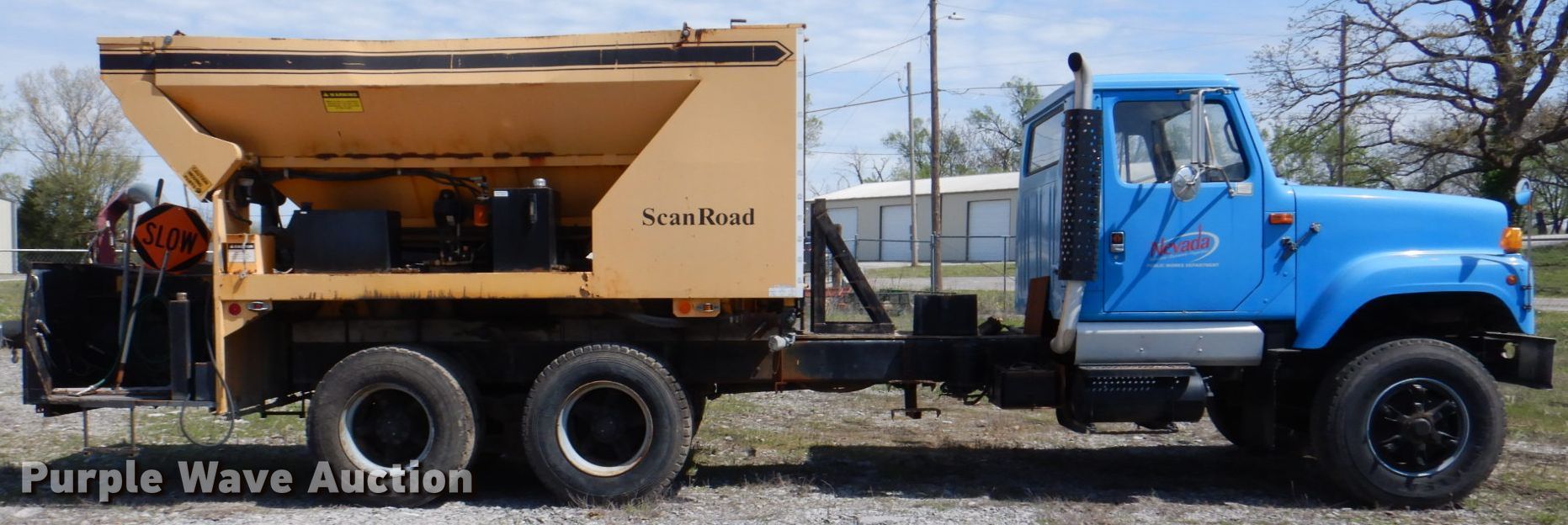 1990 International F2554 asphalt slurry truck. 45,970 miles on odometer, Engine hours: 4,829. Engine International DT466, Displacement: 7.6L, Cylinders: 6, Fuel type: Diesel. Transmission Automatic. Chassis Suspension: Spring, Brakes: Air. Interior AC, Heat. Operational Scan Road SB804A slurry bed 16' L x 96" W, Two cylinder diesel engine, Water tank, Emulsion tank. Tires Front: 315/80R22.5, Rear: 11R22.5. Missouri title. 1HTGCDBT7LH238800. City of Nevada, MO. 501 S Jefferson St. Nevada, MO 64772