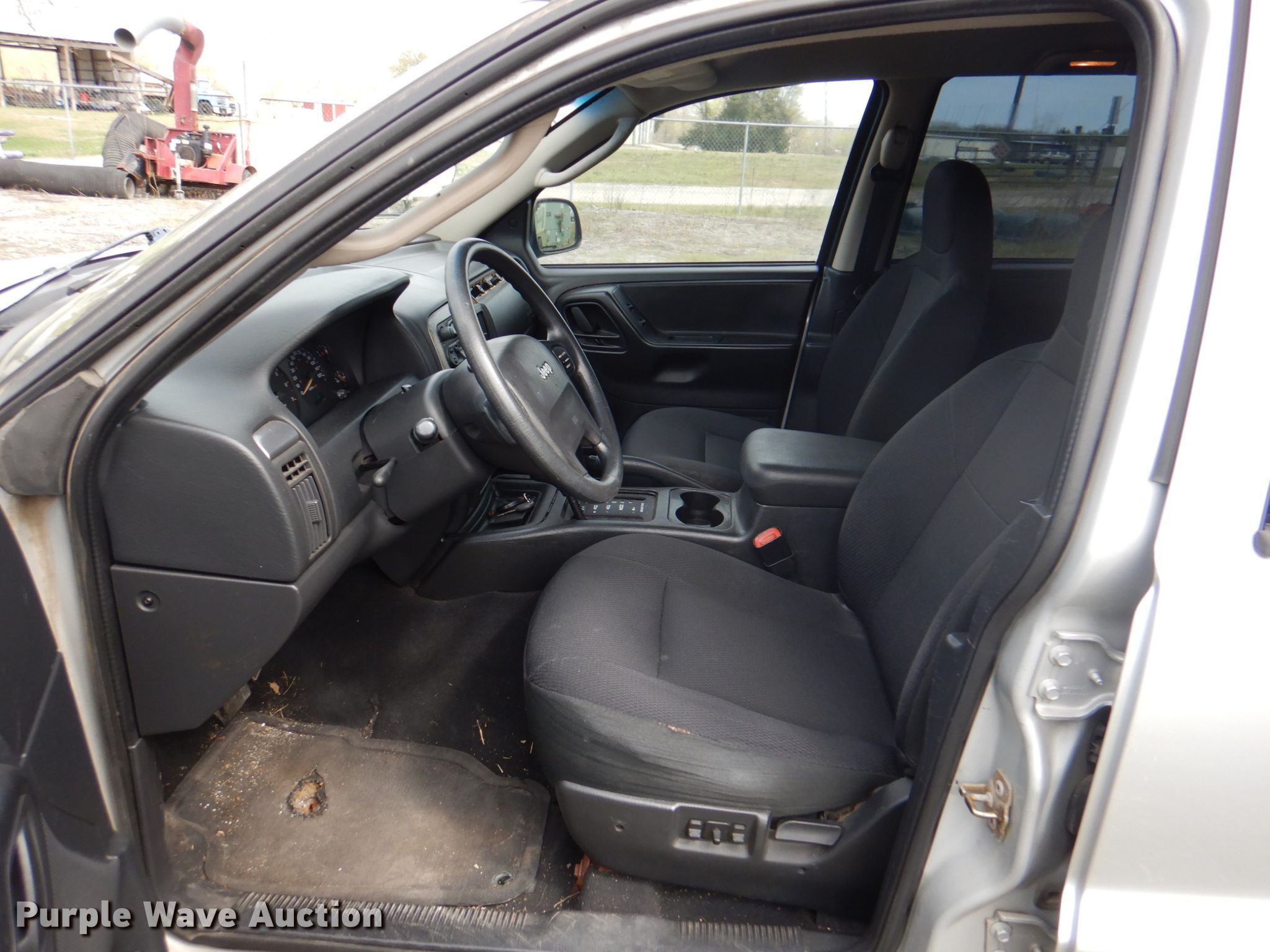 2004 Jeep Grand Cherokee Laredo SUV. 99,720 miles on odometer. Engine Displacement: 4.0L L6 OHV 12V, Cylinders: 6, Fuel type: Gas. Transmission Automatic, Four wheel drive. Interior AC, Heat, Seat: Power driver, Power windows, Power locks, Cruise control. Tires Size: 225/75R16. Notes Missing catalytic converter. Missouri title. 1J4GW48S74C327116. City of Nevada, MO. 501 S Jefferson St. Nevada, MO 64772
