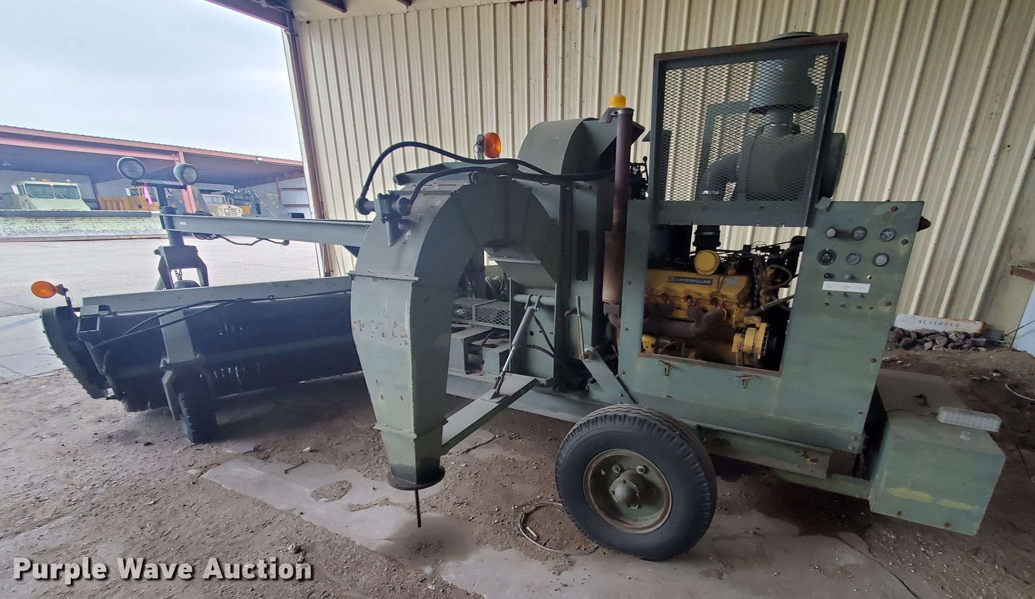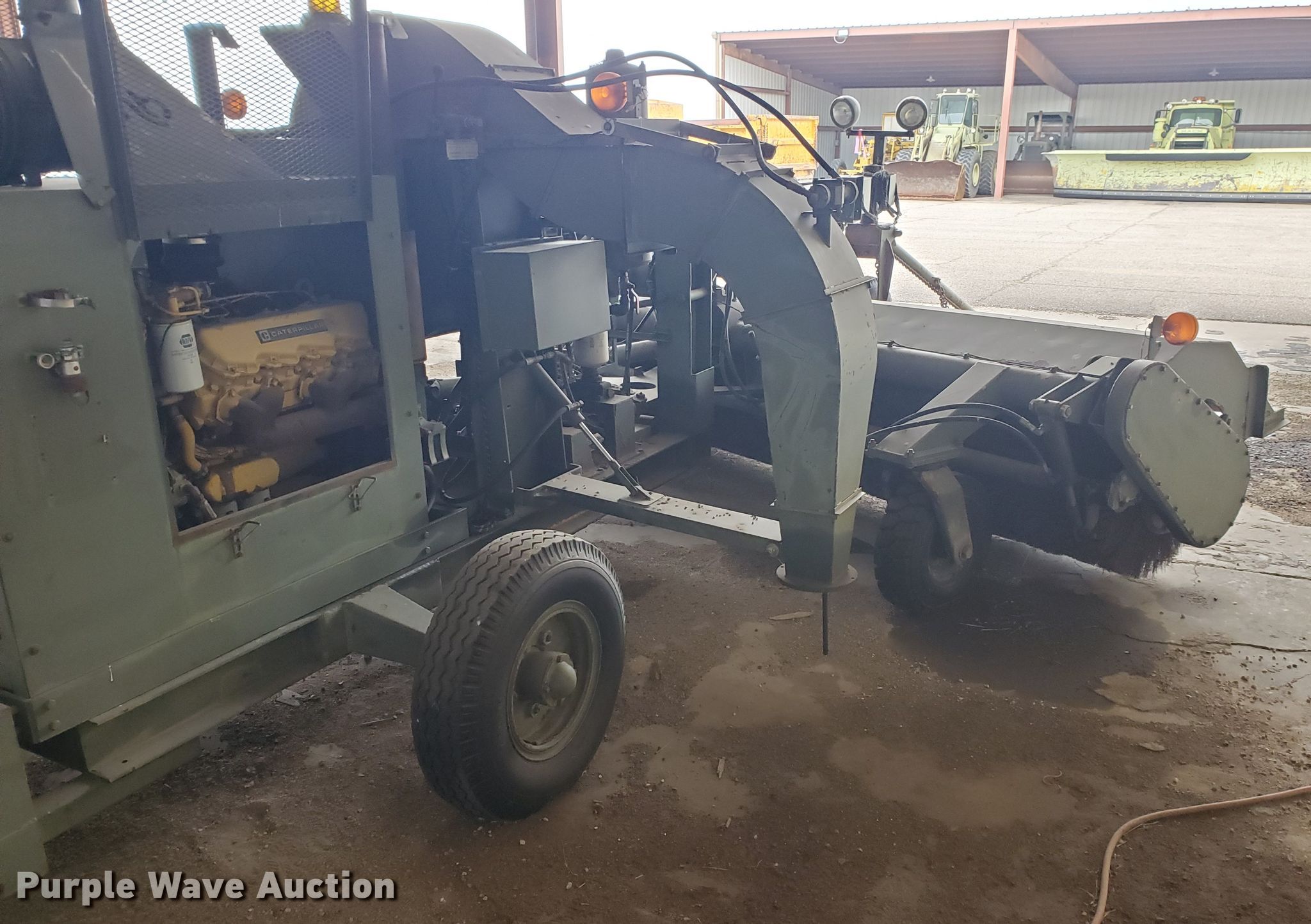Purple Wave is selling a used Broom in Kansas. This item is a MB broom with the following: Broom, Width: 168", Hydraulic lift, Hydraulic pivot, Dual blowers, Controls: In-cab, Engine, Caterpillar 3208, Cylinders: 8, Fuel type: Diesel, HP: 210