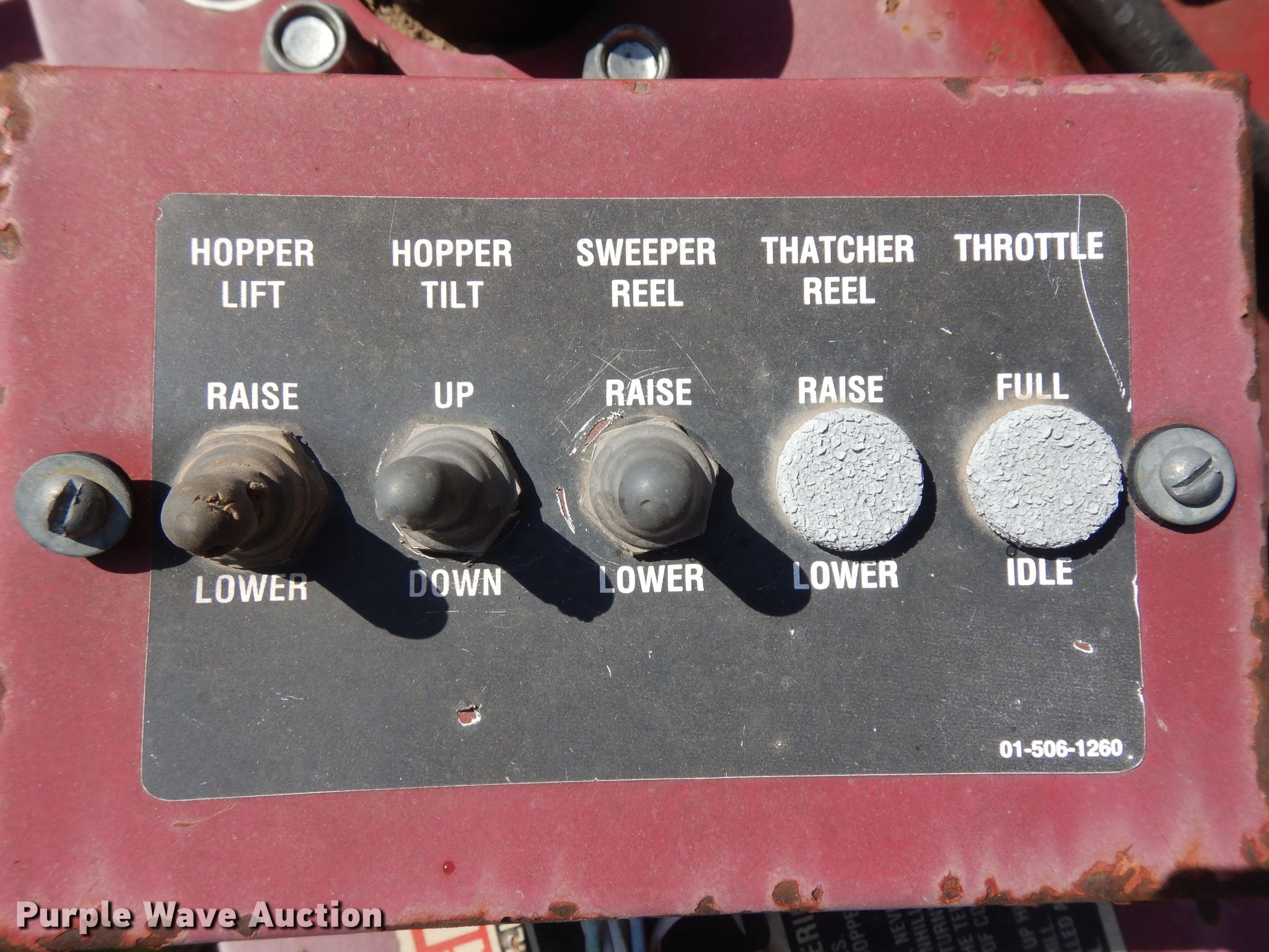 Purple Wave is selling a used Lawn and Garden in Kansas. This item is a Toro 1655HL turf sweeper with the following: Kohler two cylinder gas engine, Electric start, Hydraulic operation, Serial 60103