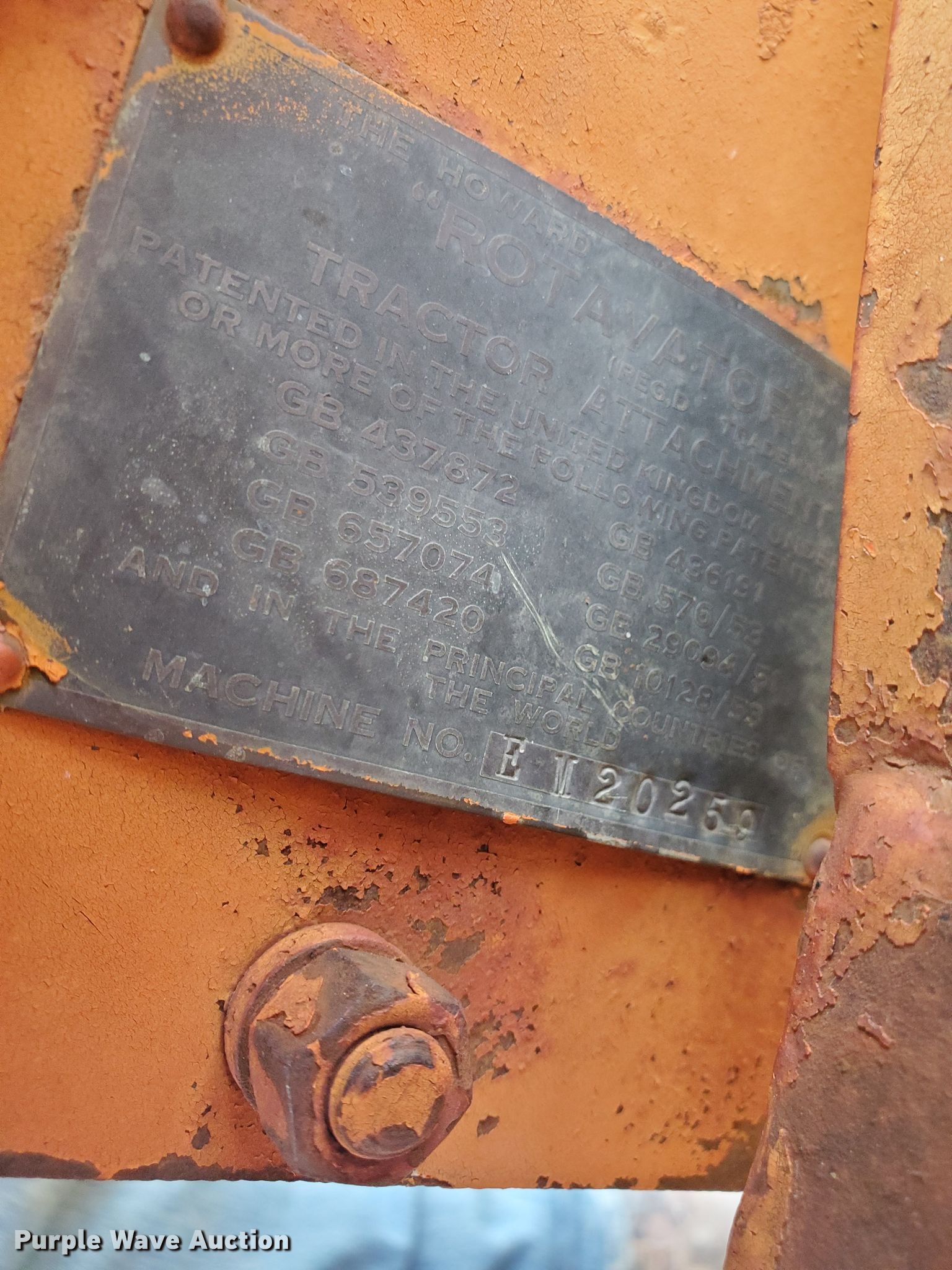 Purple Wave is selling a used Rotary Tillage in Kansas. This item is a Howard Rotavator rototiller with the following: Overall width: 52", Serial: EM20250