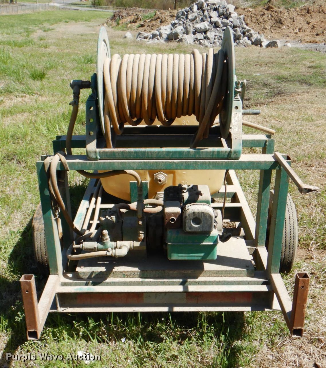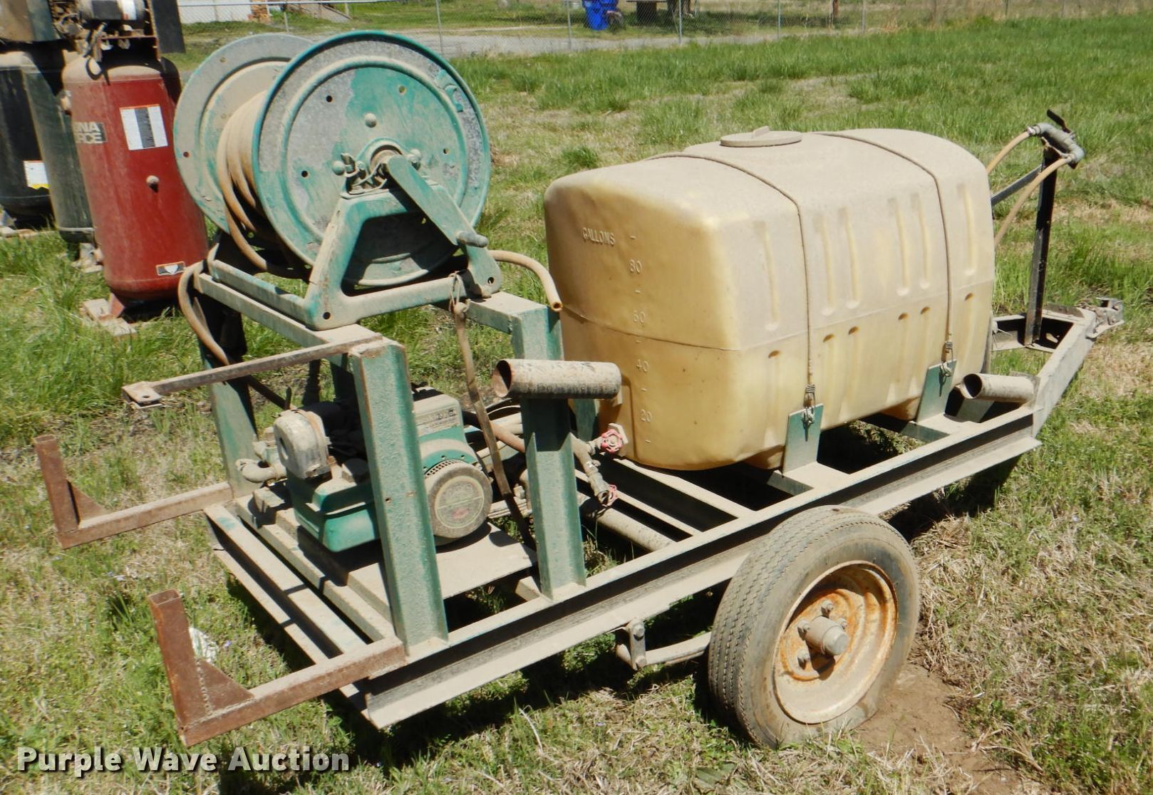 Purple Wave is selling a used Tank Trailer in Oklahoma. This item is a Shop built tank trailer with the following: 10'L x 59"W overall, 100 gallon poly tank, Kawasaki FA210D 207cc single cylinder gas engine, 5.2 HP, Hose reel, 2" ball hitch, Single leg landing gear, Unknown operating condition