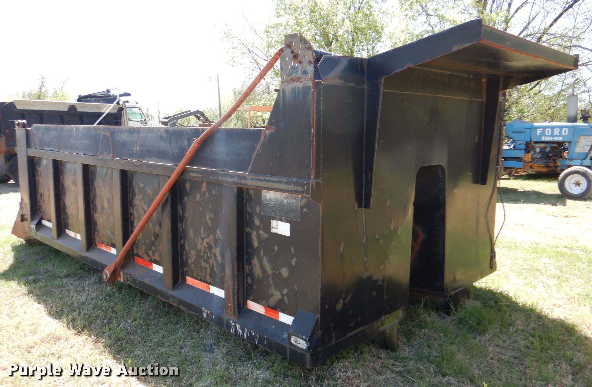 Purple Wave is selling a used Construction Dump Truck in Oklahoma. This item is a Davis dump bed with the following: 15'L x 96"W, 45" side height, 12" side board height, Ram: Single, Unknown operating condition