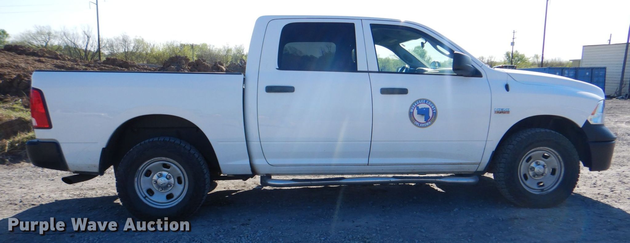 2014 Dodge Ram 1500 Crew Cab pickup truck. 128,220 miles on odometer. Engine Displacement: 5.7L V8 OHV 16V, Cylinders: 8, Fuel type: Gas. Transmission Automatic, Four wheel drive. Interior AC, Heat, Seat: Power driver, Power windows, Power locks, Cruise control. Tires Size: LT265/70R17. Notes Dash warning indicator: Check engine, Center console missing. Oklahoma title. Seller is a government entity who will be assigning and distributing the title. Please contact the seller for distribution questions. 1C6RR7XT0ES210882. Muskogee County D3. 901 S 74th St W. Muskogee, OK 74401