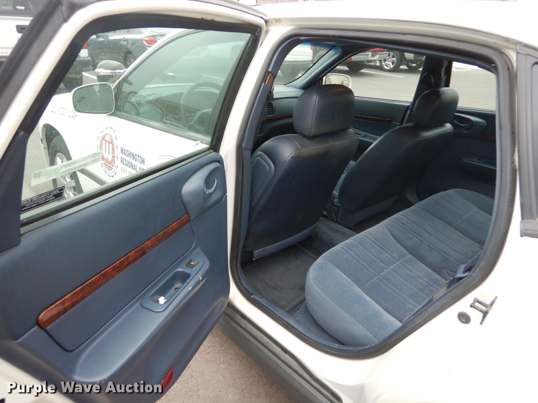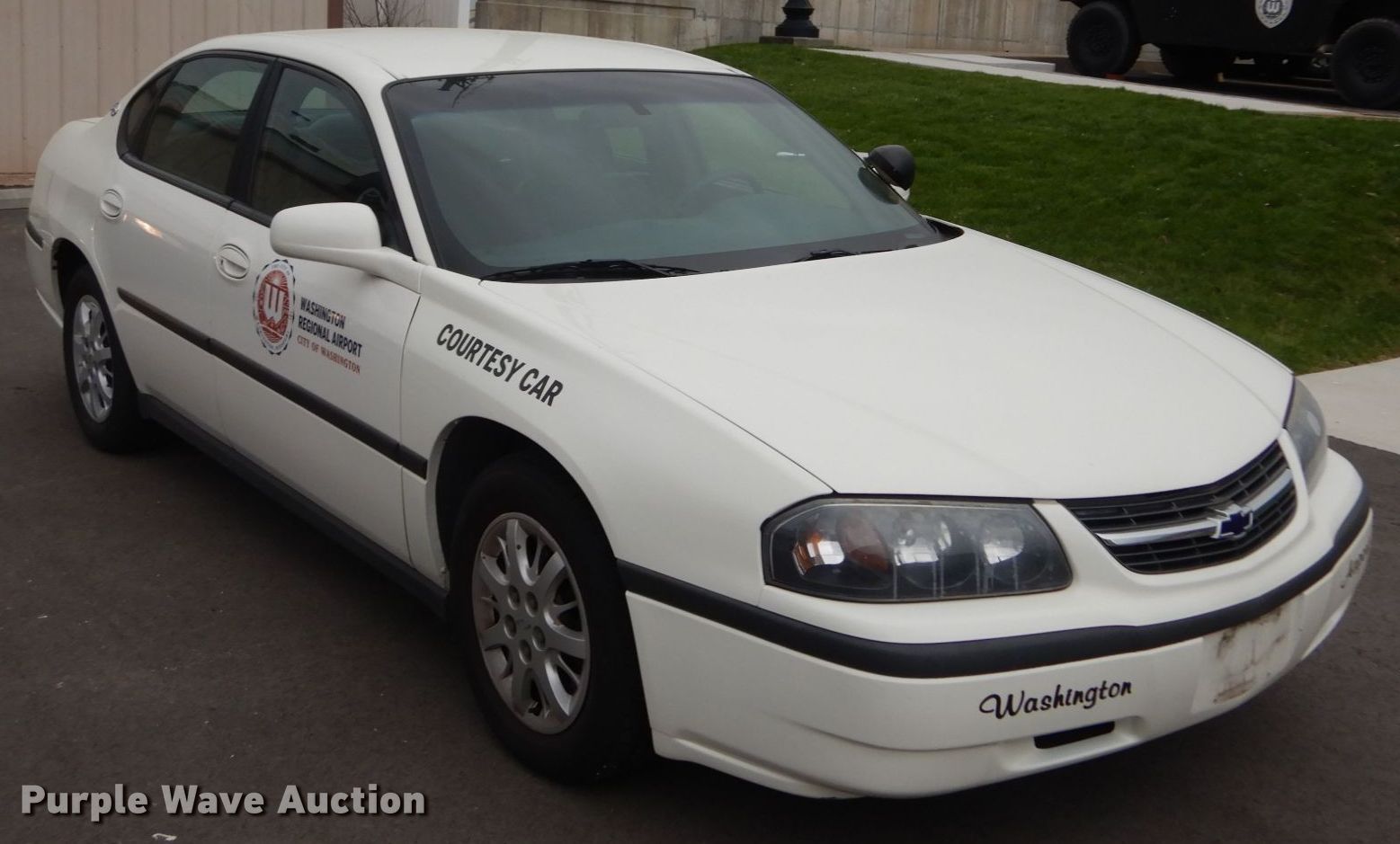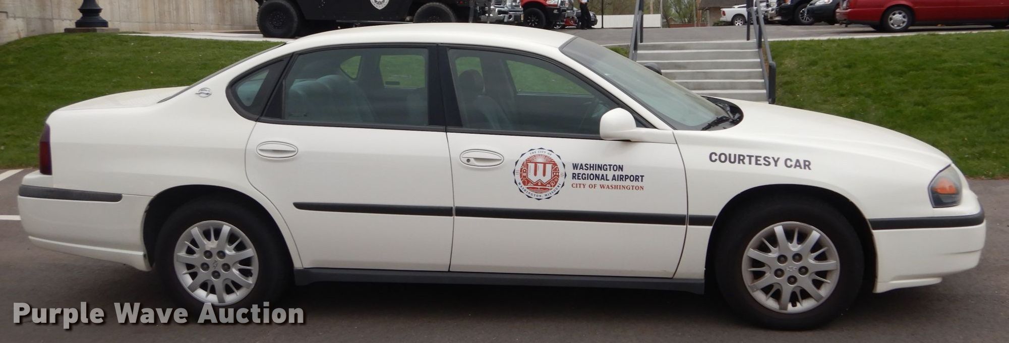 2001 Chevrolet Impala. 116,616 miles on odometer. Engine Displacement: 3.8L V6 OHV 12V, Cylinders: 6, Fuel type: Gas. Transmission Automatic. Interior AC, Heat, Seat: Power driver, Power windows, Power locks, Cruise control. Tires Size: 225/60R16. Notes Dash warning indicator: Check engine. Seller is a government entity who will be assigning and distributing the title. Please contact the seller for distribution questions. 2G1WF55K619257650. City of Washington. 301 Jefferson Street. Washington, MO 63090