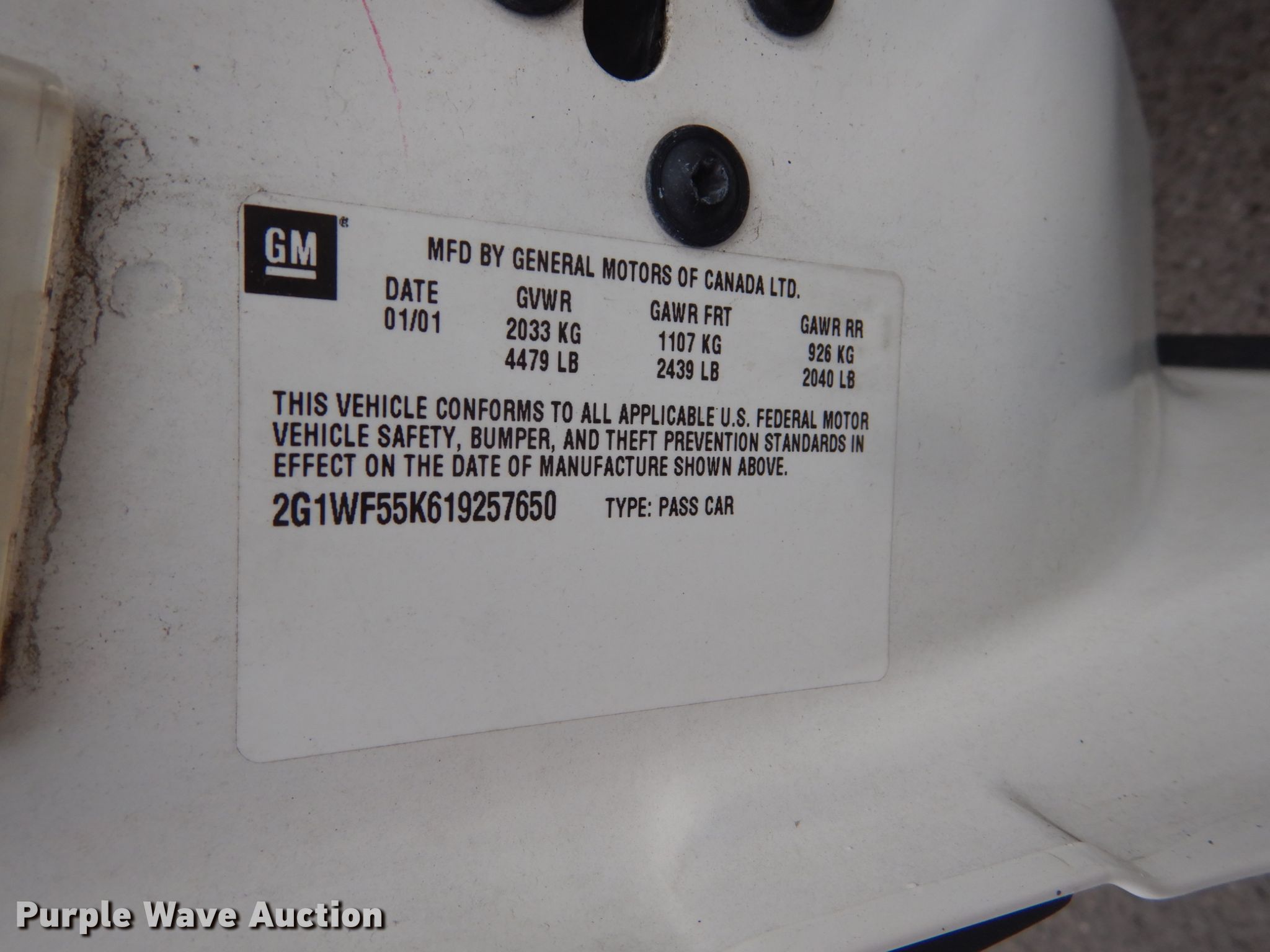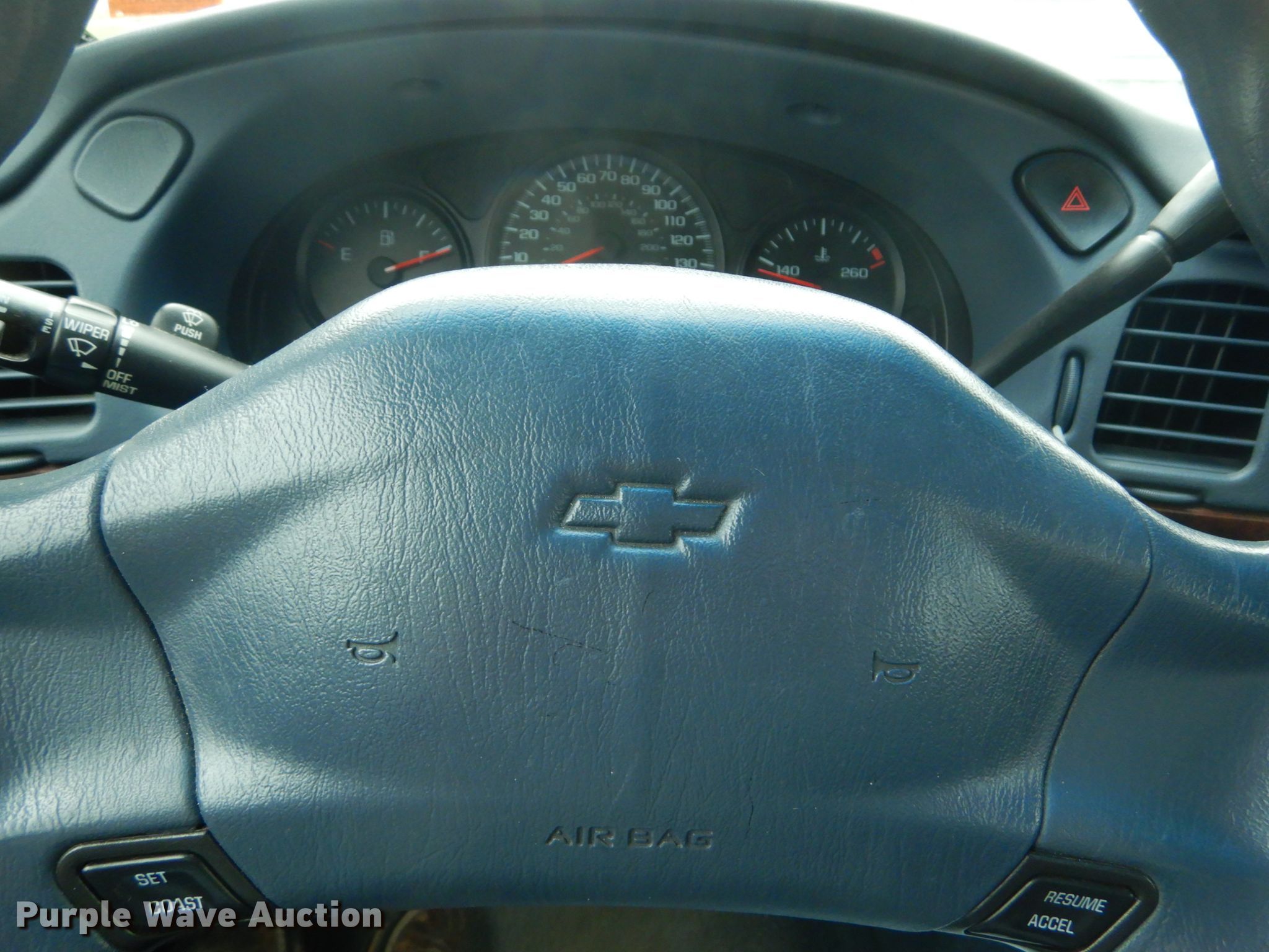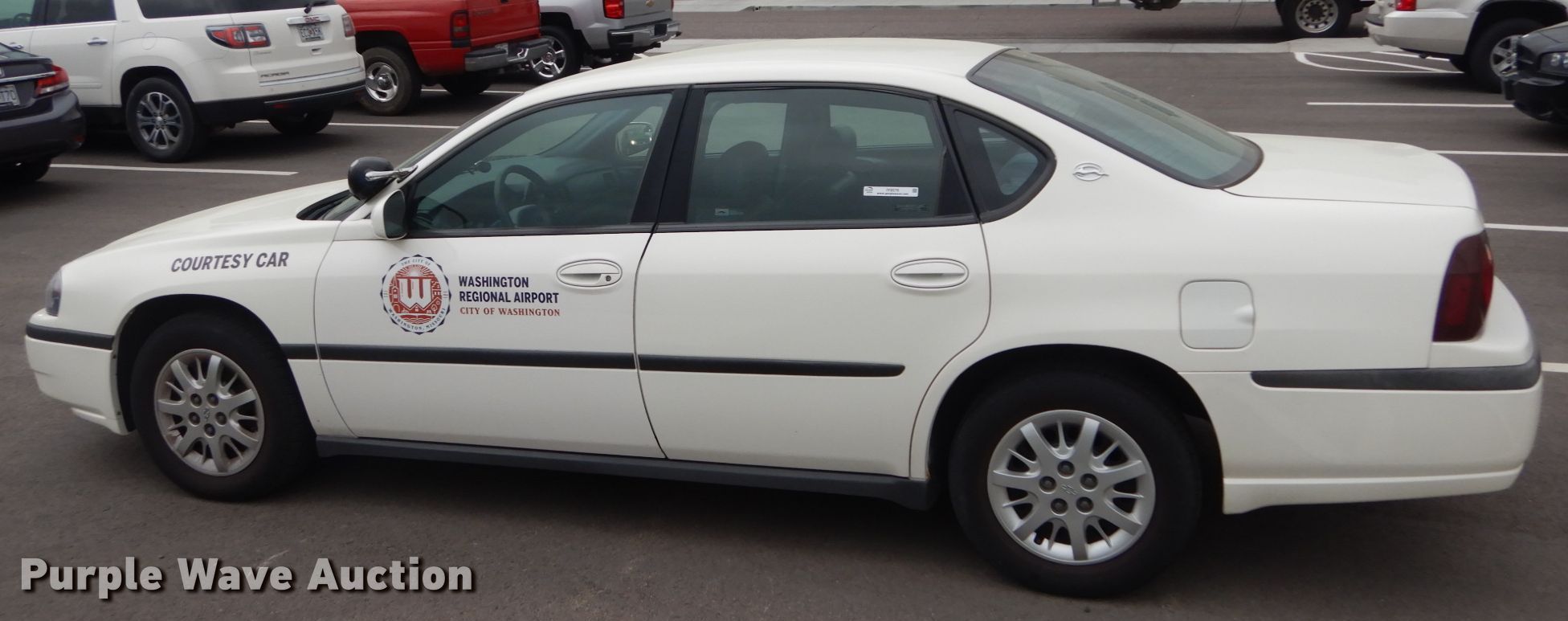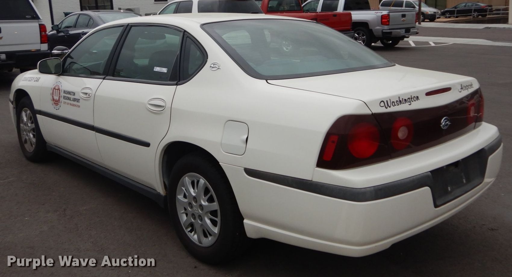 2001 Chevrolet Impala. 116,616 miles on odometer. Engine Displacement: 3.8L V6 OHV 12V, Cylinders: 6, Fuel type: Gas. Transmission Automatic. Interior AC, Heat, Seat: Power driver, Power windows, Power locks, Cruise control. Tires Size: 225/60R16. Notes Dash warning indicator: Check engine. Seller is a government entity who will be assigning and distributing the title. Please contact the seller for distribution questions. 2G1WF55K619257650. City of Washington. 301 Jefferson Street. Washington, MO 63090