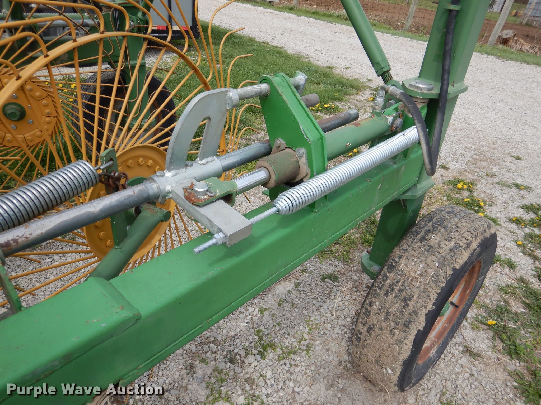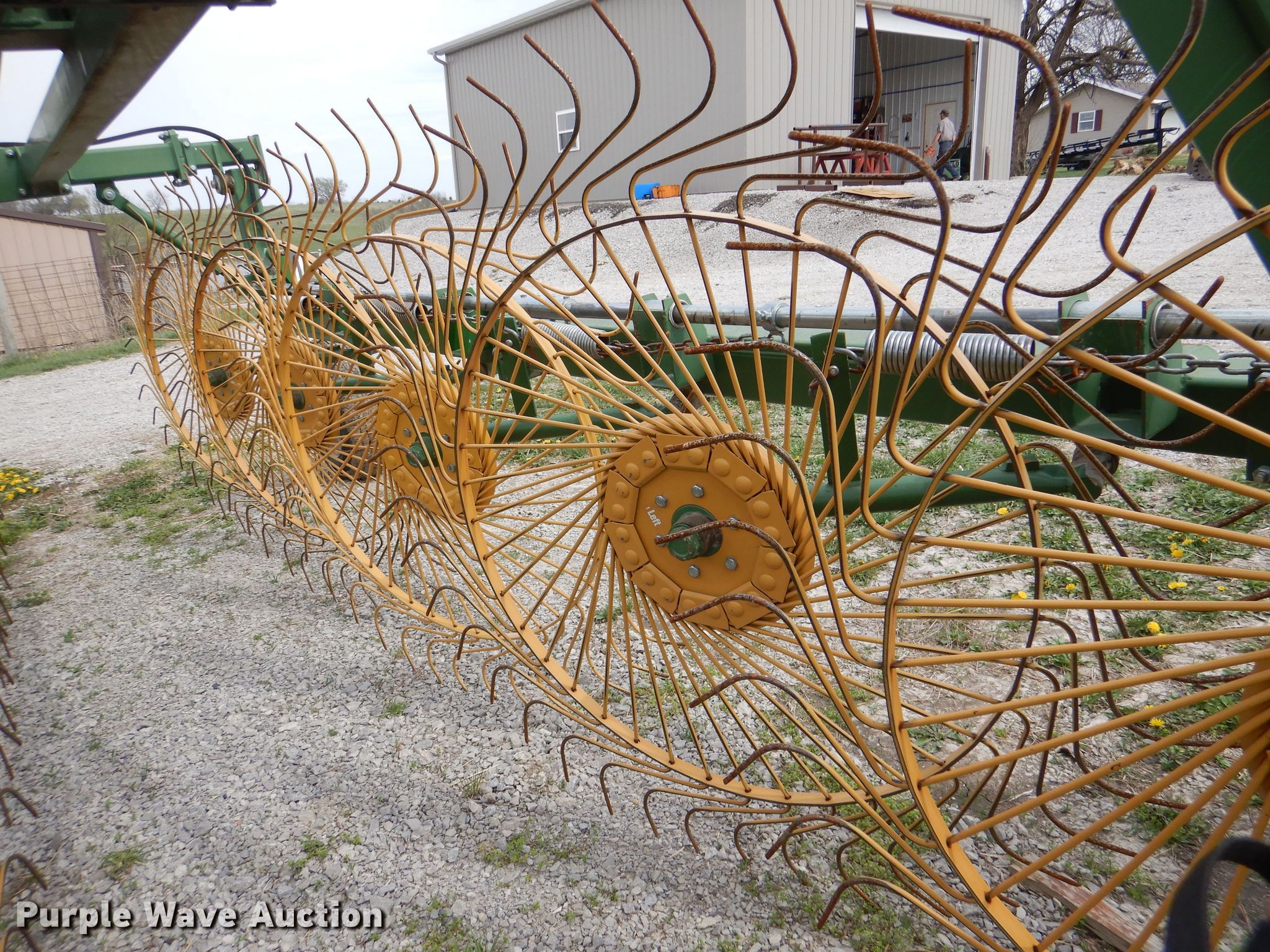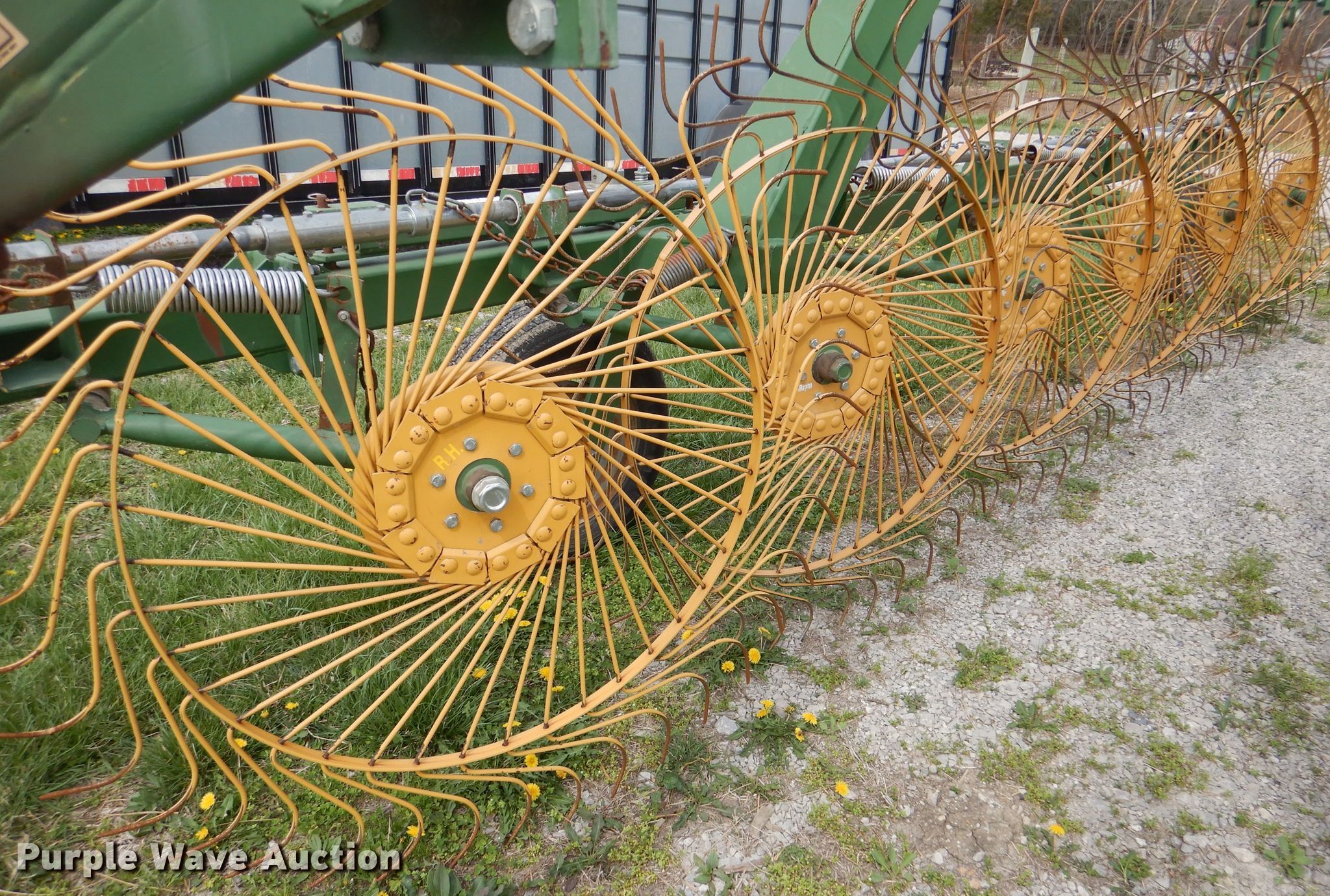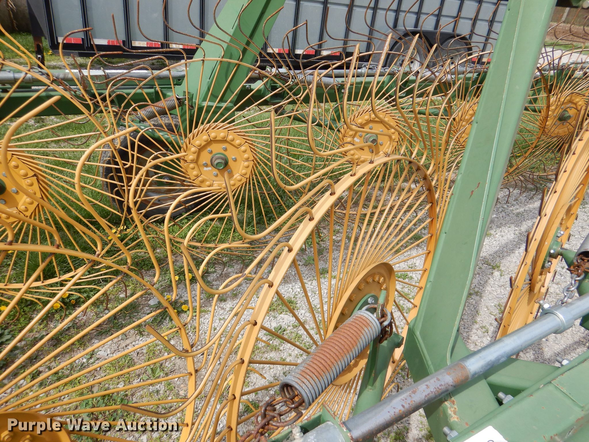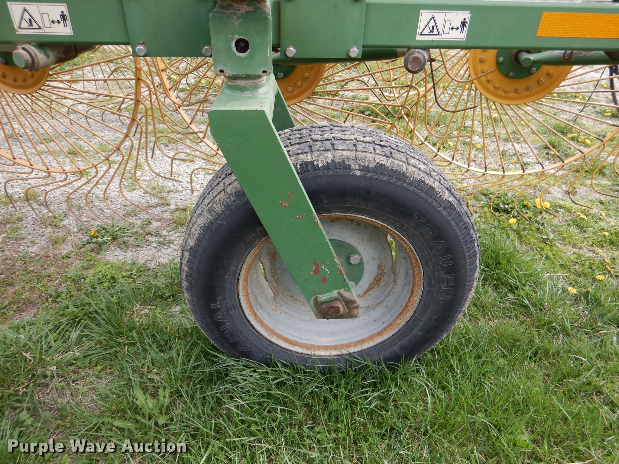 Purple Wave is selling a used Hay Rake in Kansas. This item is a Sitrex MK-12 hay rake with the following: 25'W, (12) 36" diameter wheels, Hydraulic fold, 205/75R15 tires, Serial: 151493