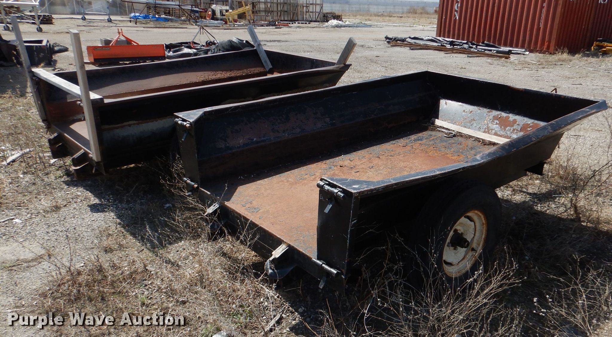 Purple Wave is selling a used Dump Trailer in Kansas. This item is a (2) dump trailers with the following: Stevenson dump trailer, 12'L x 66"W overall, 90"L x 47"W dump body, 17" side height, Dual ram hoist, Steel construction, Single leg landing gear, Single axle, Steel wheels, 7.00-15 tires, Stevenson dump trailer, 12'L x 66"W overall, 90"L x 47"W body, 17" side height, Dual ram hoist, Steel construction, Single leg landing gear, Single axle, Steel wheels, 7.00-15 tires