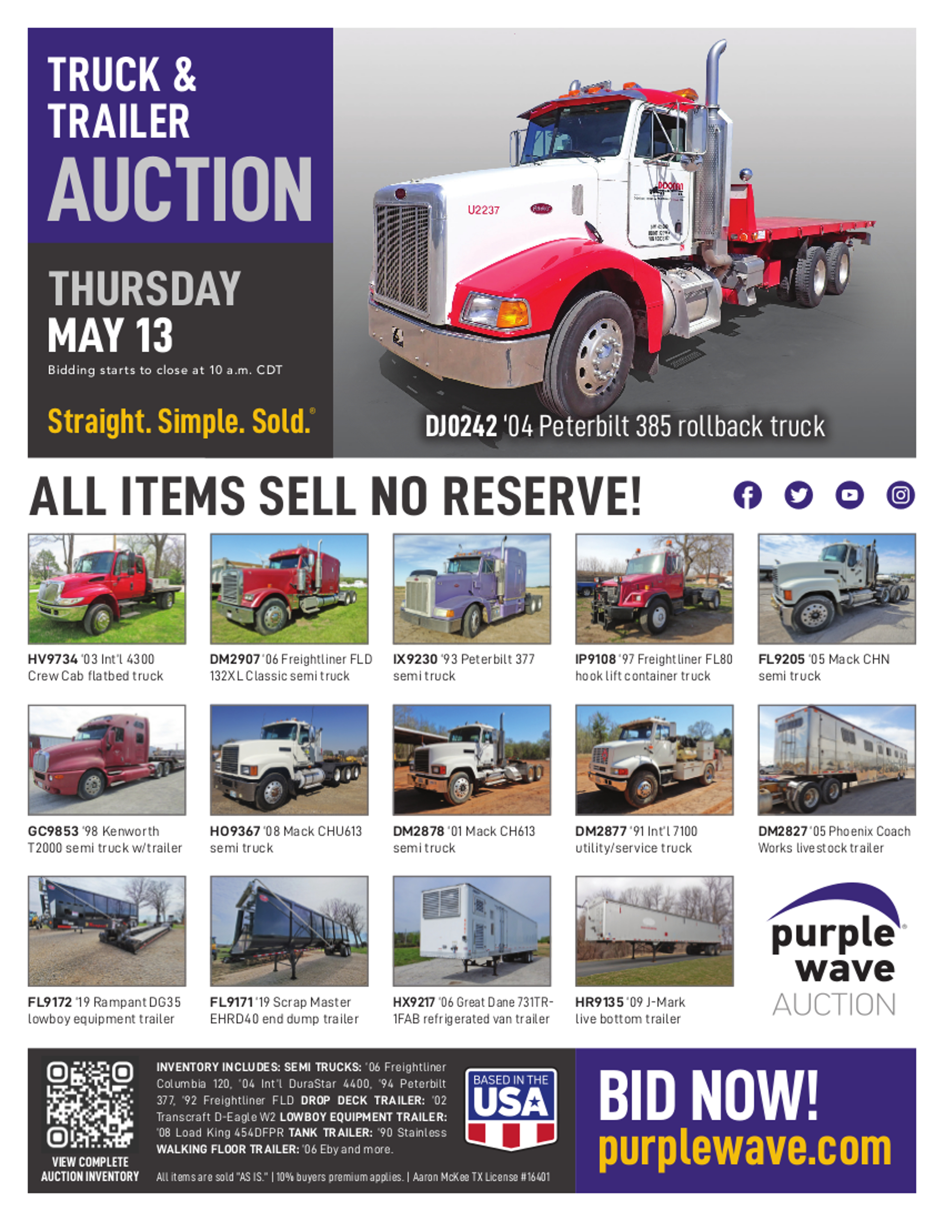 SOLD! Truck and Trailer Auction | 5-13-2021