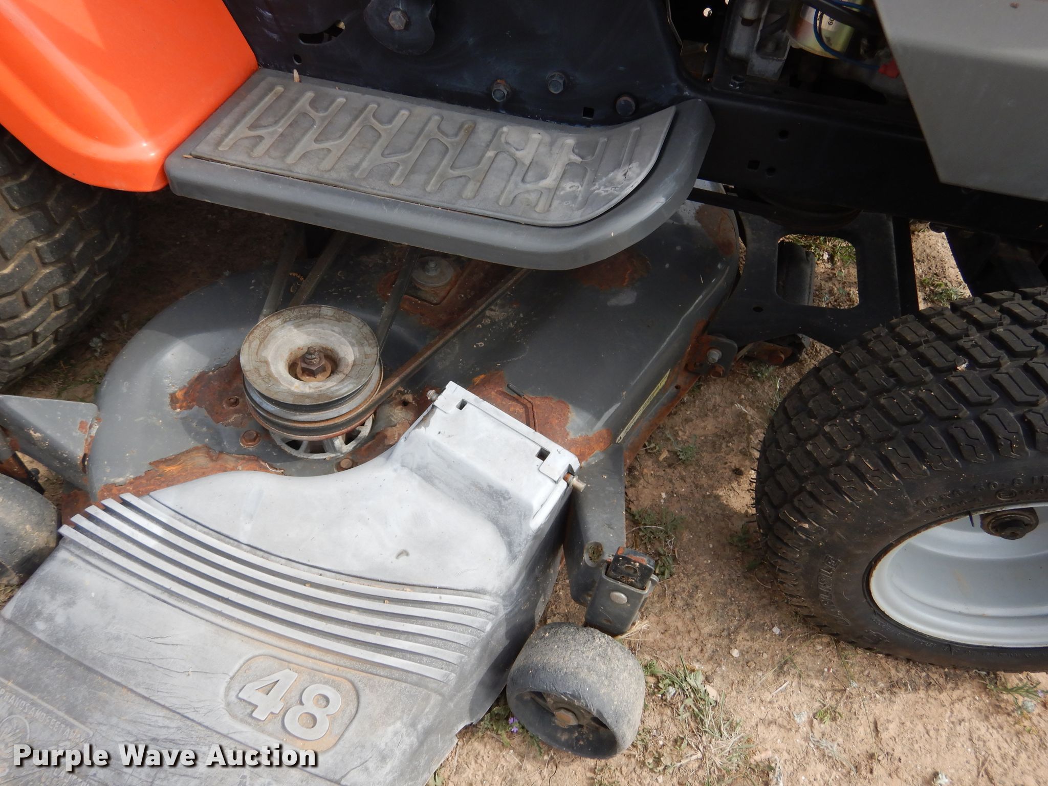 Purple Wave is selling a used Lawn Mower in Texas. This item is a 2004 Husqvarna GTH2548 lawn mower with the following: 166 hours on meter, Cutting width: 48", Serial: 95573070