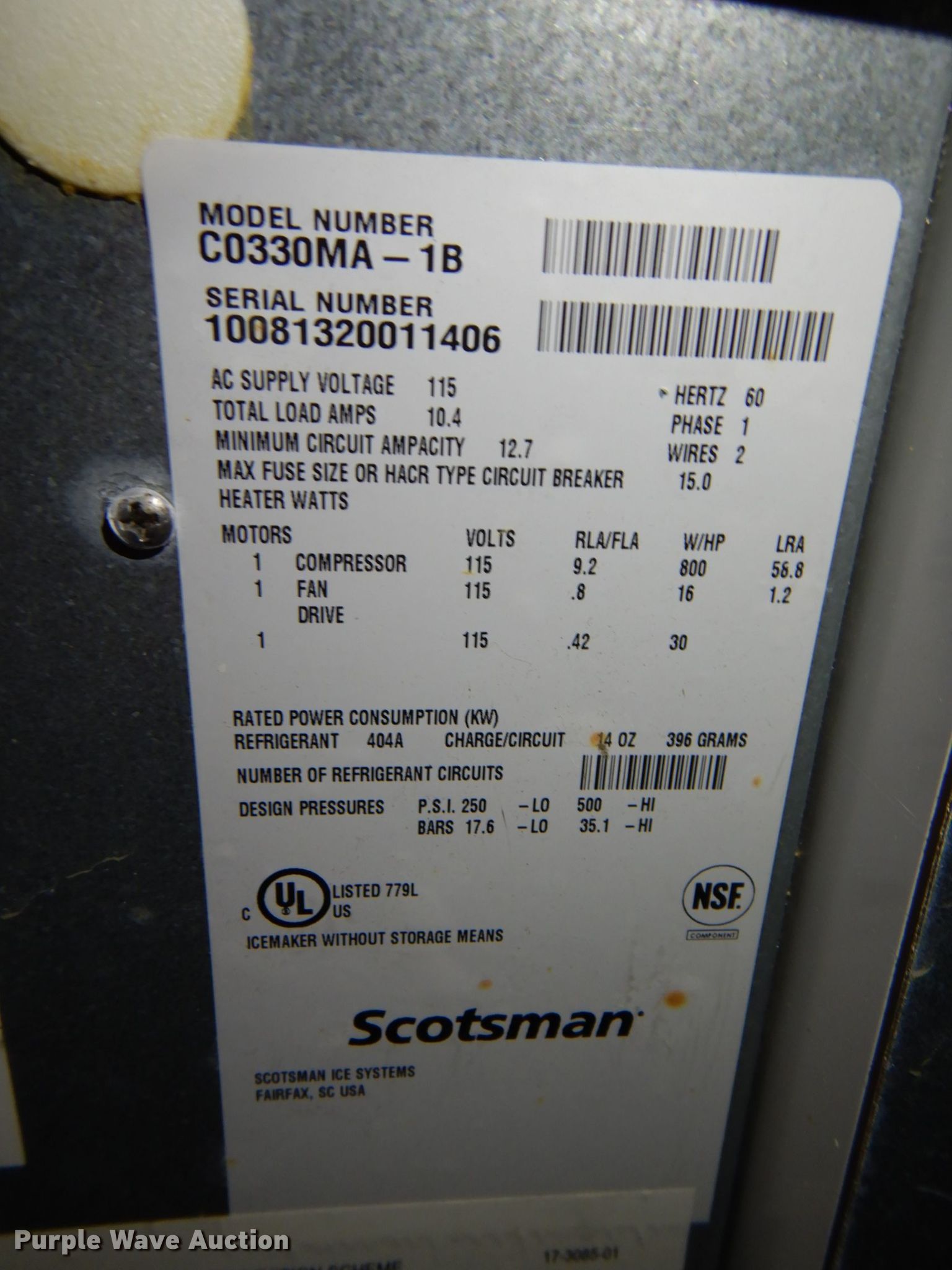 This Scotsman Prodigy ice maker will sell to the highest bidder regardless of price.