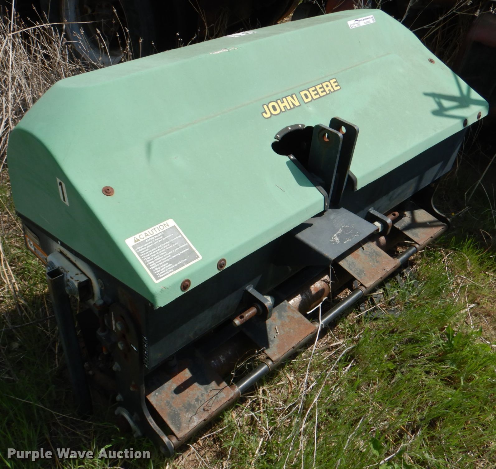 Purple Wave is selling a used Lawn and Garden in Oklahoma. This item is a John Deere Aercore 1500 aerator with the following: 5'W x 2'D, PTO: 540, Three point, Unknown operating condition