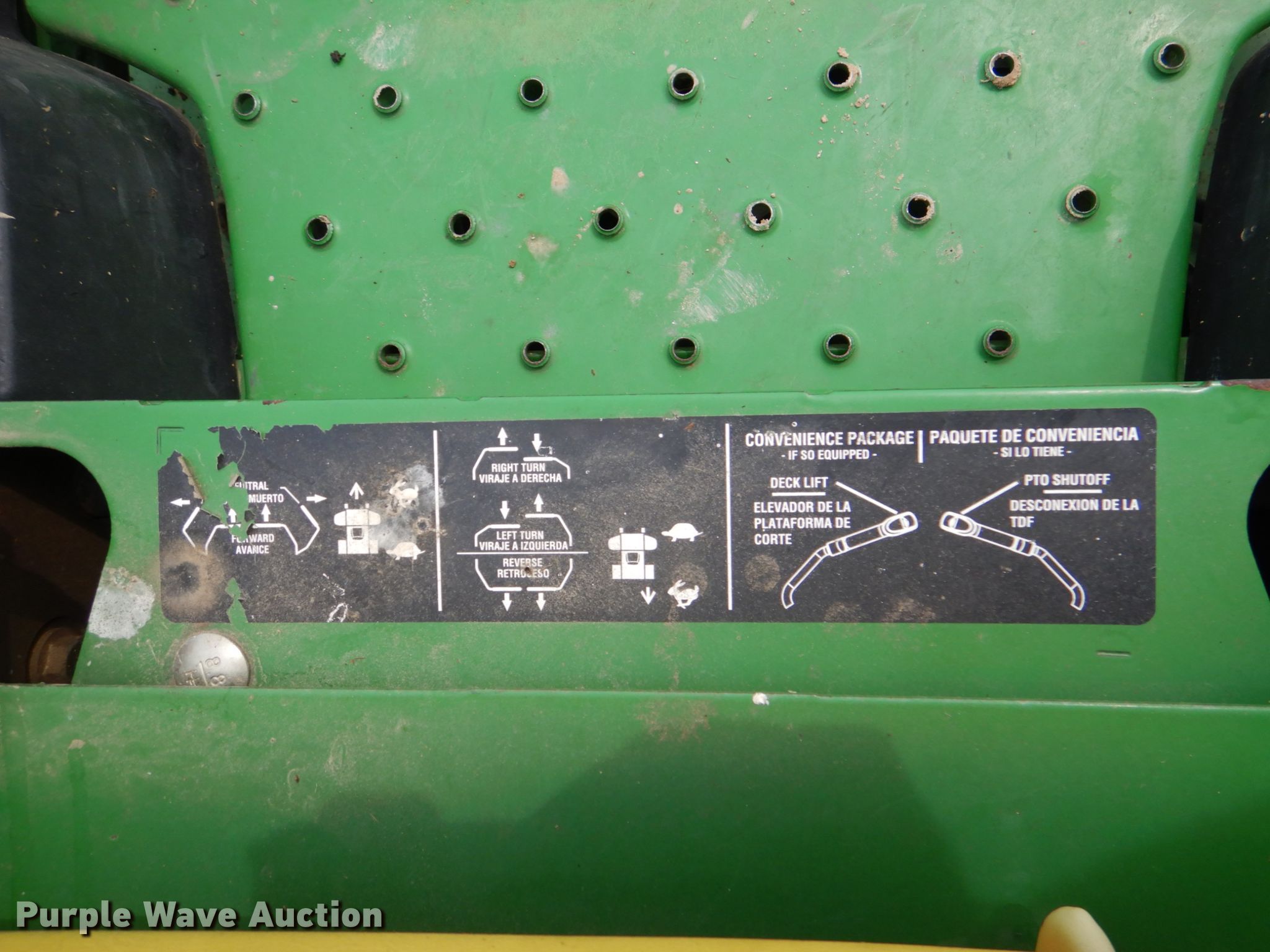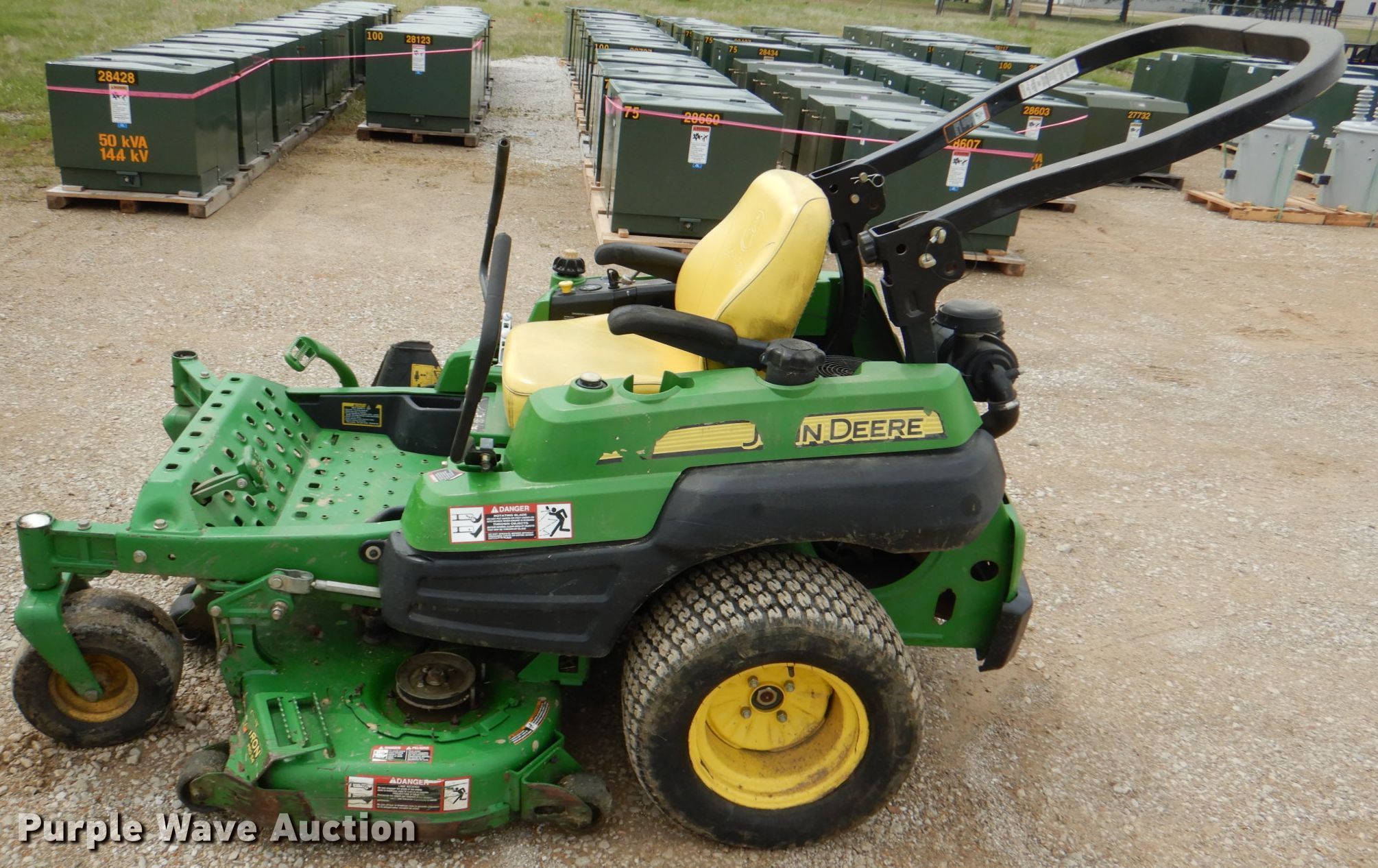 Purple Wave is selling a used Lawn Mower in Oklahoma. This item is a John Deere 810A ZTR lawn mower with the following: 829 hours on meter, Cutting width: 54", Serial: TC810AH010216