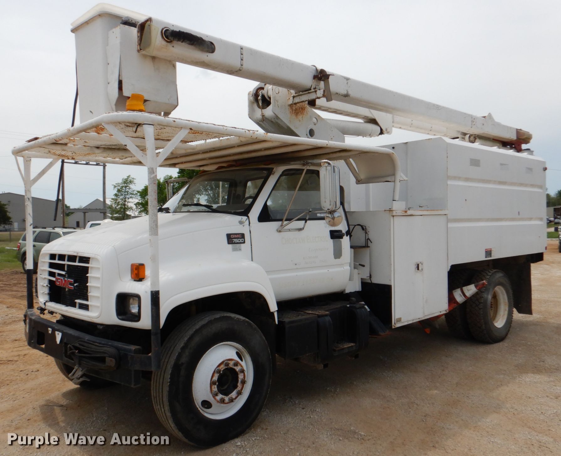 Purple Wave is selling a used Bucket Truck in Oklahoma. This item is a 1999 GMC C7500 forestry bucket truck with the following: 118,569 miles on odometer