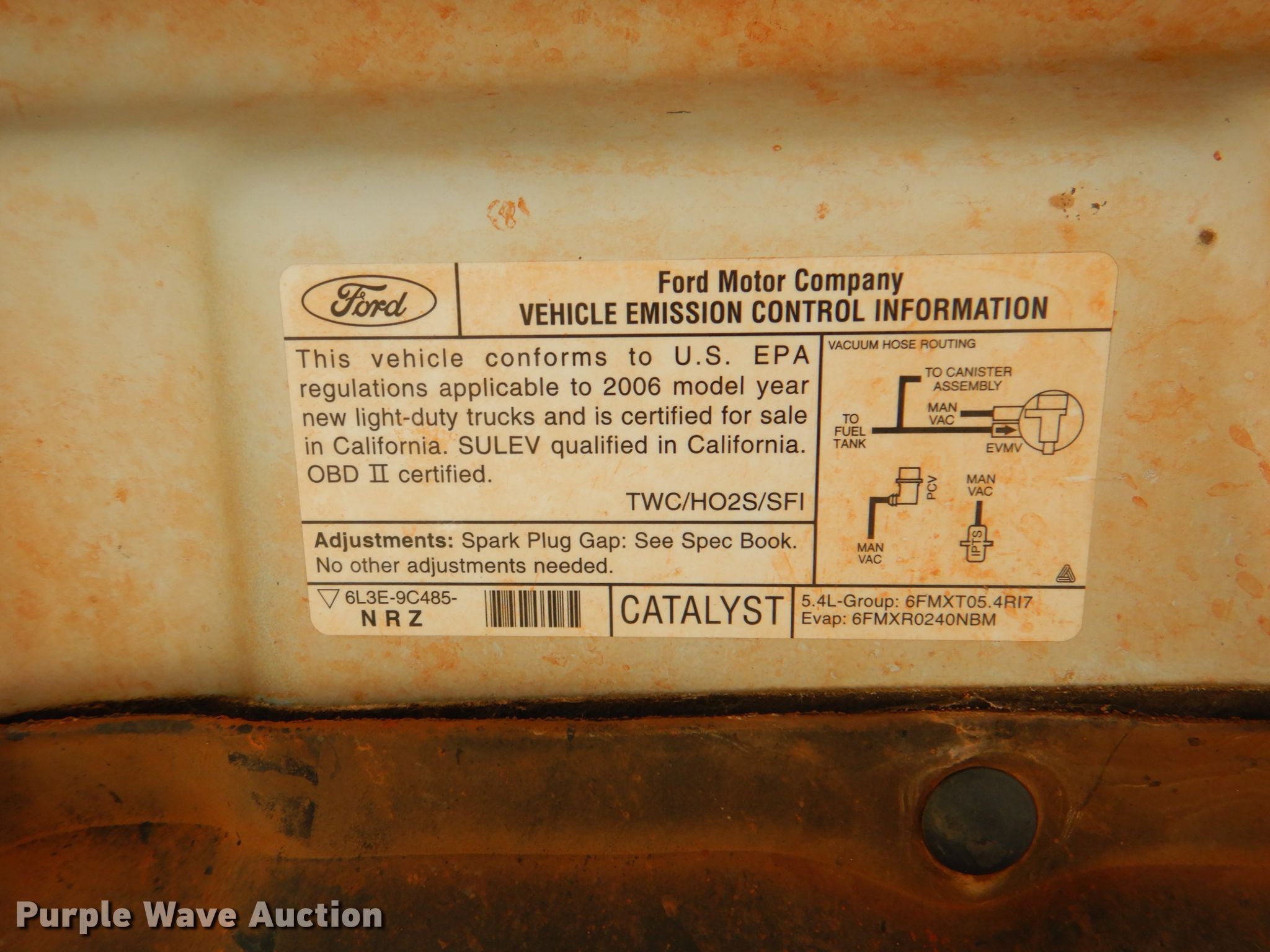 2006 Ford F150 SuperCab pickup truck. 304,273 miles on odometer. Engine Displacement: 5.4L V8 SOHC 16V, Cylinders: 8, Fuel type: Gas. Transmission Automatic, Four wheel drive. Interior AC, Heat, Seat: Power driver, Power windows, Power locks, Cruise control. Tires Size: LT275/65R18. Notes Dash warning indicator: Check engine, Air bag, Possible exhaust leak. Oklahoma title. 1FTPX14546FA23731. Flint Equipment LLC. 9305 E Main St. Cushing, OK 74023