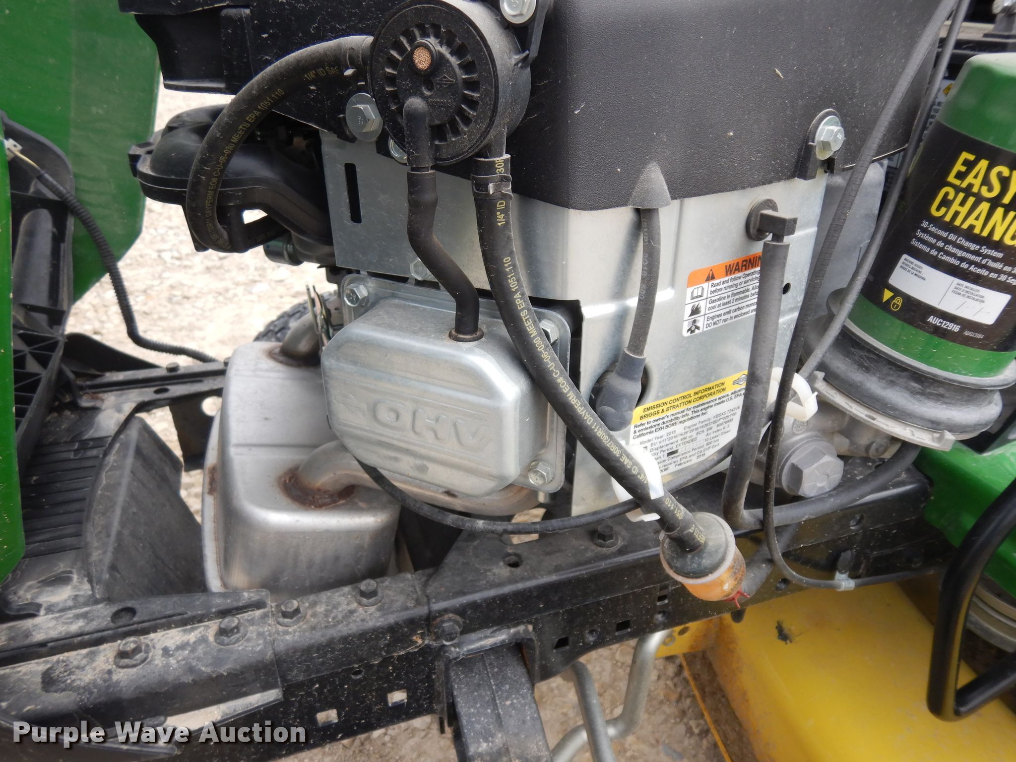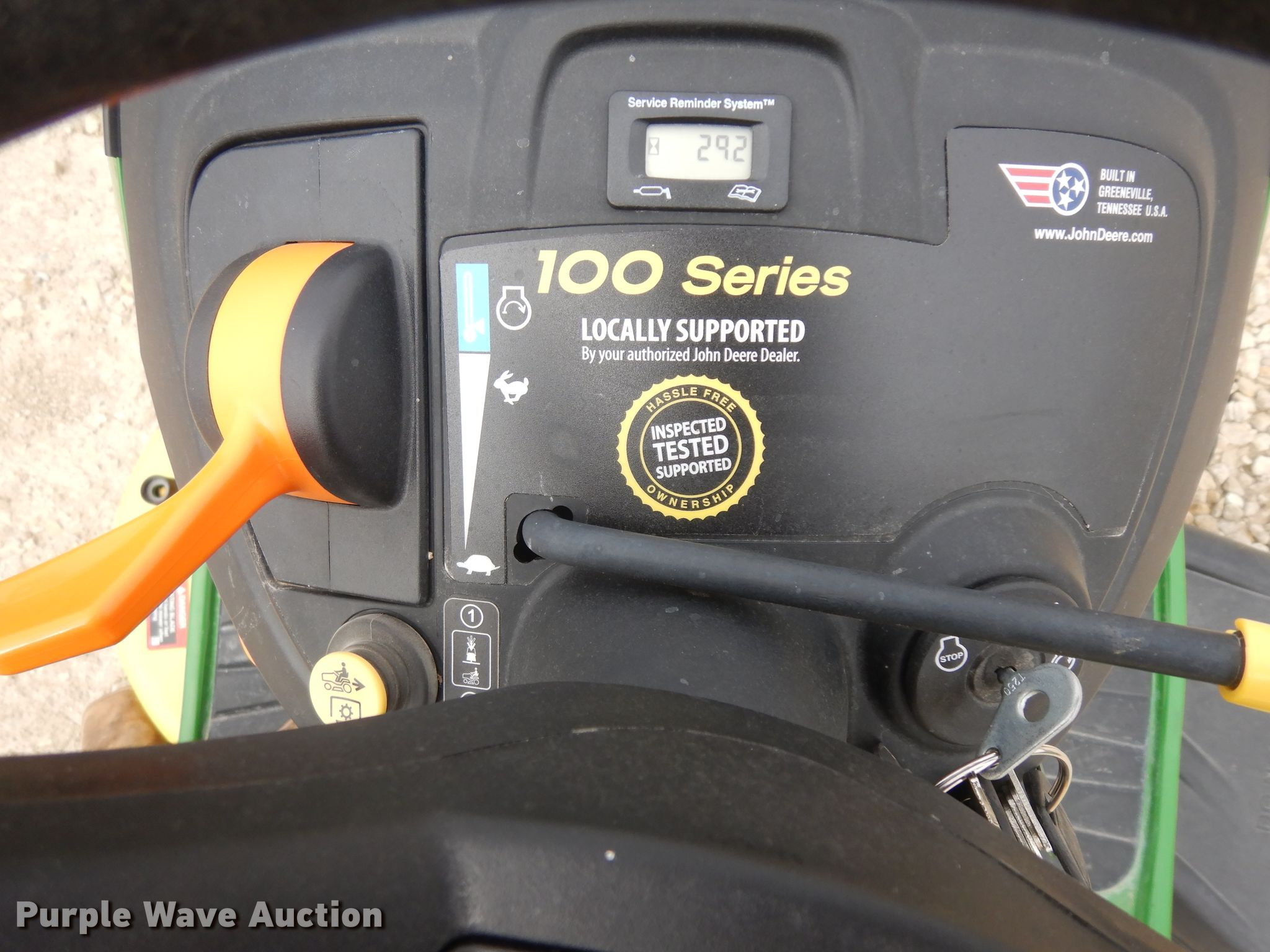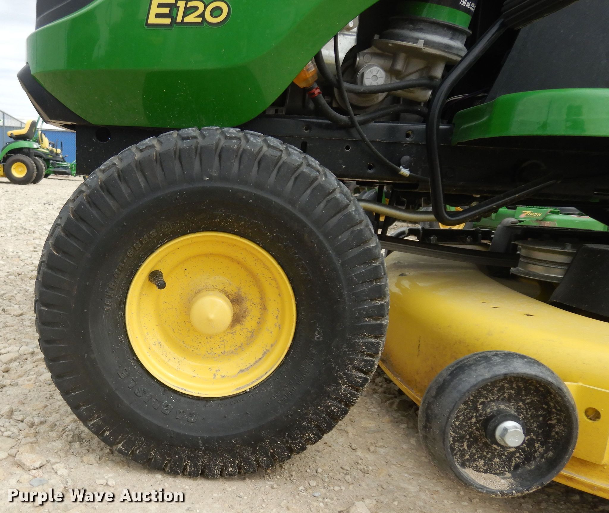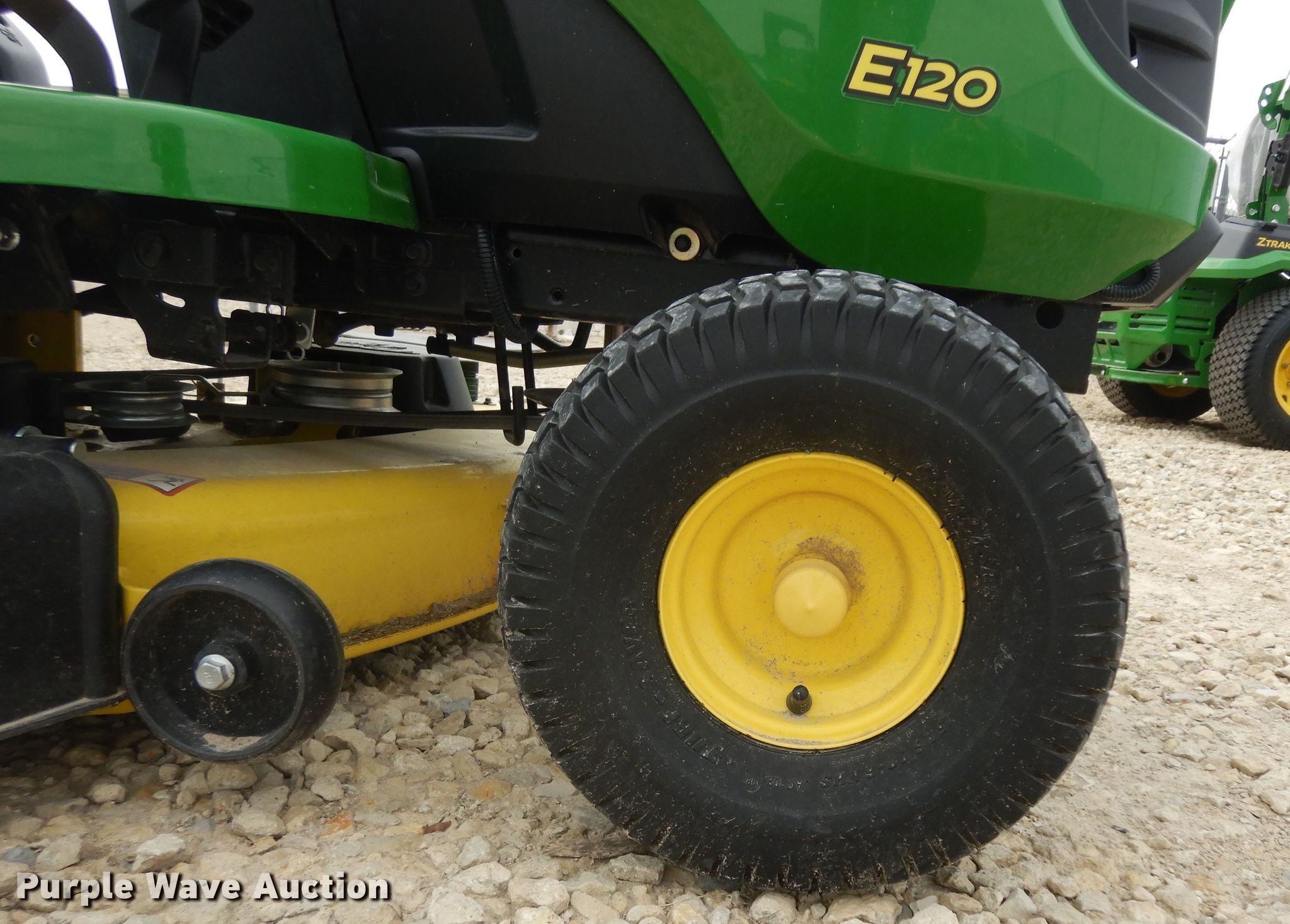 Purple Wave is selling a used Lawn Mower in Kansas. This item is a John Deere E120 lawn mower with the following: 29 hours on meter, Cutting width: 42", Serial: 1GXE120EVKK112699, Unit #: 176506