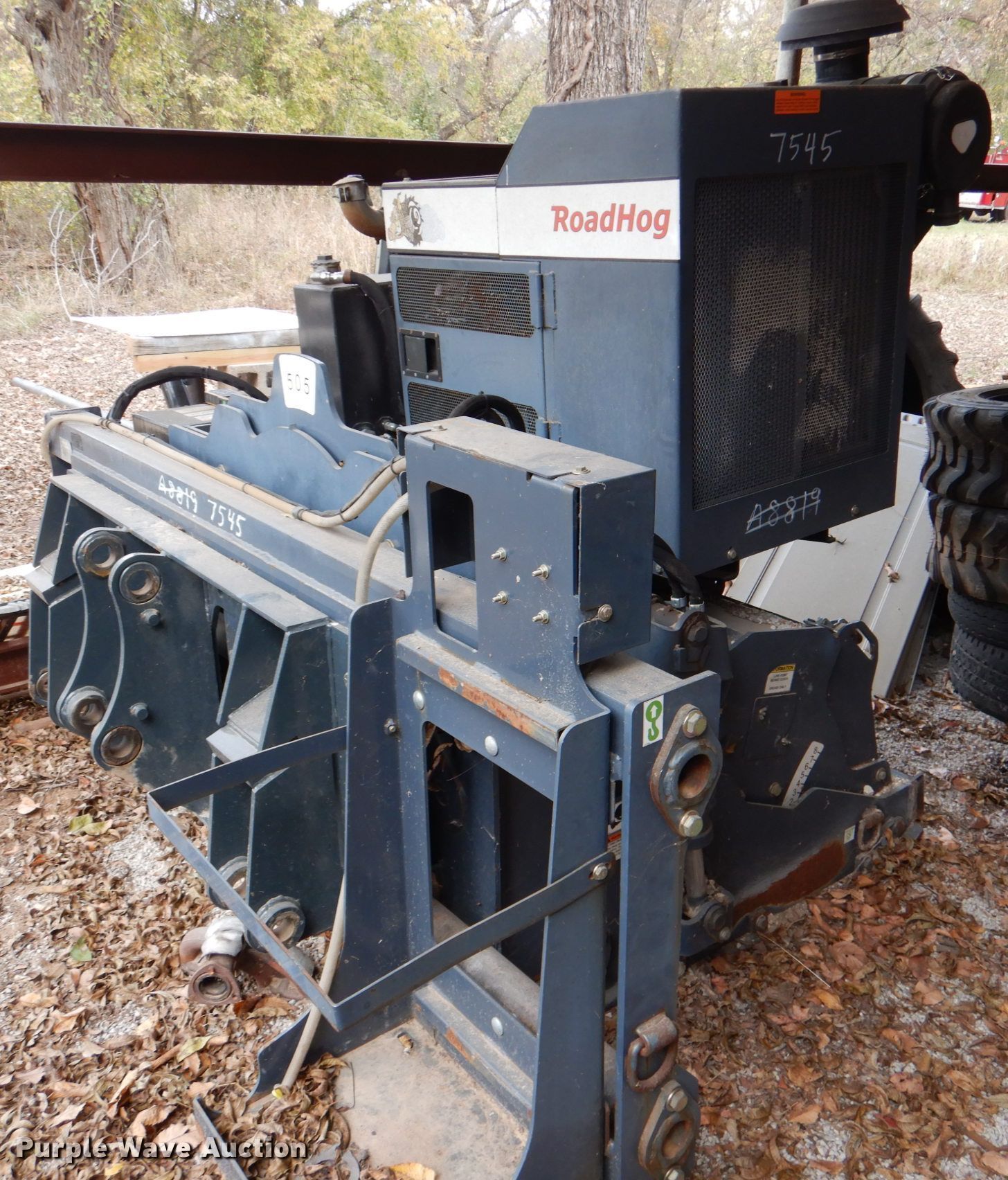 Purple Wave is selling a used Bucket or Loader Attach. in Oklahoma. This item is a 2011 Roadhog RH4075 cold planer with the following: 32 hours on meter, John Deere 2.4L diesel engine, PE4024L058451, 40" cutting width, Adjustable depth, Side shift, 76 HP, Serial: 1107005, Fits Caterpillar 416 backhoes, John Deere 310 backhoes, and Caterpillar 580