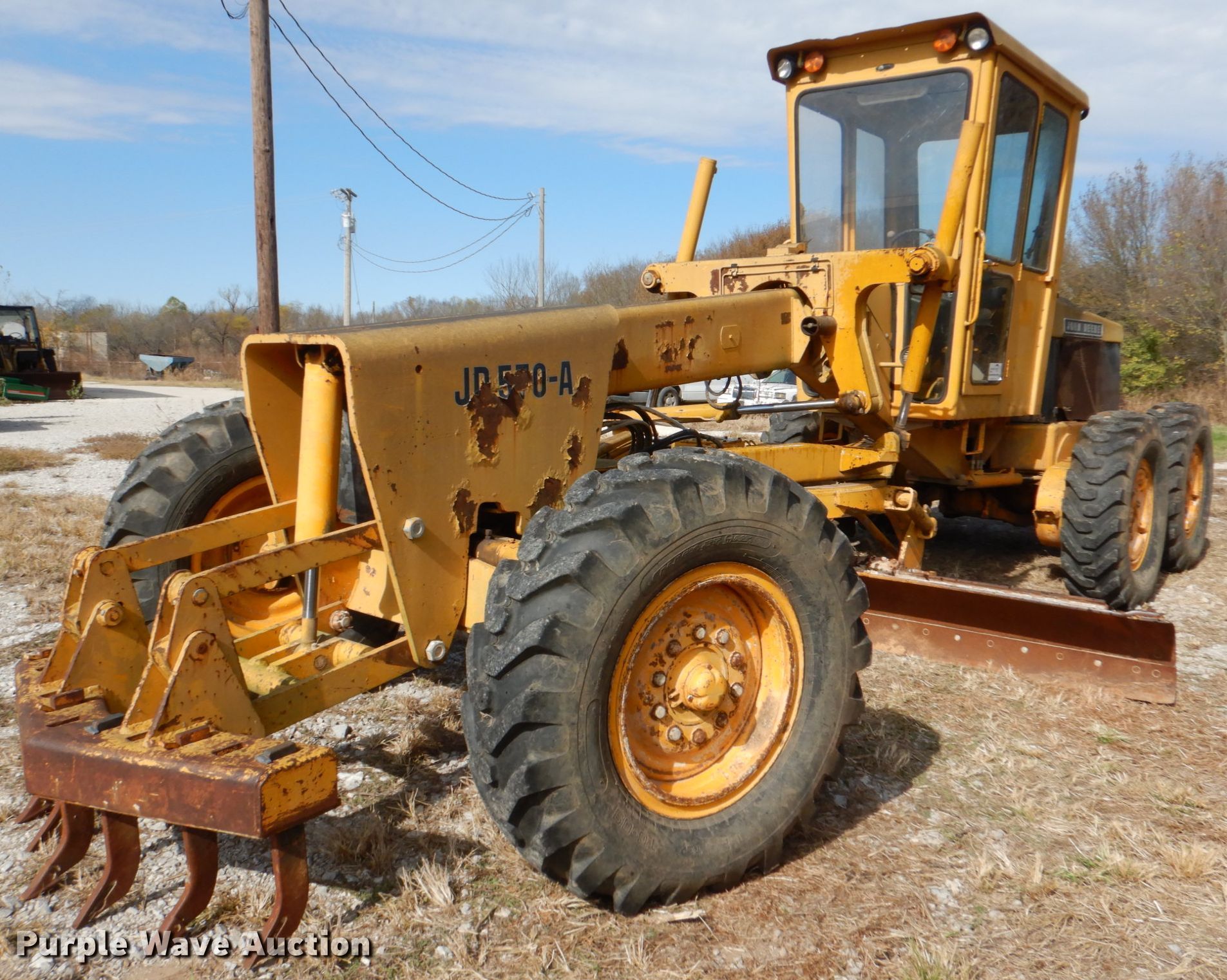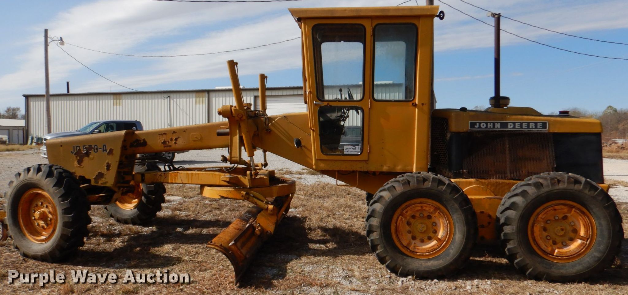 Purple Wave is selling a used Motor Grader in Oklahoma. This item is a John Deere 570A motor grader with the following: 1,575 hours on meter, Serial: 002789T