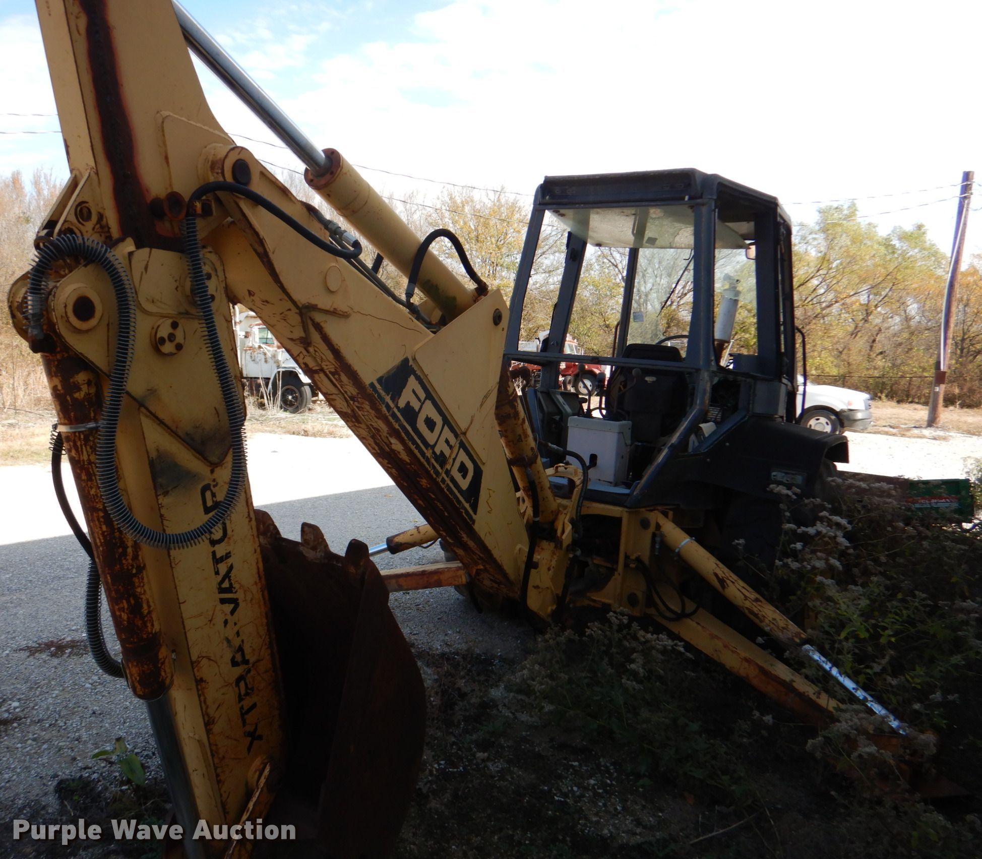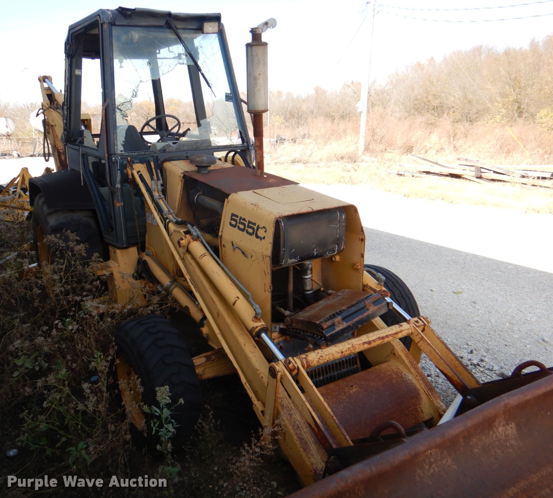 Purple Wave is selling a used Tractor Loader Backhoe in Oklahoma. This item is a Ford 555C backhoe with the following: 3,758 hours on meter, Serial: AB04387