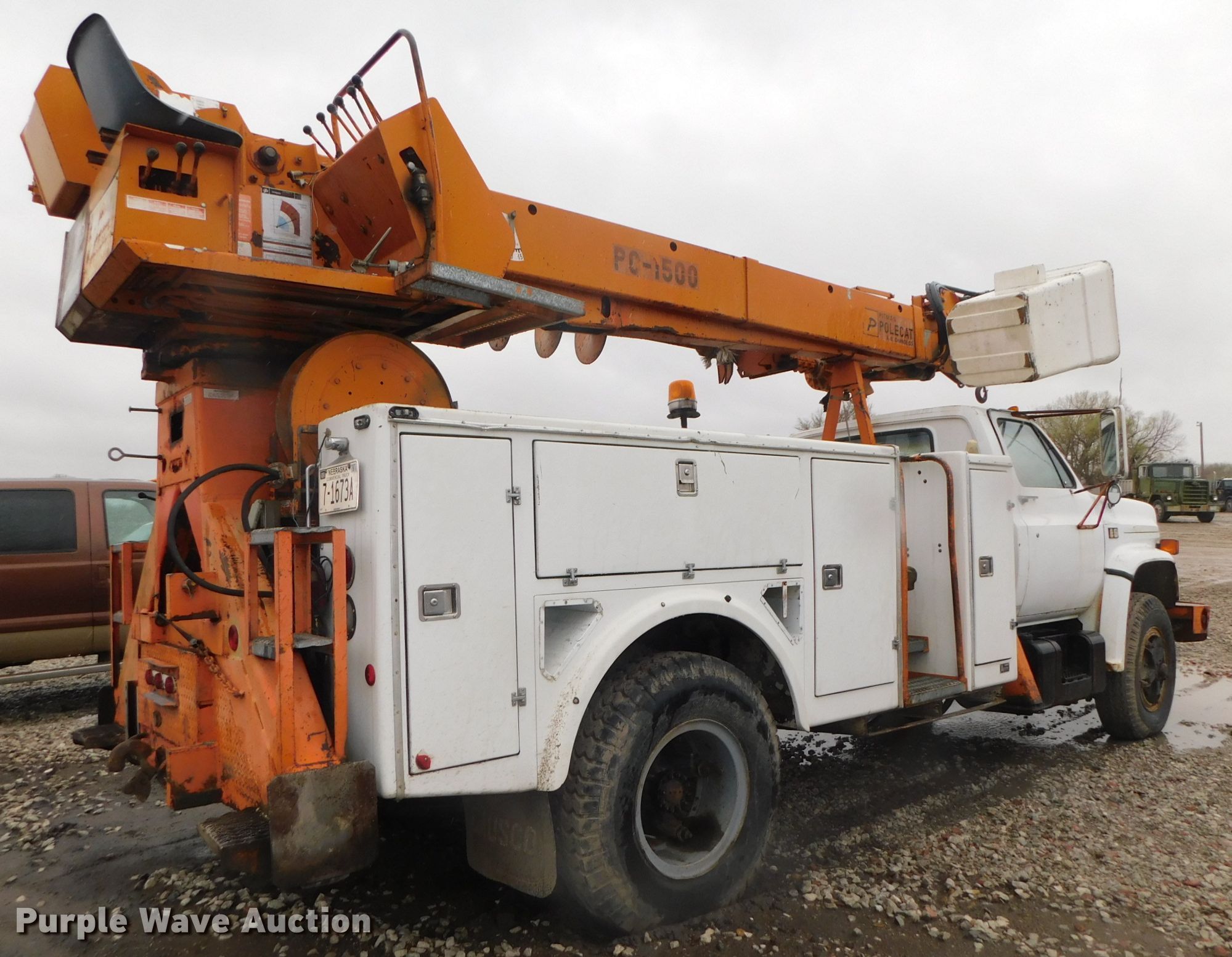 Purple Wave is selling a used Digger Derrick Truck in Nebraska. This item is a 1981 Chevrolet C6500 digger derrick truck with the following: 29,085 miles on odometer, Engine hours: 251