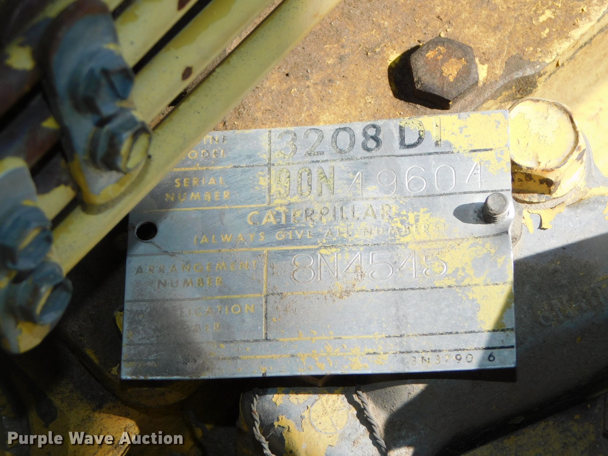 1976 Caterpillar 225 excavator. 221 hours on meter, Serial: 51U1562. Engine Caterpillar 3208, Cylinders: 8, Fuel type: Diesel. Transmission Hydrostatic. Operators station Enclosed cab, Heat. Operational Counter weights, Removable, Boom Standard, Stick Stick length: 8', Bucket Hensley, Width: 42", Cutting edge: Weld on, Teeth: 5. Tracks Width: 30", Steel, Grouser pads: Triple. Notes Glass missing , Glass cracked, Boom cylinder leak, Final drive motor leaks when warm. Caterpillar 3208DI Caterpillar 3208 diesel engine Serial: 90N49604, Non-operational engine , Parts only, Non-operational unit. Charley Brown. 24204 K45. Onawa, IA 51040