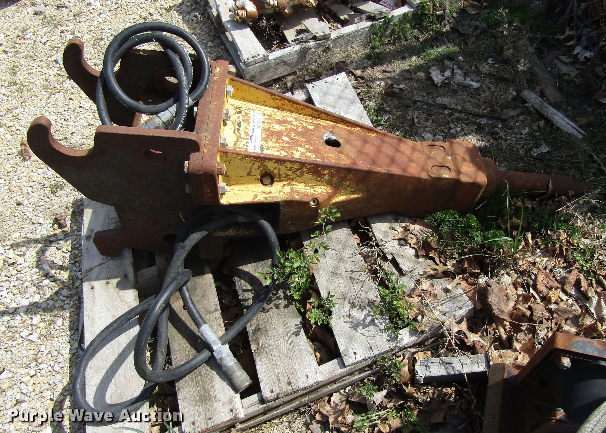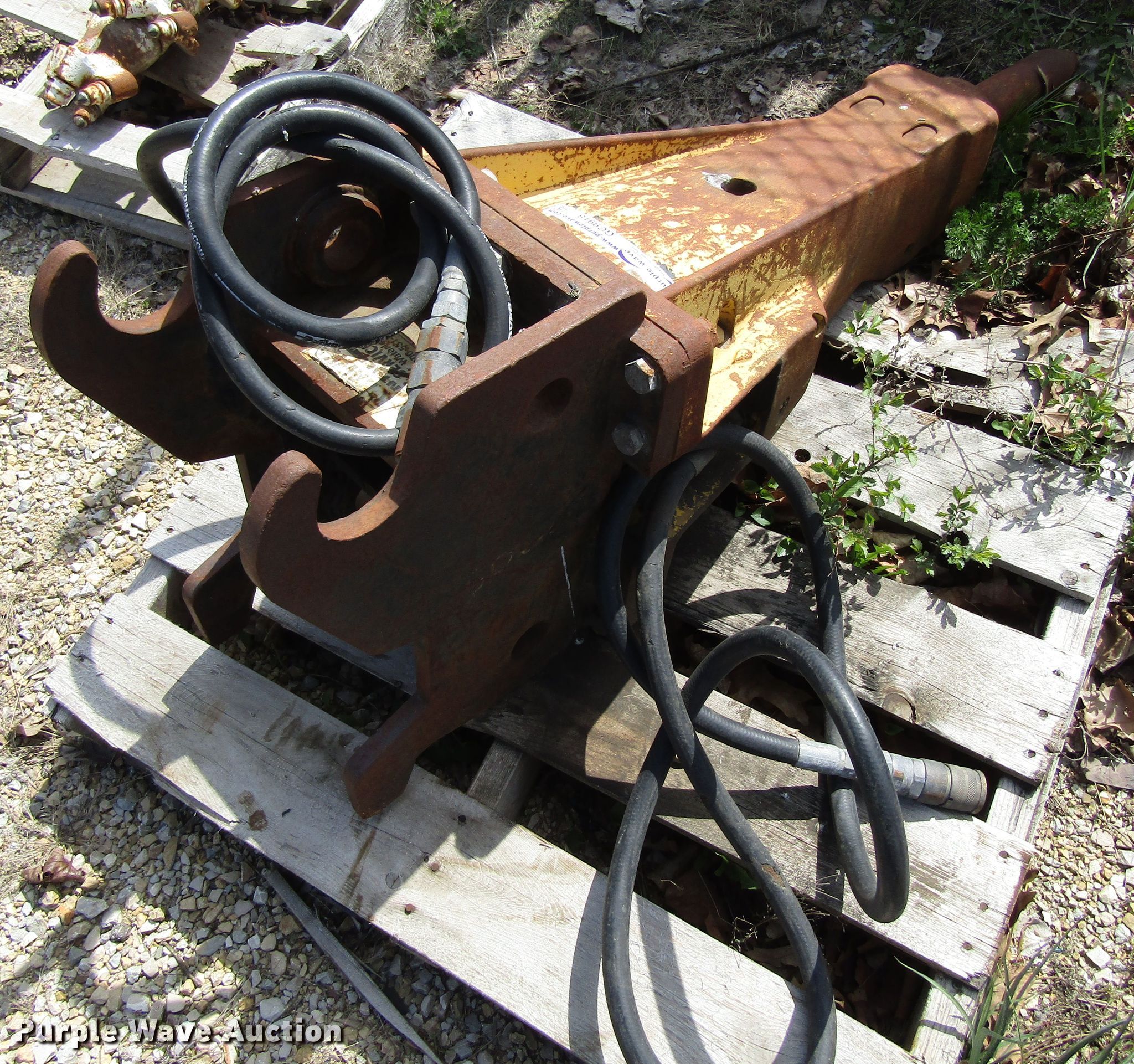 Purple Wave is selling a used Breaker or Hammer in Iowa. This item is a Breaker with the following: Quick coupler, Fits John Deere 50D excavators