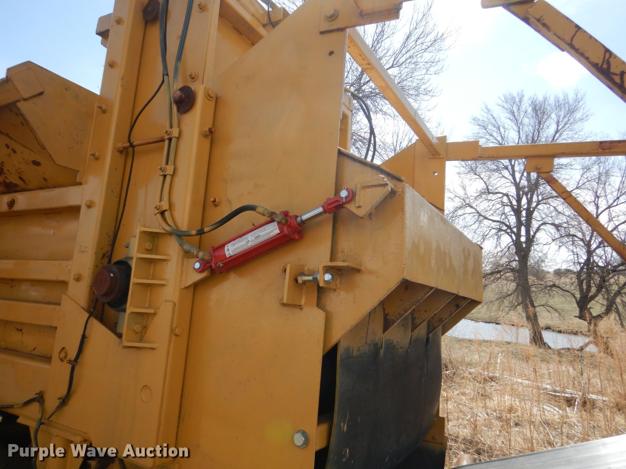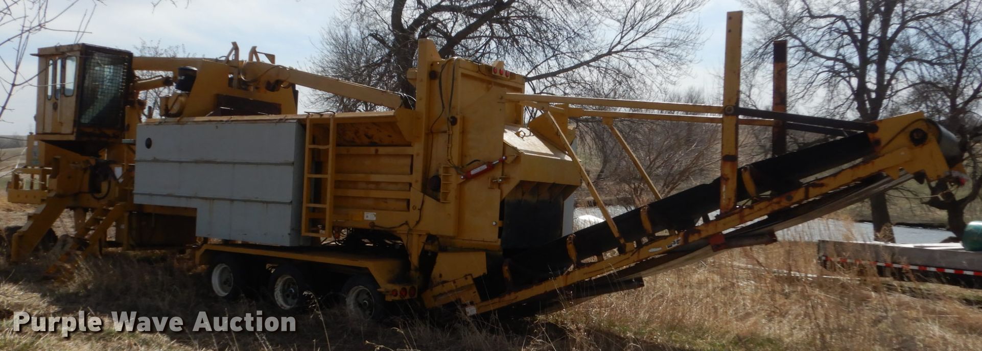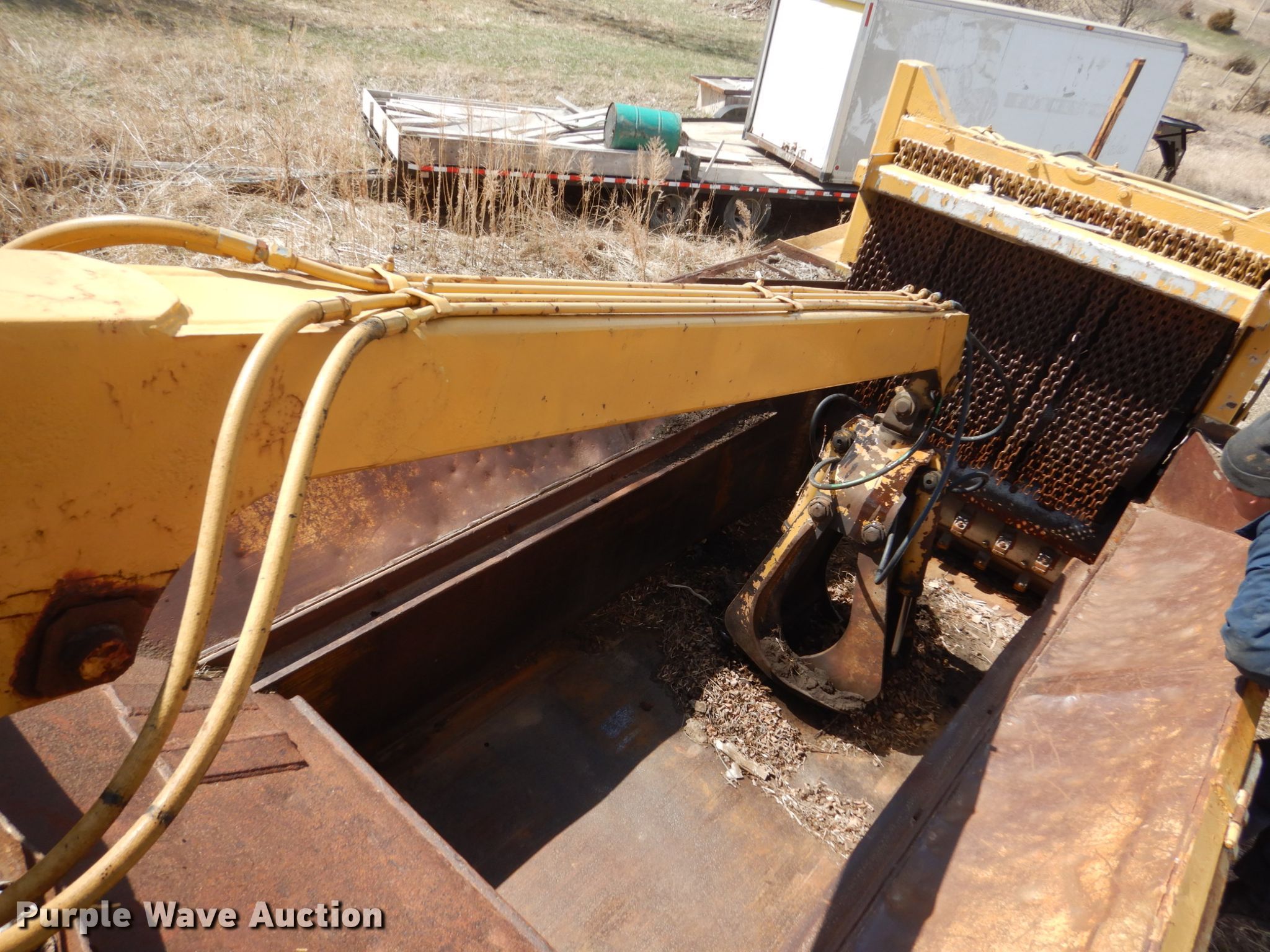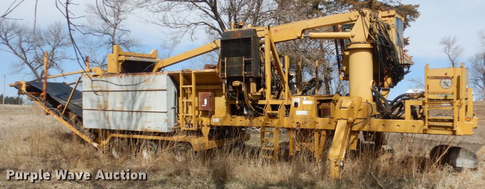 Purple Wave is selling a used Wood Grinder in South Dakota. This item is a Maxigrind 425G horizontal grinder with the following: Caterpillar 3406 six cylinder diesel engine, Knuckle boom loader, 10' x 56" grinder hopper, Hydraulic feed gate, 59" outfeed conveyor, Spring suspension, Air brakes, Triple axle, 215/75R17.5 tires, Additional grinder head tips