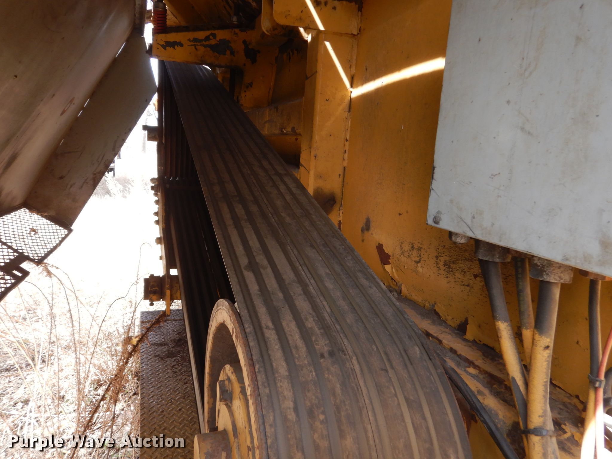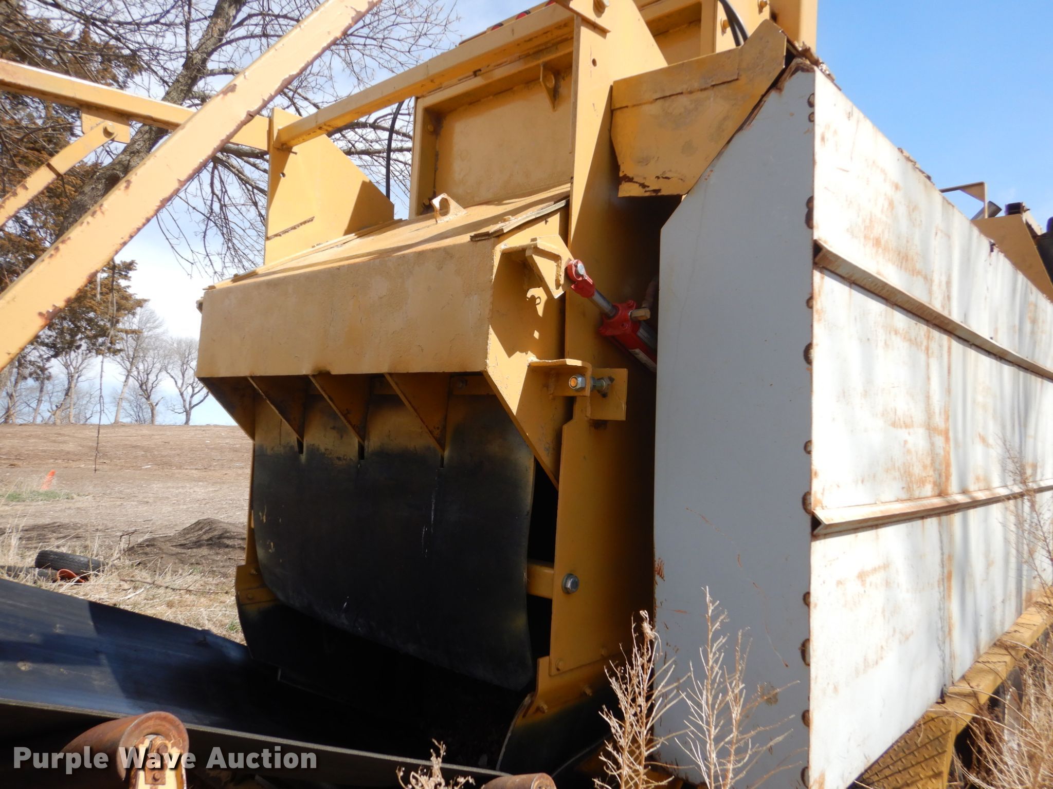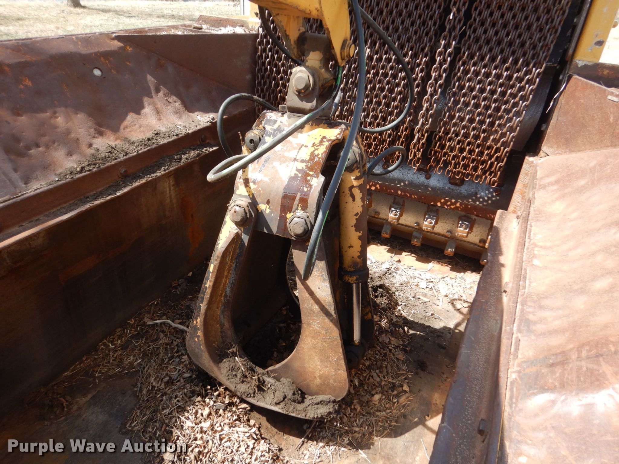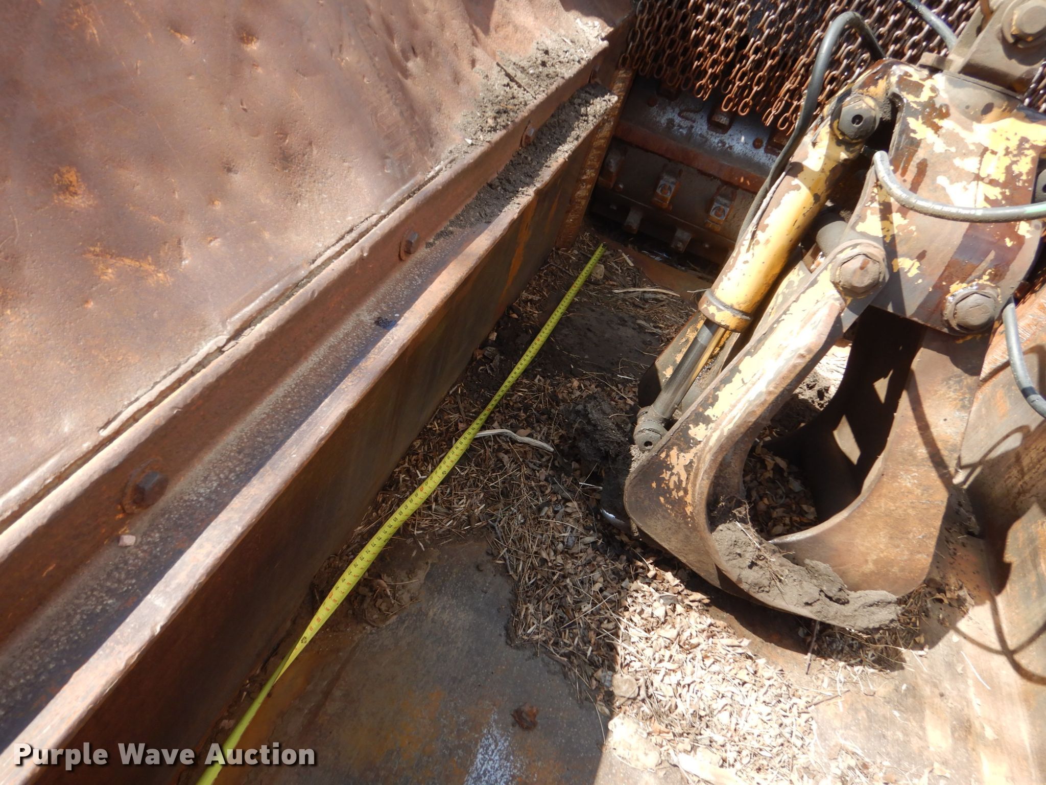 Purple Wave is selling a used Wood Grinder in South Dakota. This item is a Maxigrind 425G horizontal grinder with the following: Caterpillar 3406 six cylinder diesel engine, Knuckle boom loader, 10' x 56" grinder hopper, Hydraulic feed gate, 59" outfeed conveyor, Spring suspension, Air brakes, Triple axle, 215/75R17.5 tires, Additional grinder head tips