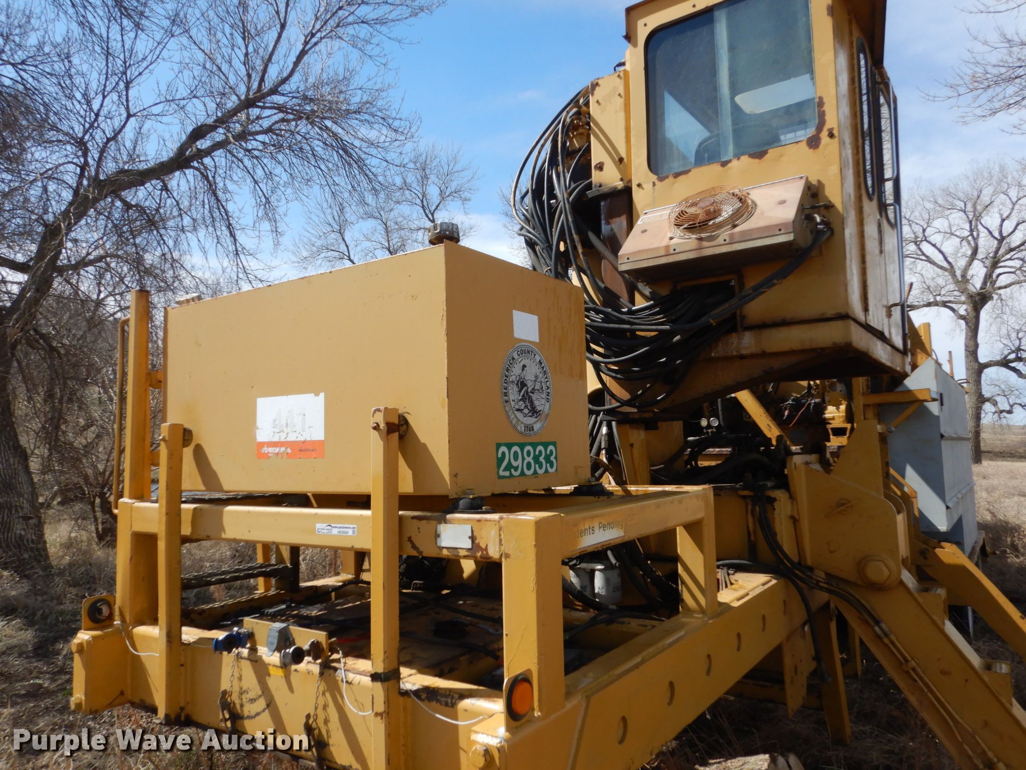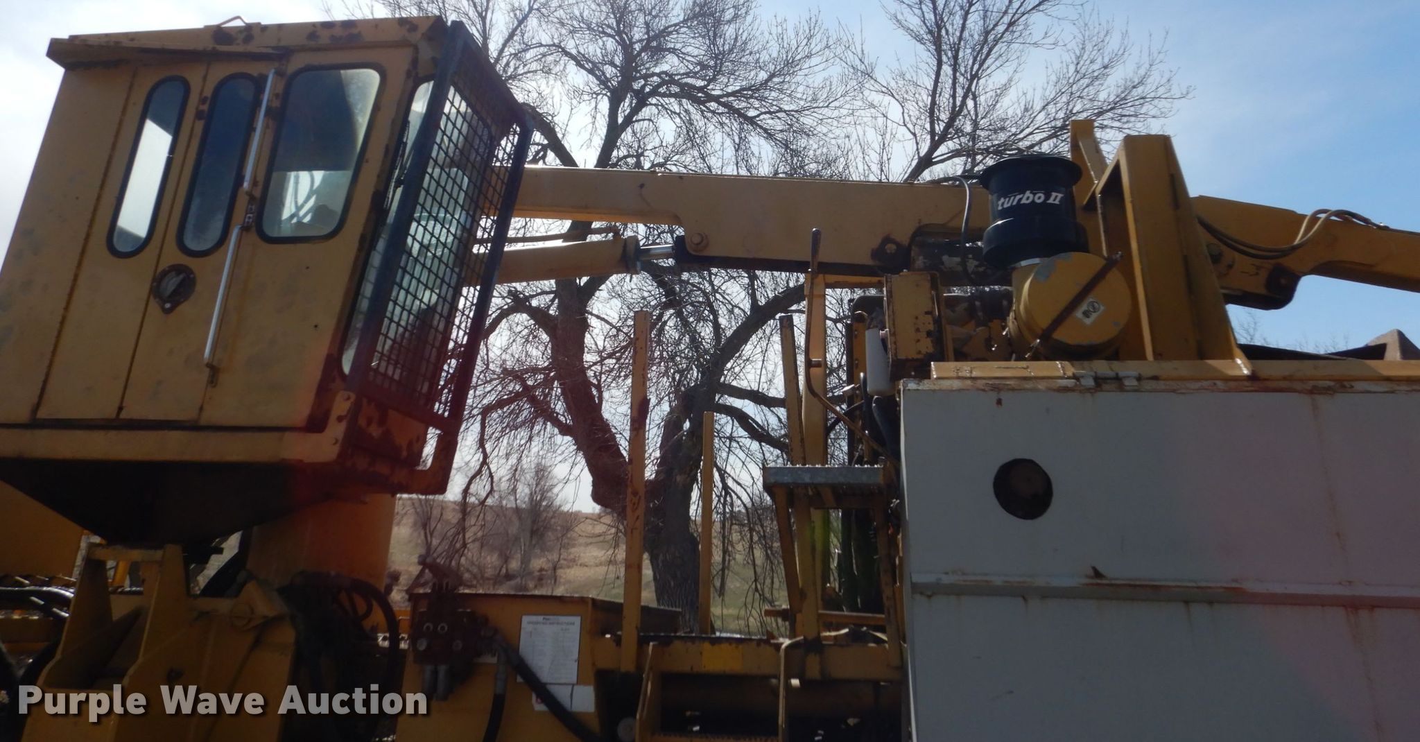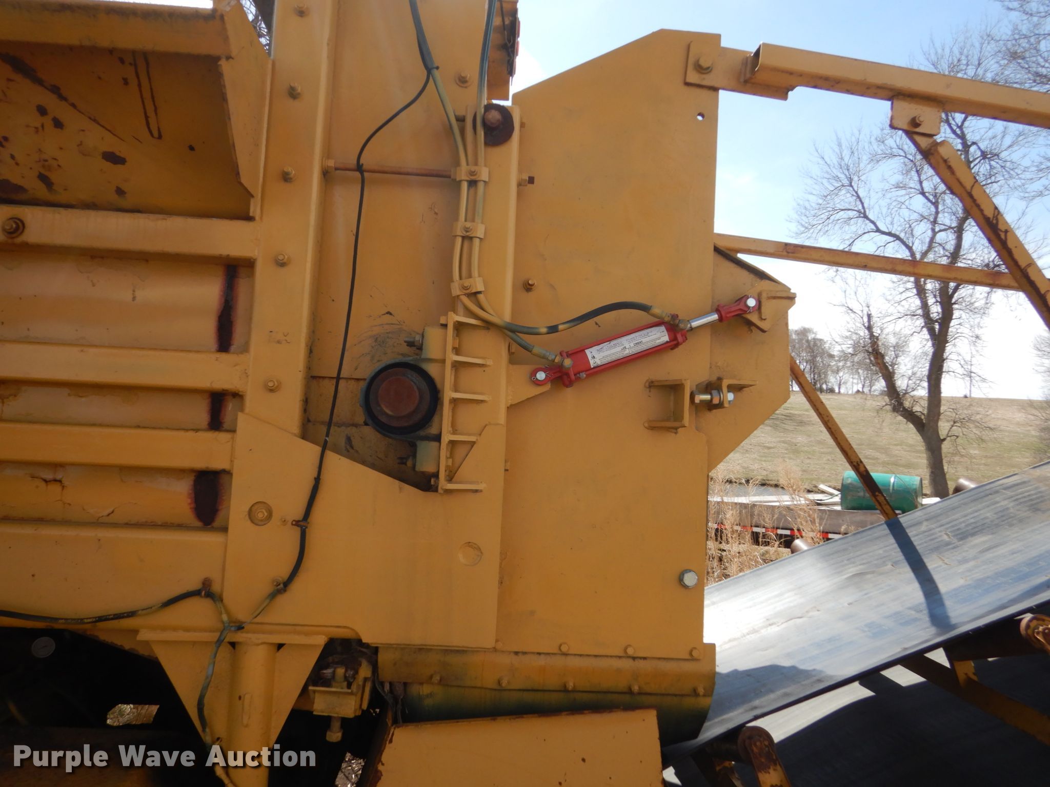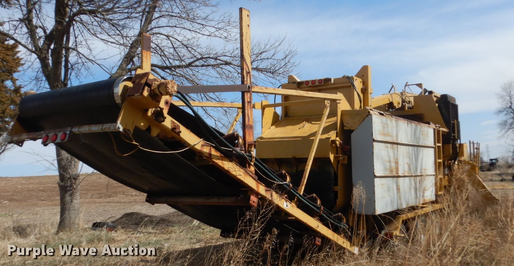 Purple Wave is selling a used Wood Grinder in South Dakota. This item is a Maxigrind 425G horizontal grinder with the following: Caterpillar 3406 six cylinder diesel engine, Knuckle boom loader, 10' x 56" grinder hopper, Hydraulic feed gate, 59" outfeed conveyor, Spring suspension, Air brakes, Triple axle, 215/75R17.5 tires, Additional grinder head tips
