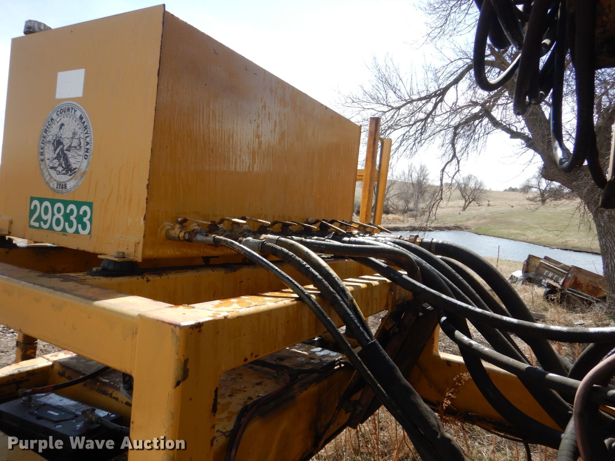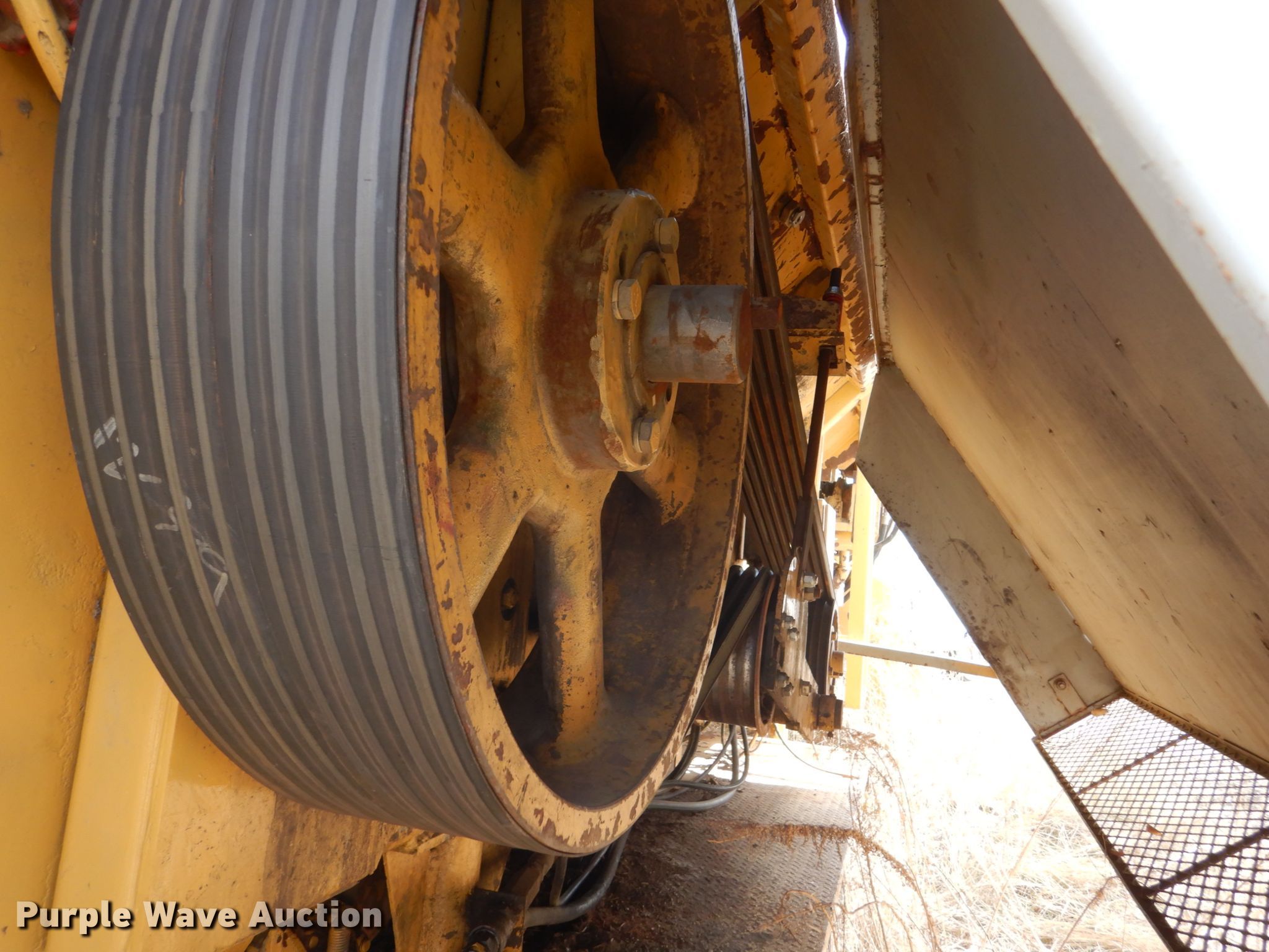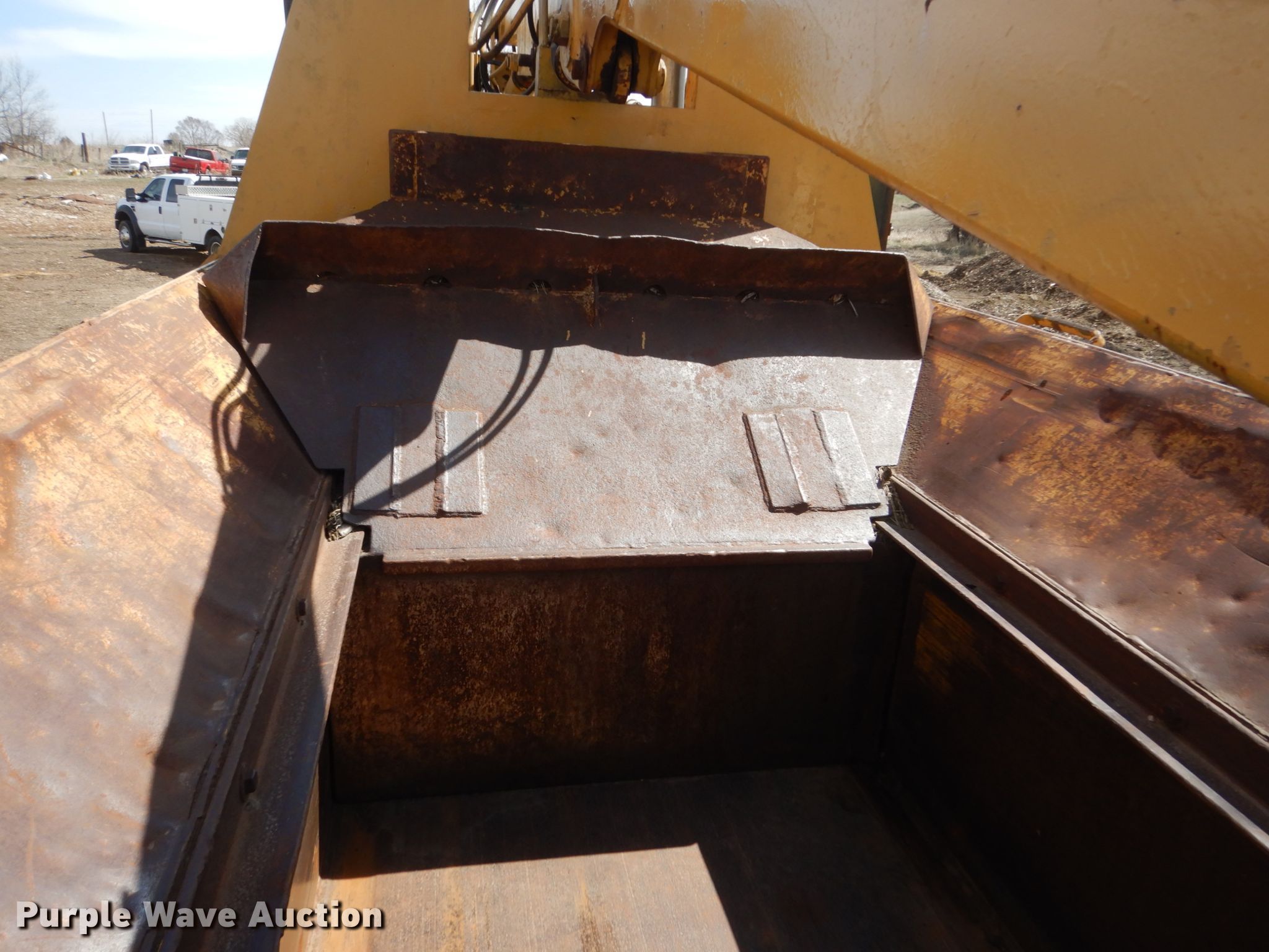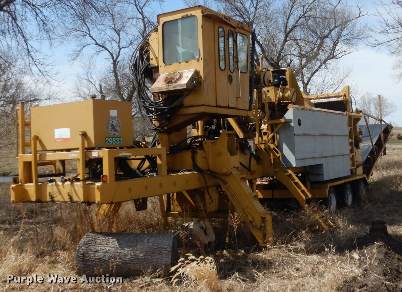 Purple Wave is selling a used Wood Grinder in South Dakota. This item is a Maxigrind 425G horizontal grinder with the following: Caterpillar 3406 six cylinder diesel engine, Knuckle boom loader, 10' x 56" grinder hopper, Hydraulic feed gate, 59" outfeed conveyor, Spring suspension, Air brakes, Triple axle, 215/75R17.5 tires, Additional grinder head tips