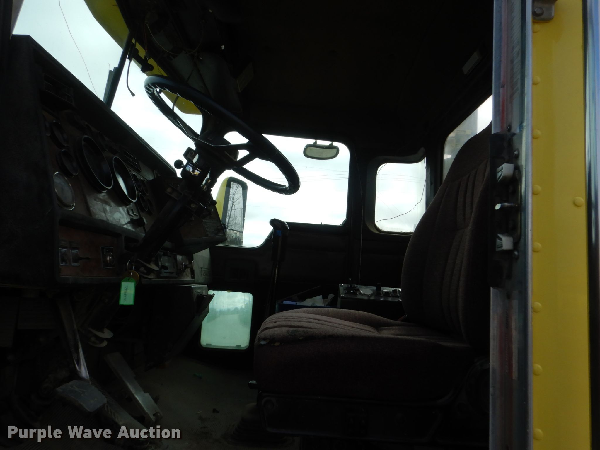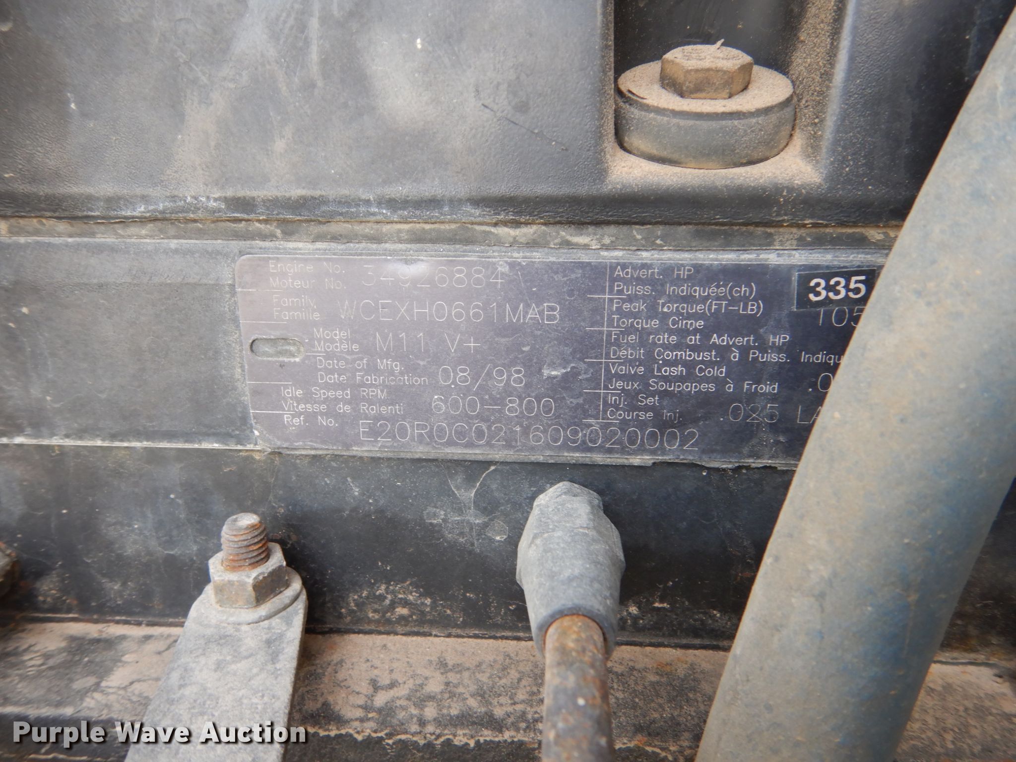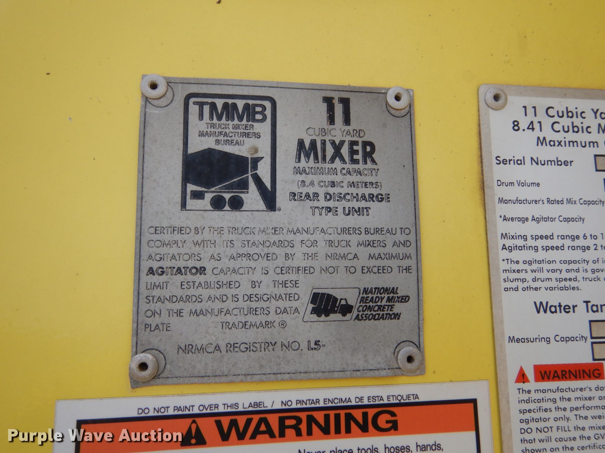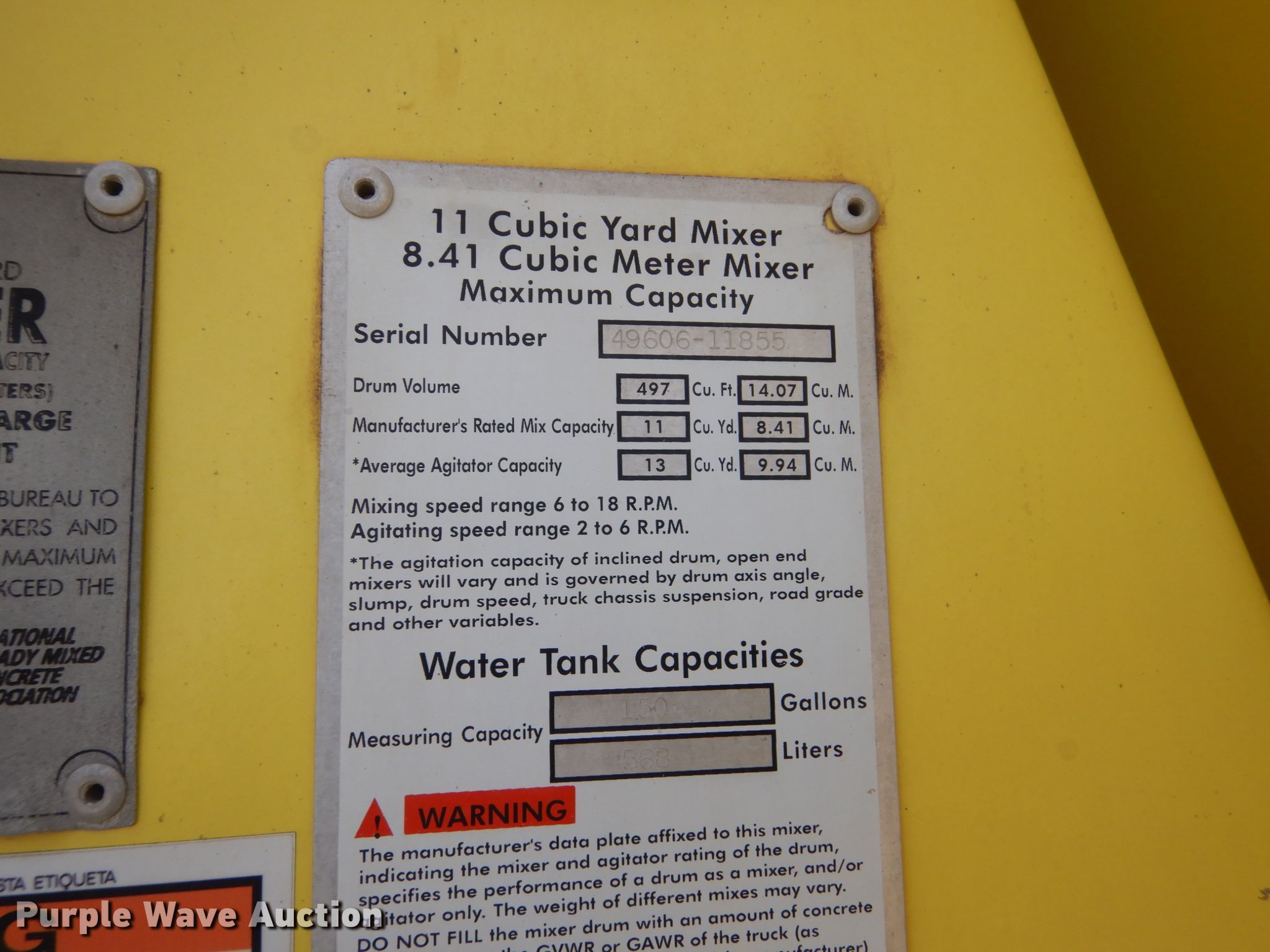 1999 Kenworth W900 ready mix truck. 322,960 miles on odometer. Engine Cummins M11, Displacement: 10.8L, Cylinders: 6, Fuel type: Diesel. Transmission Manual, Speed: 10. Chassis Axles: Quad, Pusher axle, Tag axle, Differential lock: Inter-axle, Suspension: Walking beam, Brakes: Air, PTO, FAWR: 20,000 lbs, IAWR: 23,000 lbs, RAWR: 23,000 lbs. Interior AC, Heat, Heated mirrors, Power passenger window, Cruise control. Operational Mixer McNeilus , Serial: 49606-11855, Capacity: 11 cu.yd., Discharge: Rear, In-cab controls, Rear drum controls, Water tank capacity: 150 gallons, Chute Extensions: 3, Chute type: Steel.. Tires Front: 425/65R22.5, Pusher: 255/70R22.5, Rear: 11R22.5, Tag: 375/80R22.5. South Dakota title. 1NKWL90X6XR814662. Concrete Materials - Sweetman Const.. 1305 N Louise Ave. Sioux Falls, SD 57107